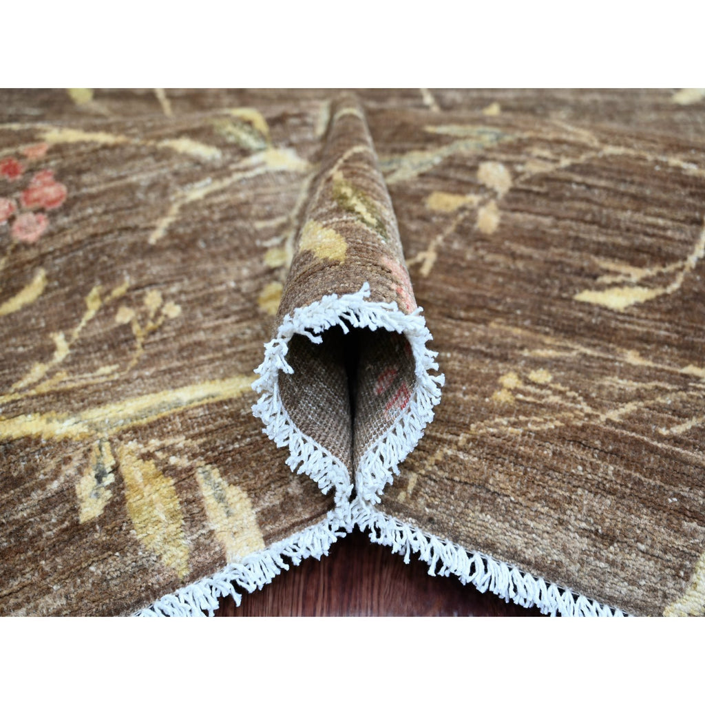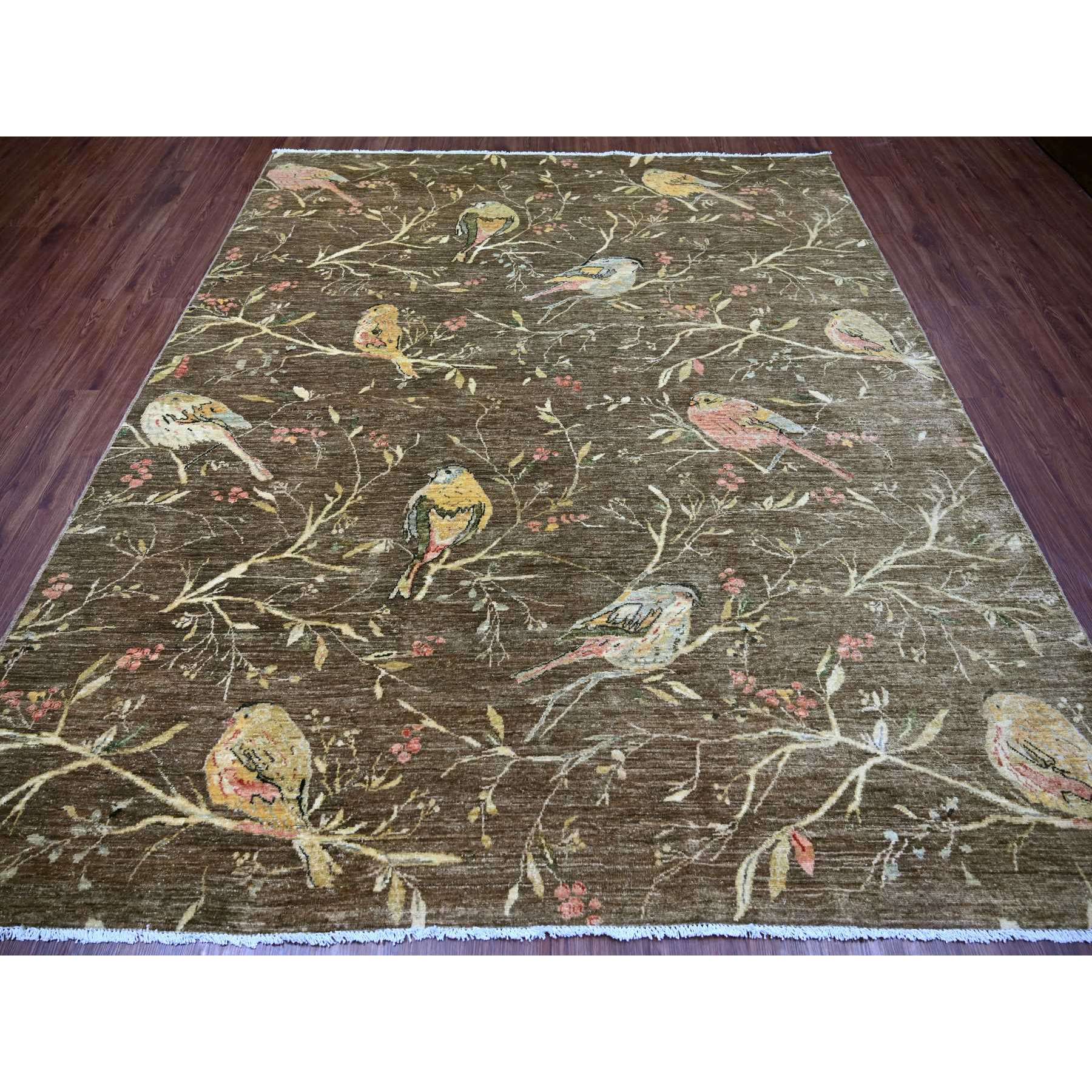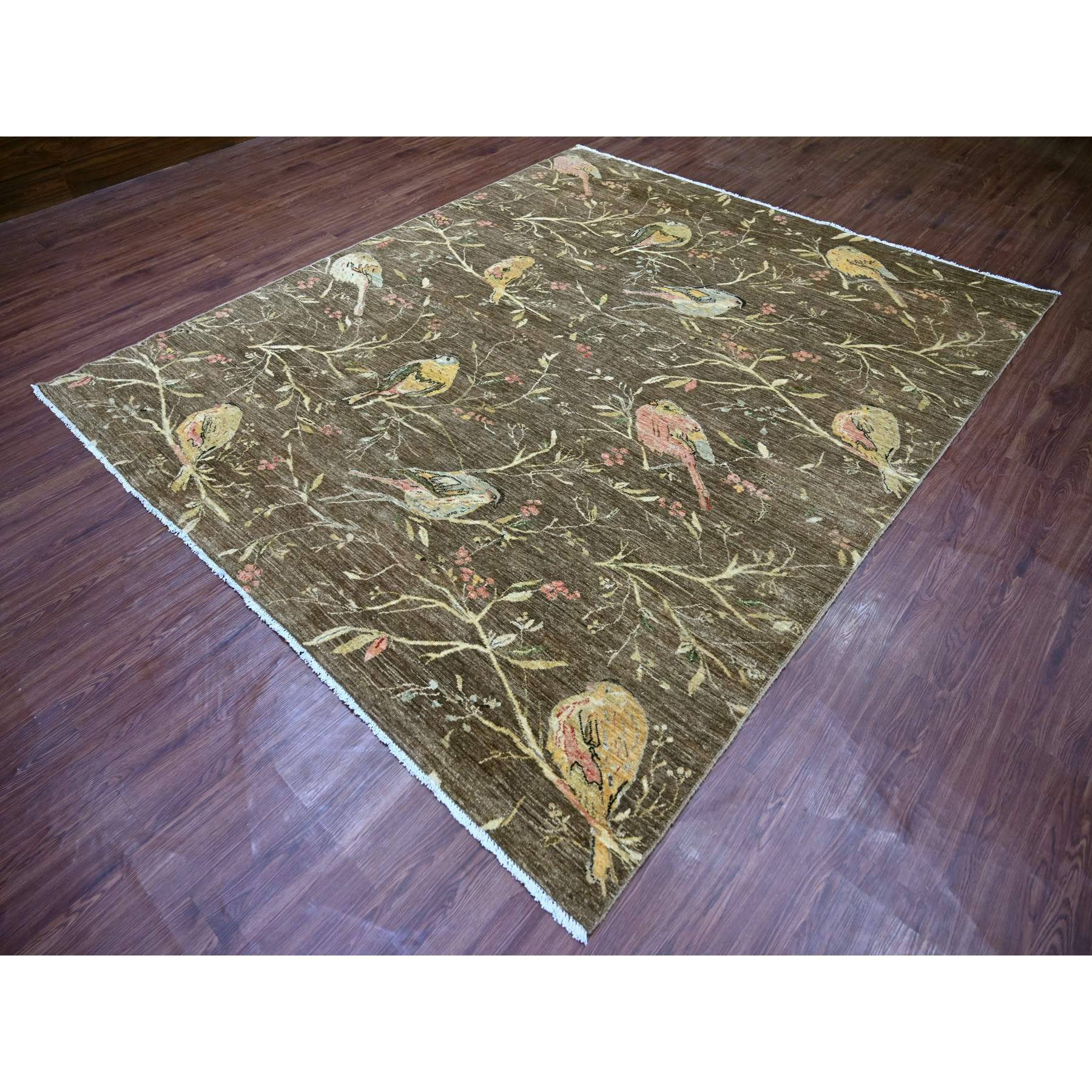 8'1"x9'6" Coffee Brown, Peshawar, Sparrows On The Tree, Densely Woven, Hand Knotted, High Mountain Wool, Soft To The Touch, Oriental Rug FWR126642