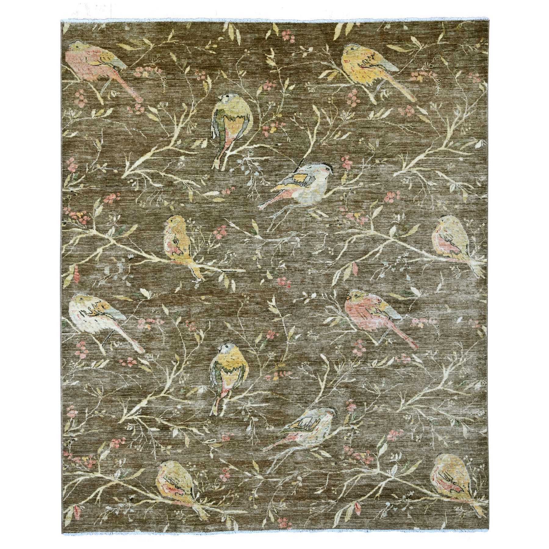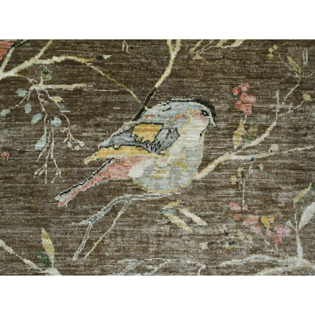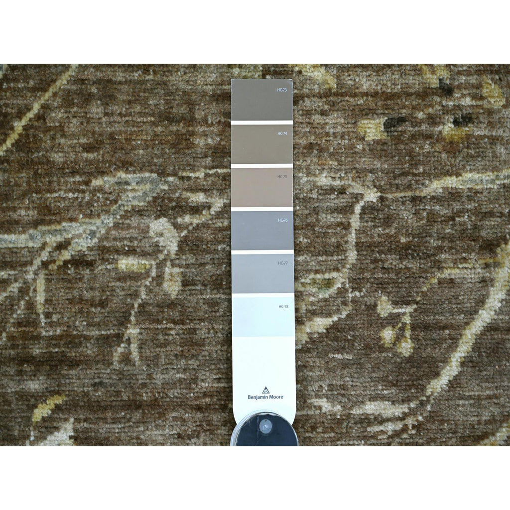 8'1"x9'6" Coffee Brown, Peshawar, Sparrows On The Tree, Densely Woven, Hand Knotted, High Mountain Wool, Soft To The Touch, Oriental Rug FWR126642