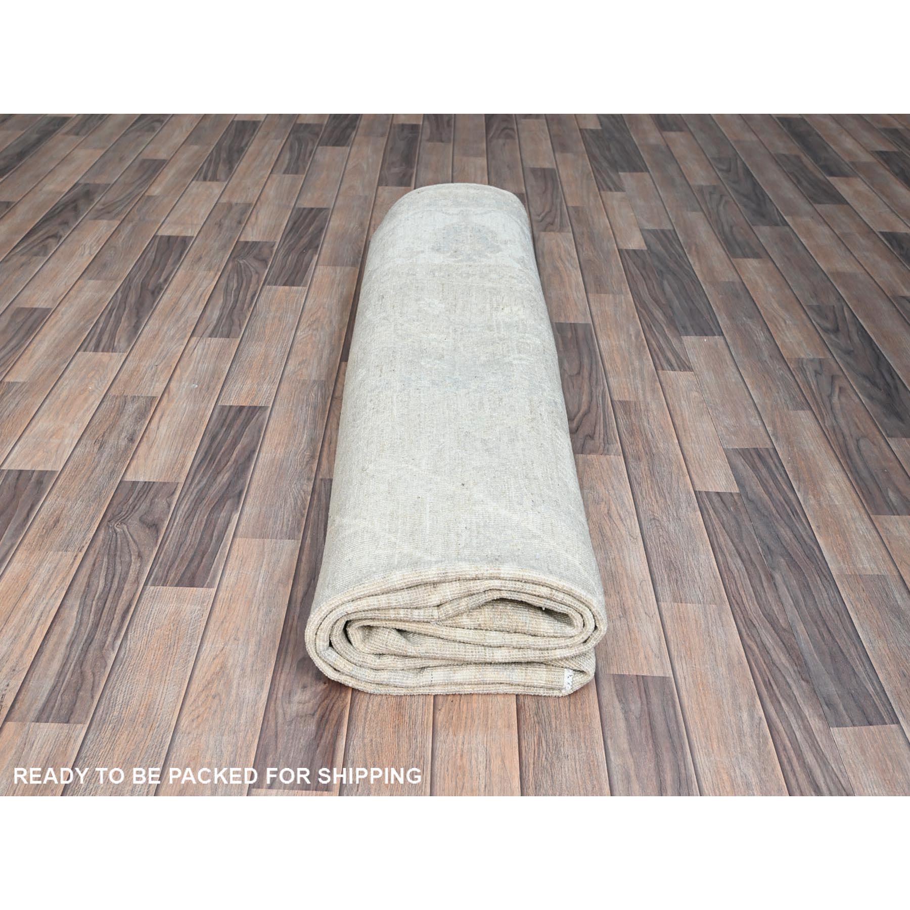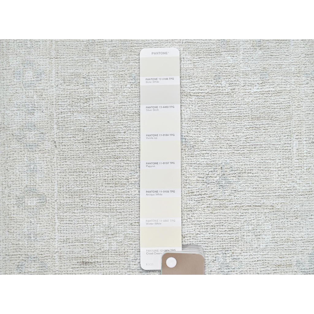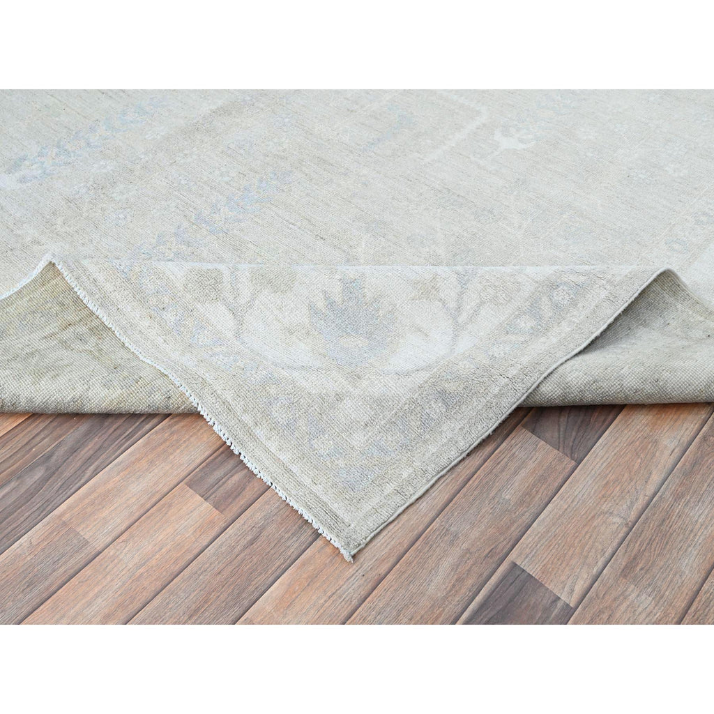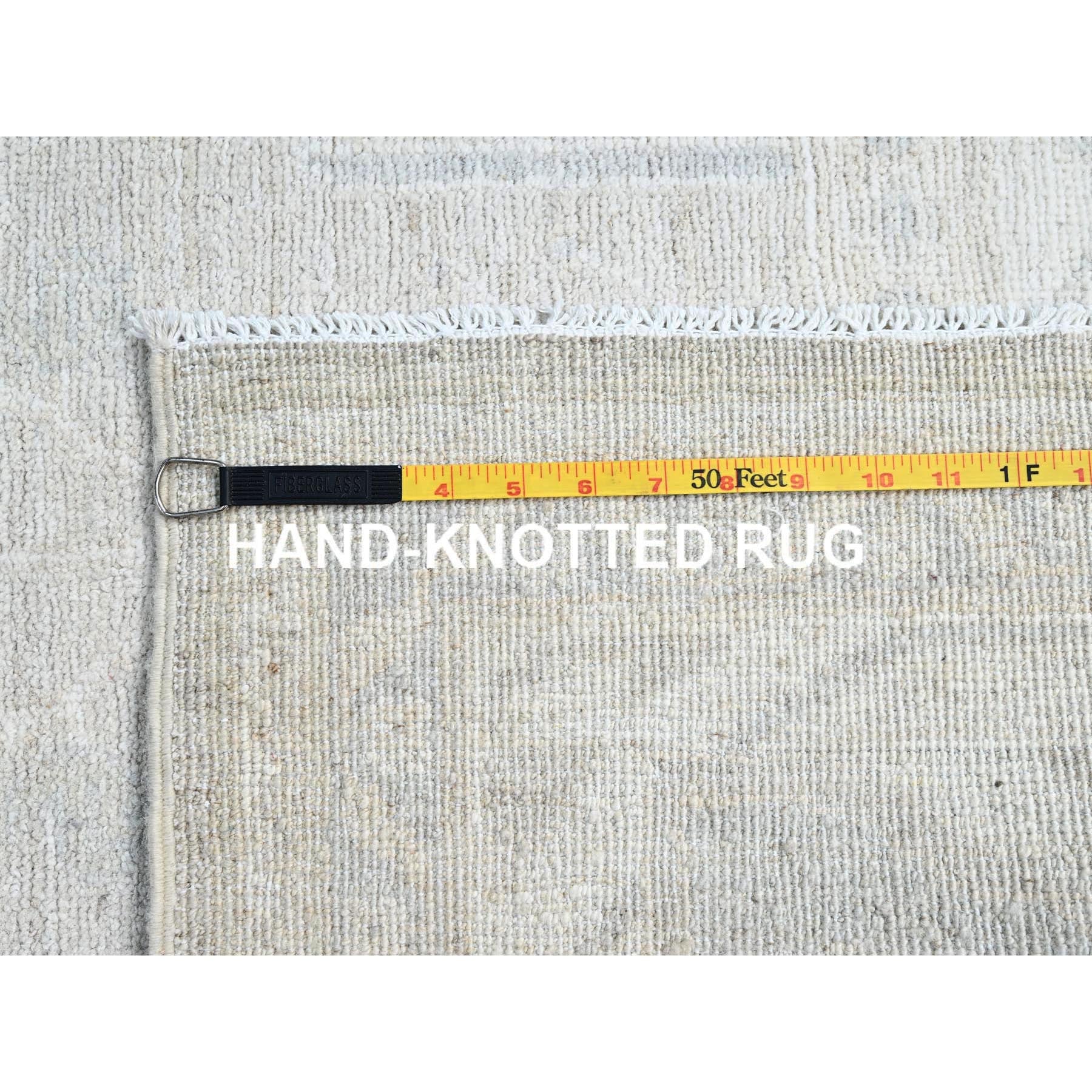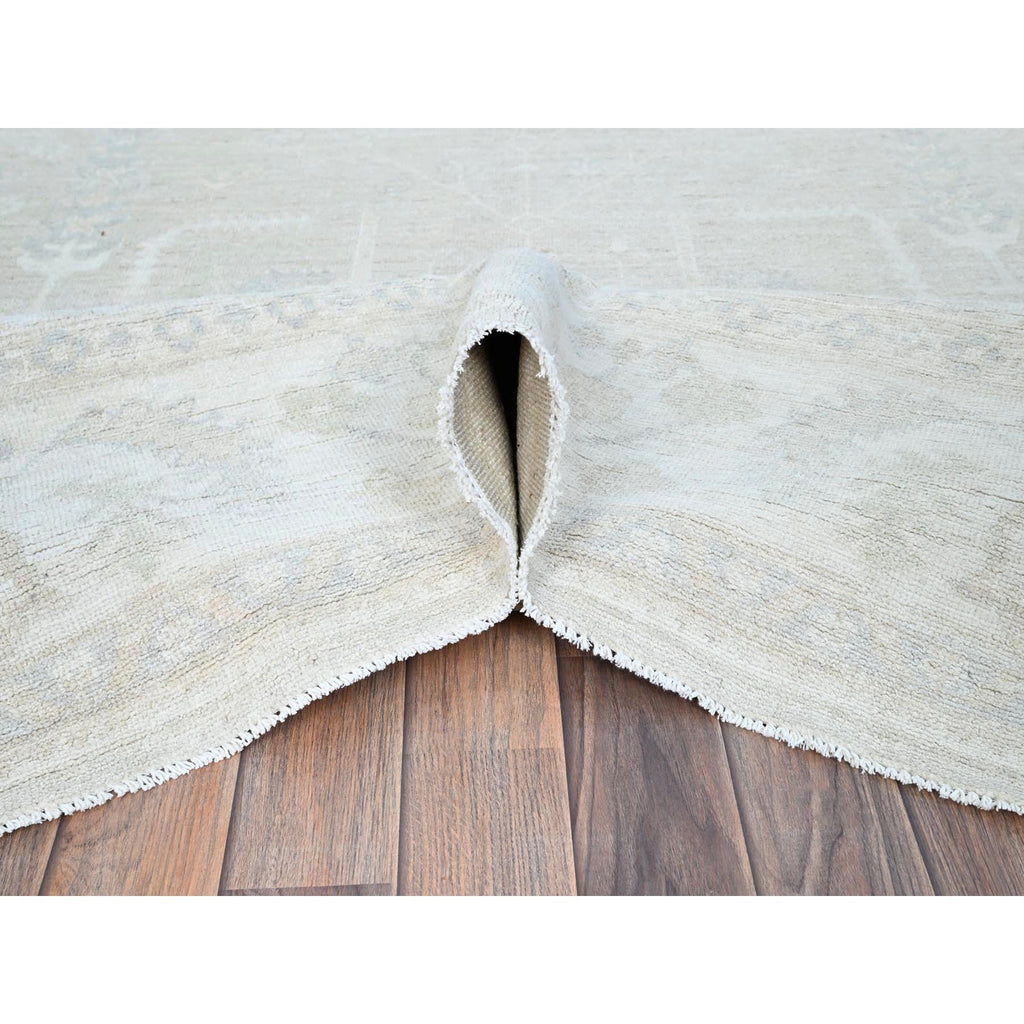 8'1"x9'7" Alabaster White, Soft Pile, White Washed Peshawar, Hand Knotted 100% Wool, Afghan Tree Design Oriental Rug FWR520248