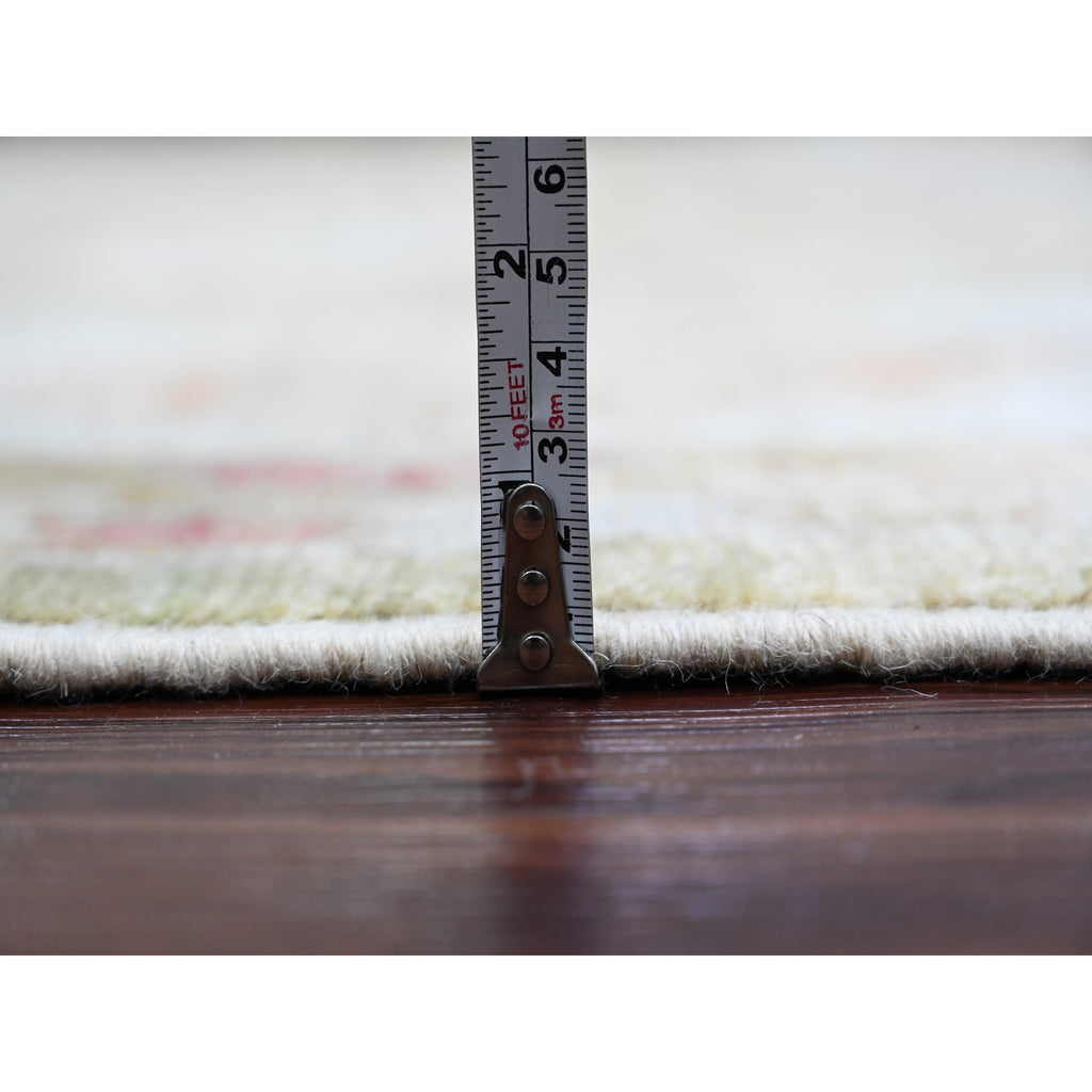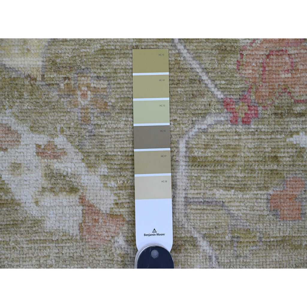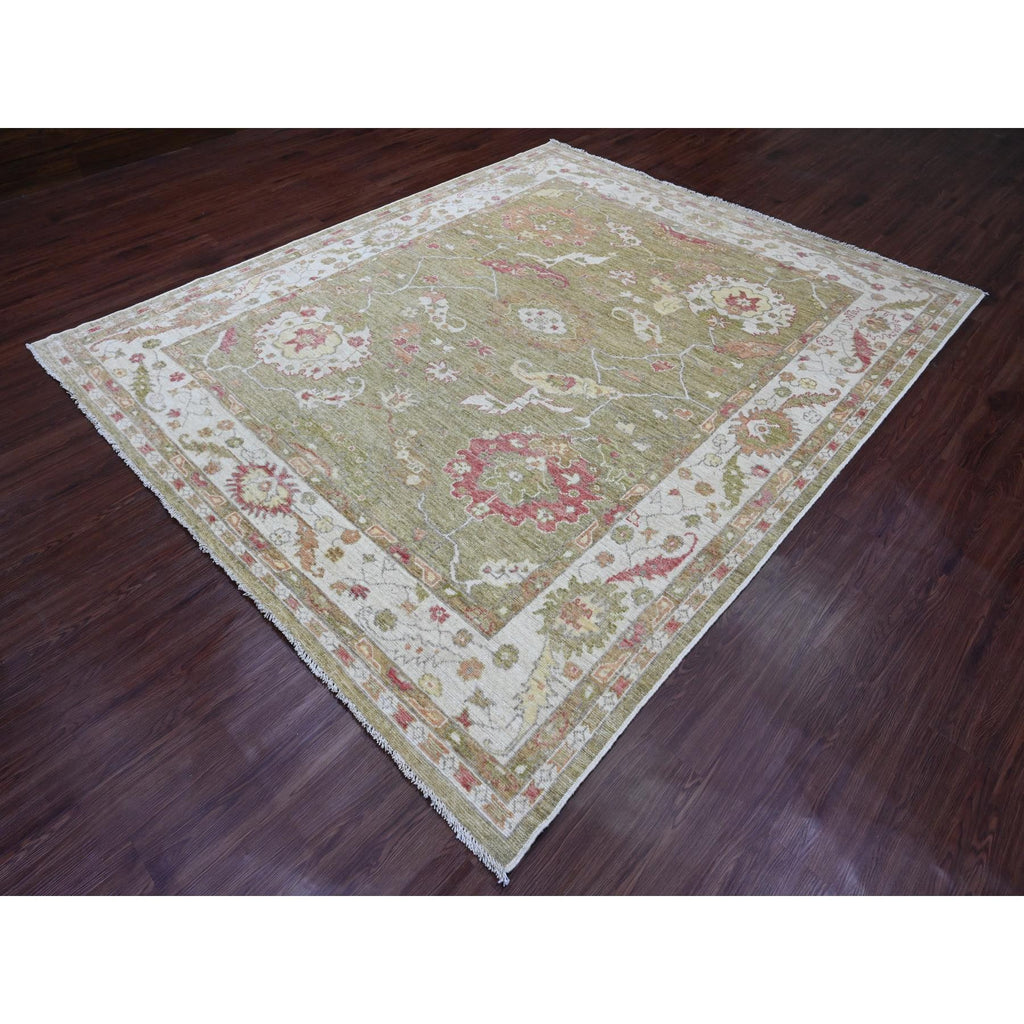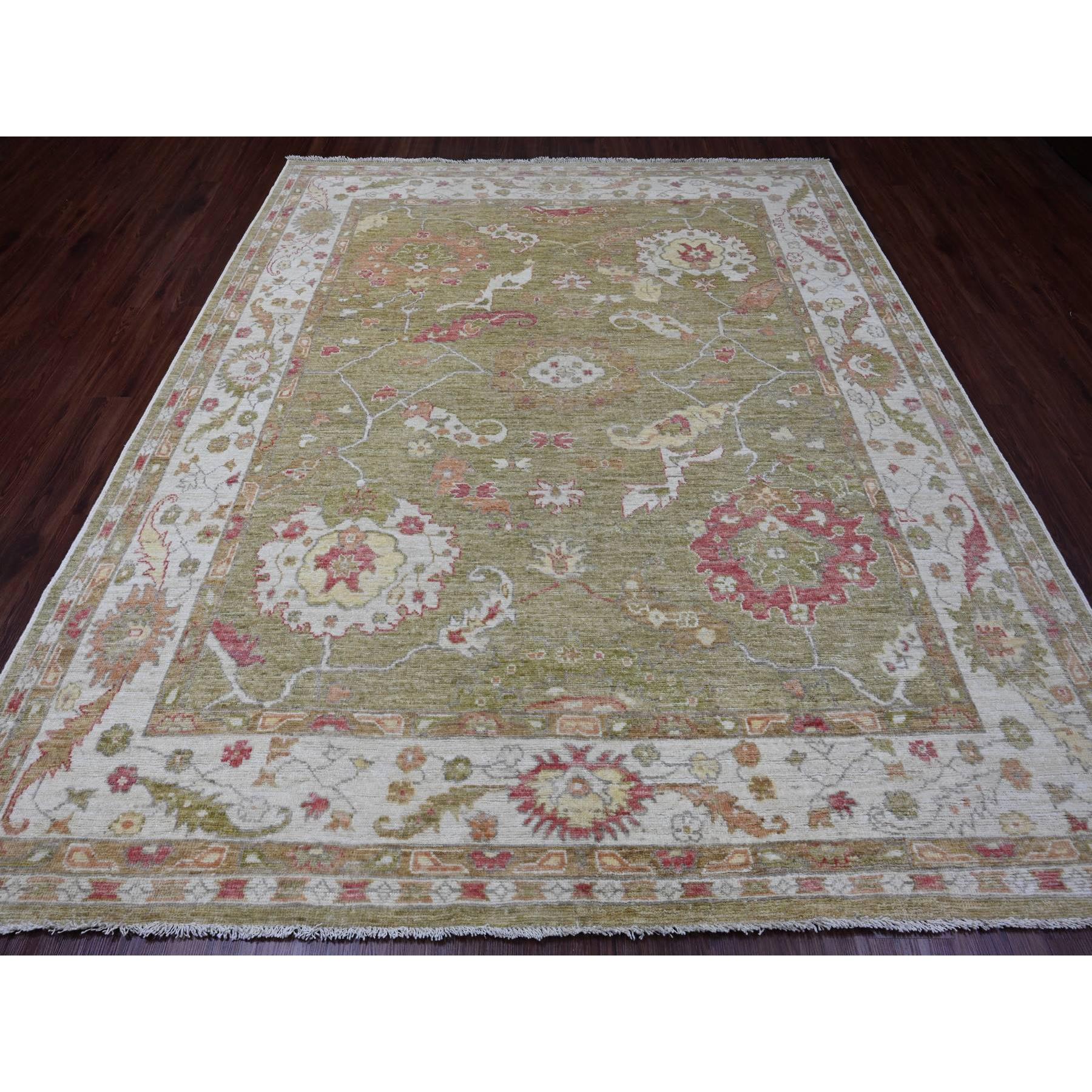 8'1"x9'7" Amber Green, Afghan Angora Oushak With Large Leaf Design, 100% Wool, Veggie Dyes, Hand Knotted, Oriental Rug FWR538602
