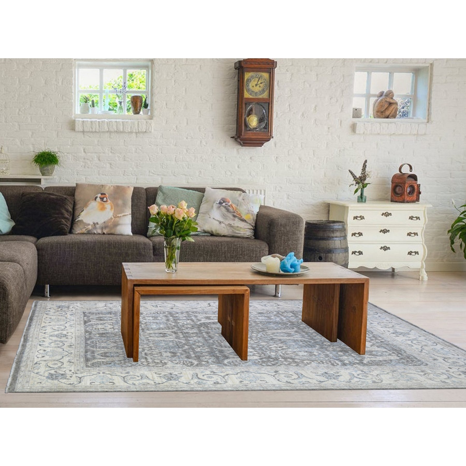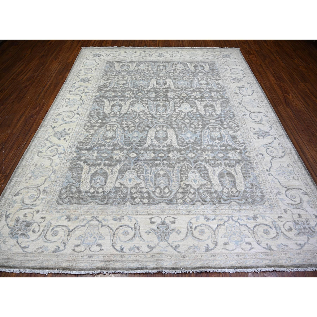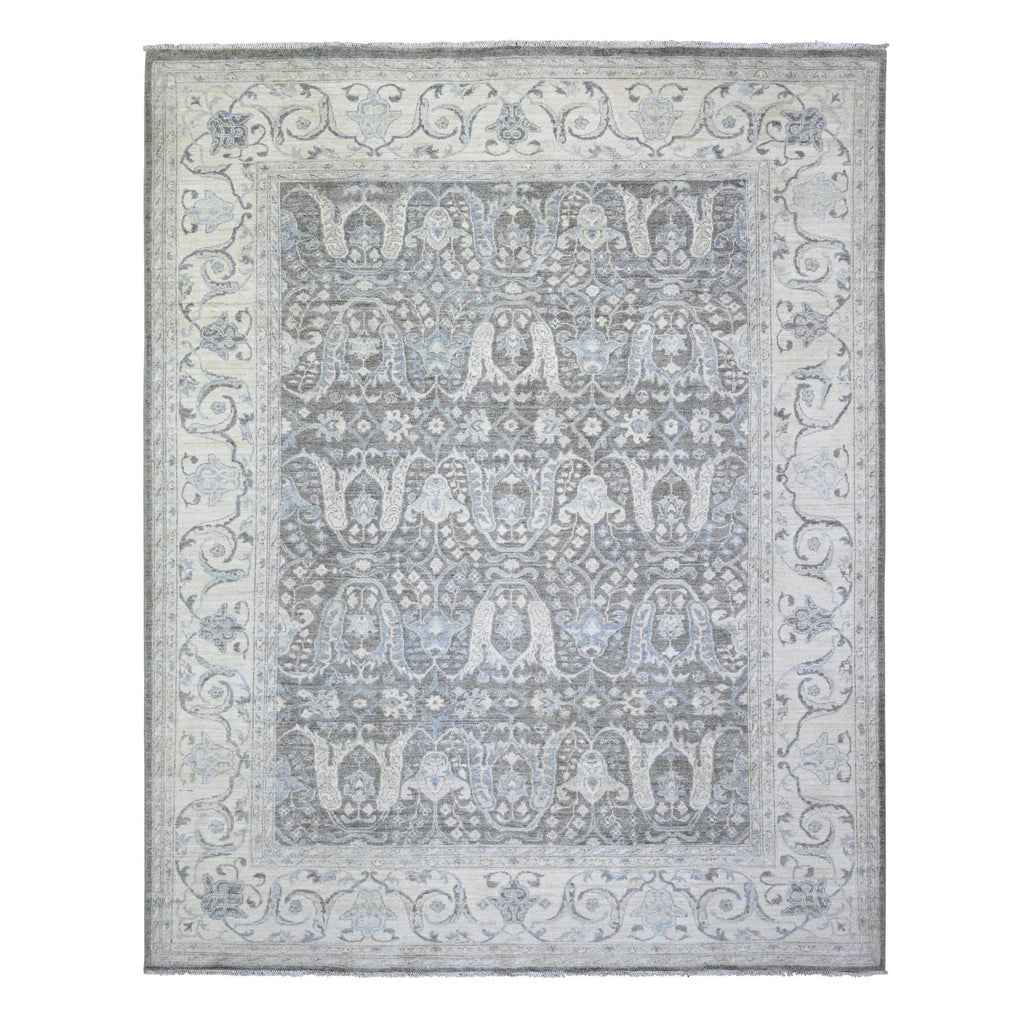 8'1"x9'8" Carbon Gray, Stone Washed Peshawar With Bijar Garus Design, Vegetable Dyes, Soft Wool Hand Knotted, Oriental Rug FWR442956
