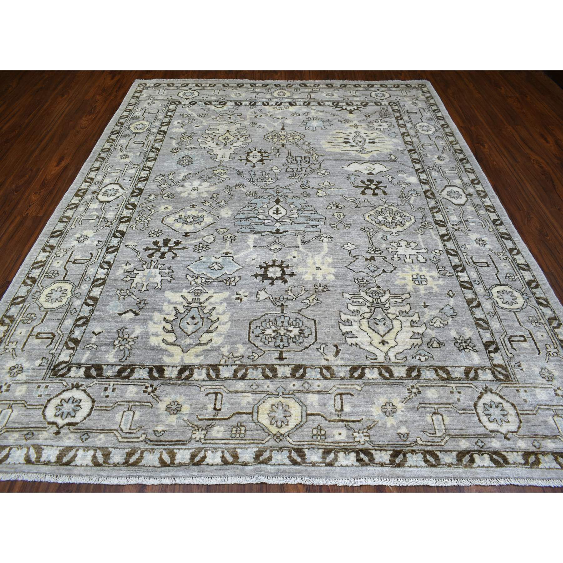 8'1"x9'8" Gray With A Blend Of Bold Colors All Over Design Angora Oushak Hand Knotted Soft Afghan Wool Oriental Rug FWR420414