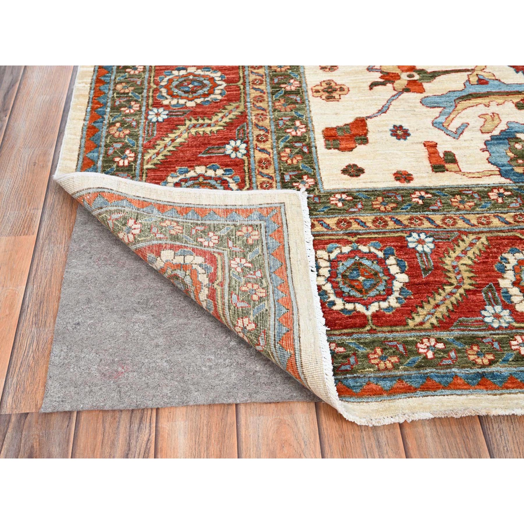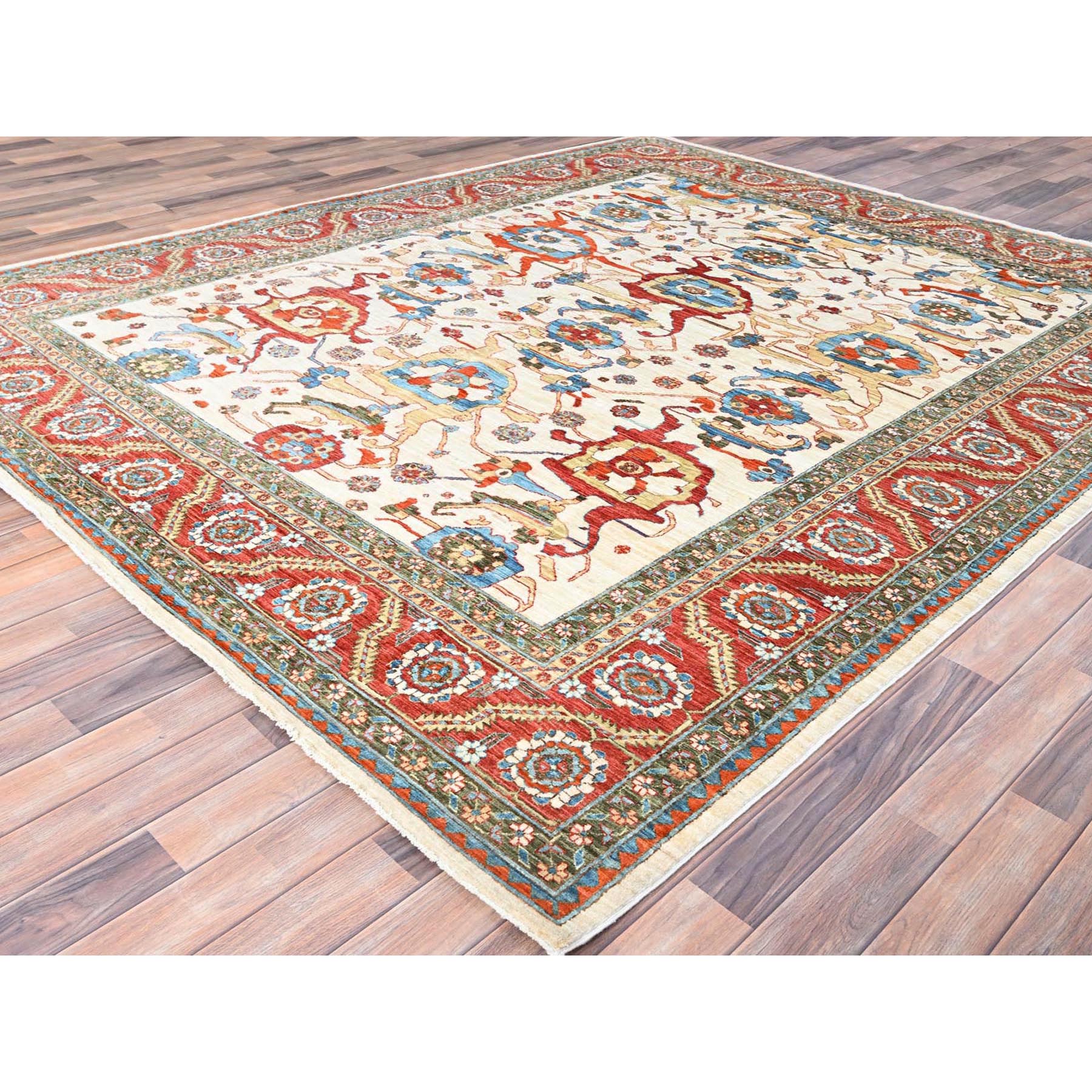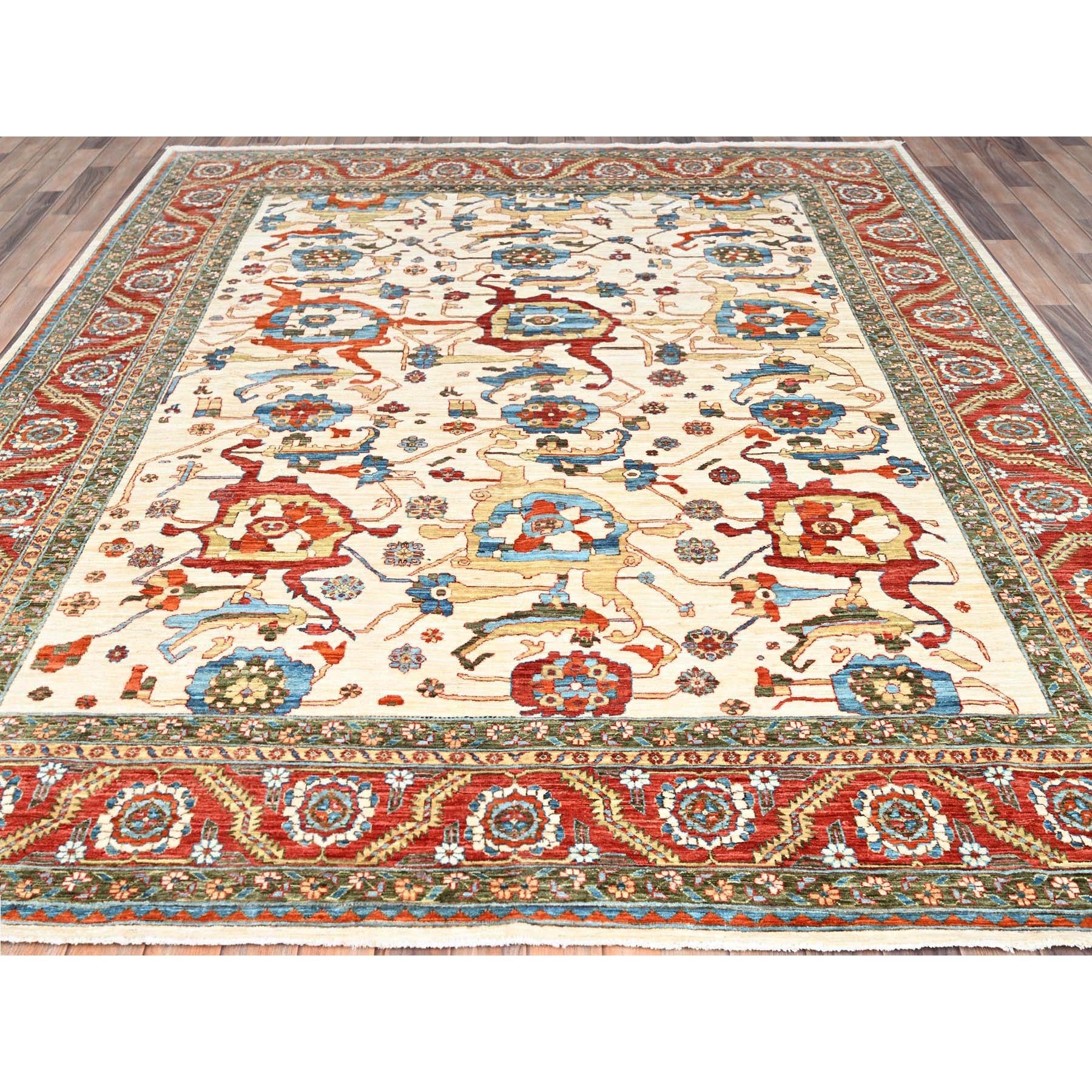 8'1"x9'9" Bone White, Pure Wool, Vegetable Dyes, 200 Kpsi, Heriz All Over Design, Hand Knotted, Oriental Rug FWR513690