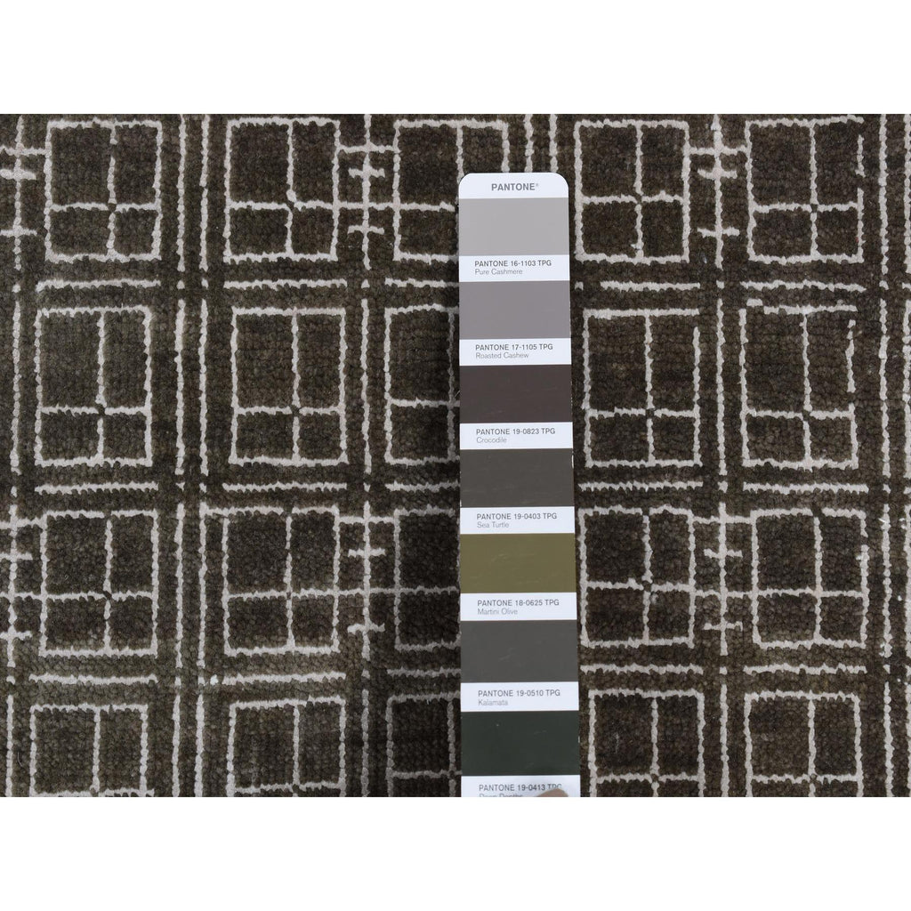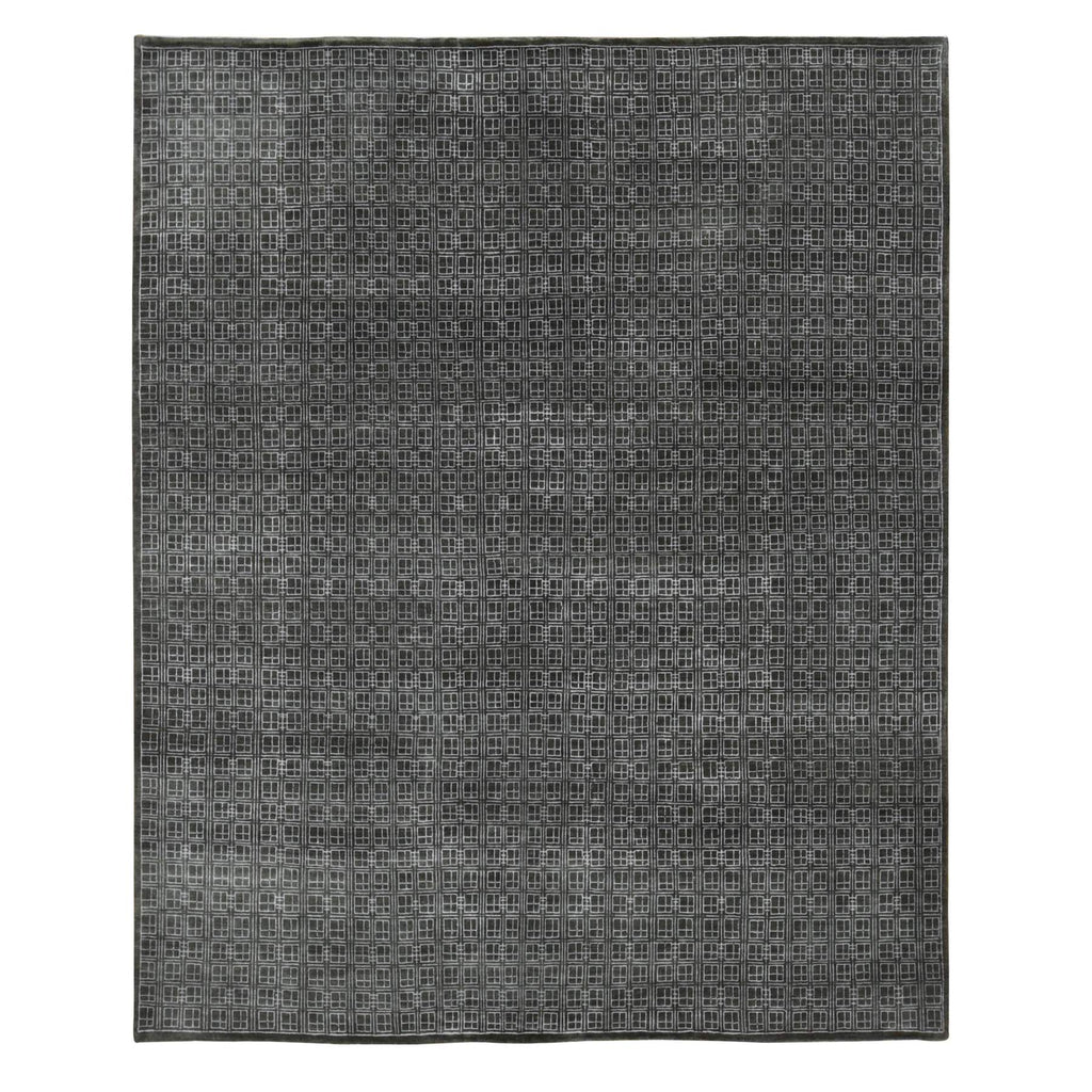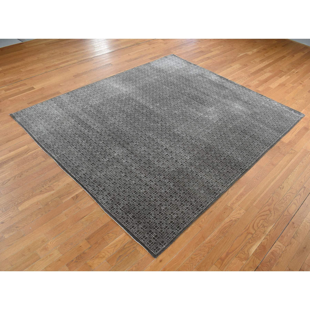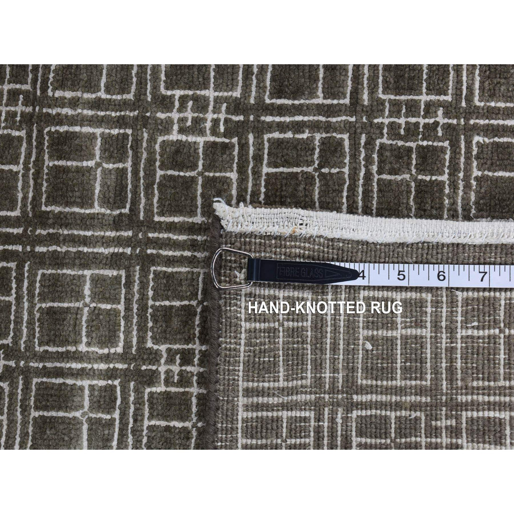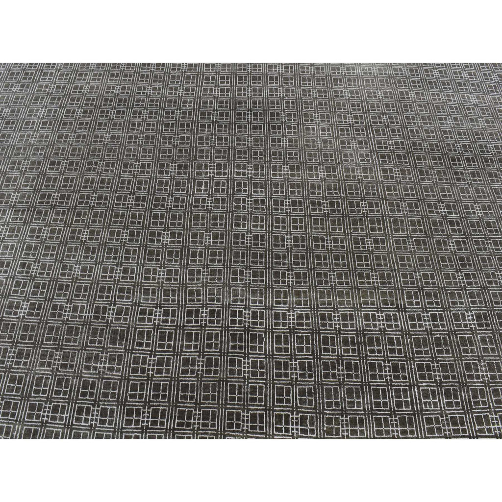 8'1"x9'9" Chocolate Brown, Small Box Design, Wool And Silk, Hand Knotted, Oriental Rug FWR522180