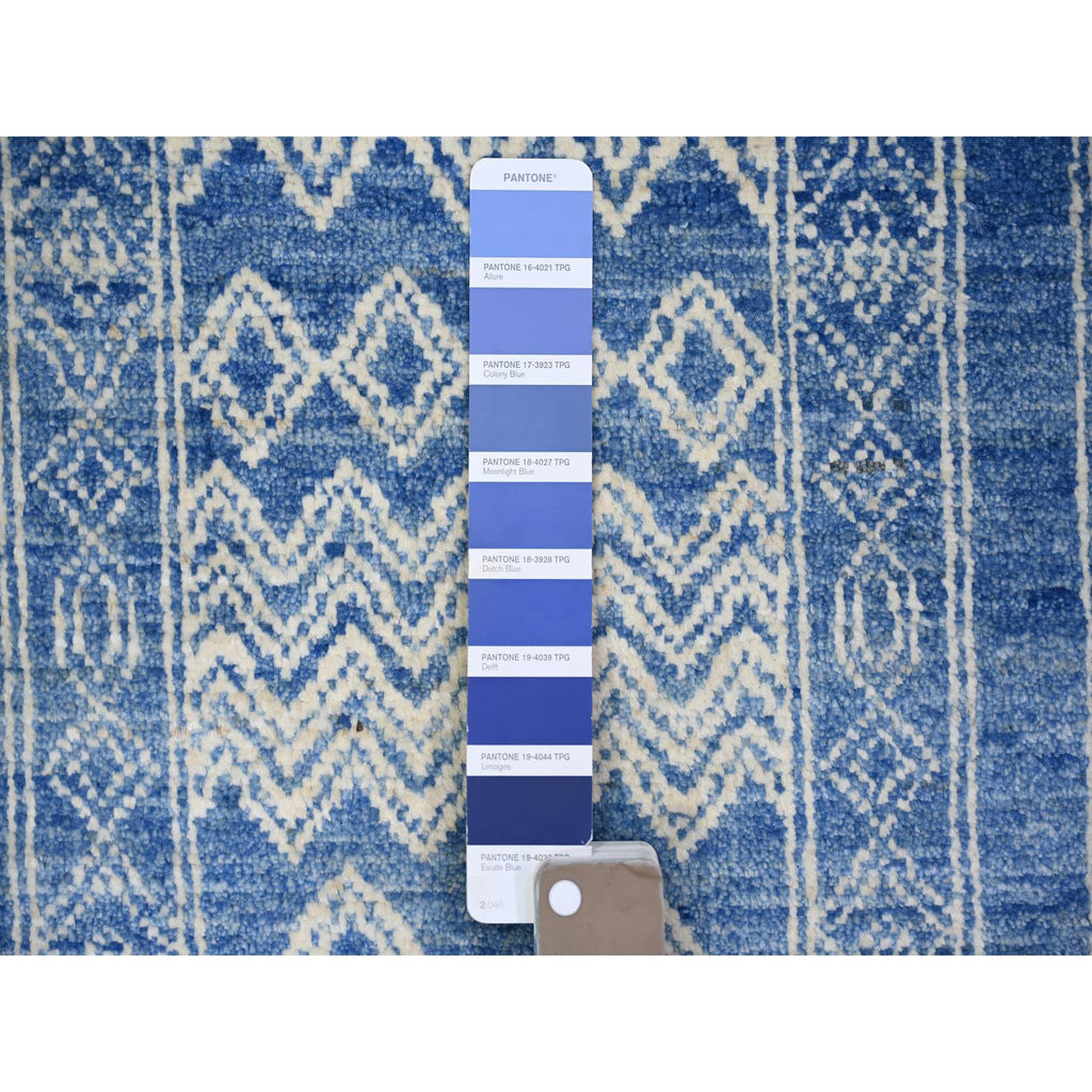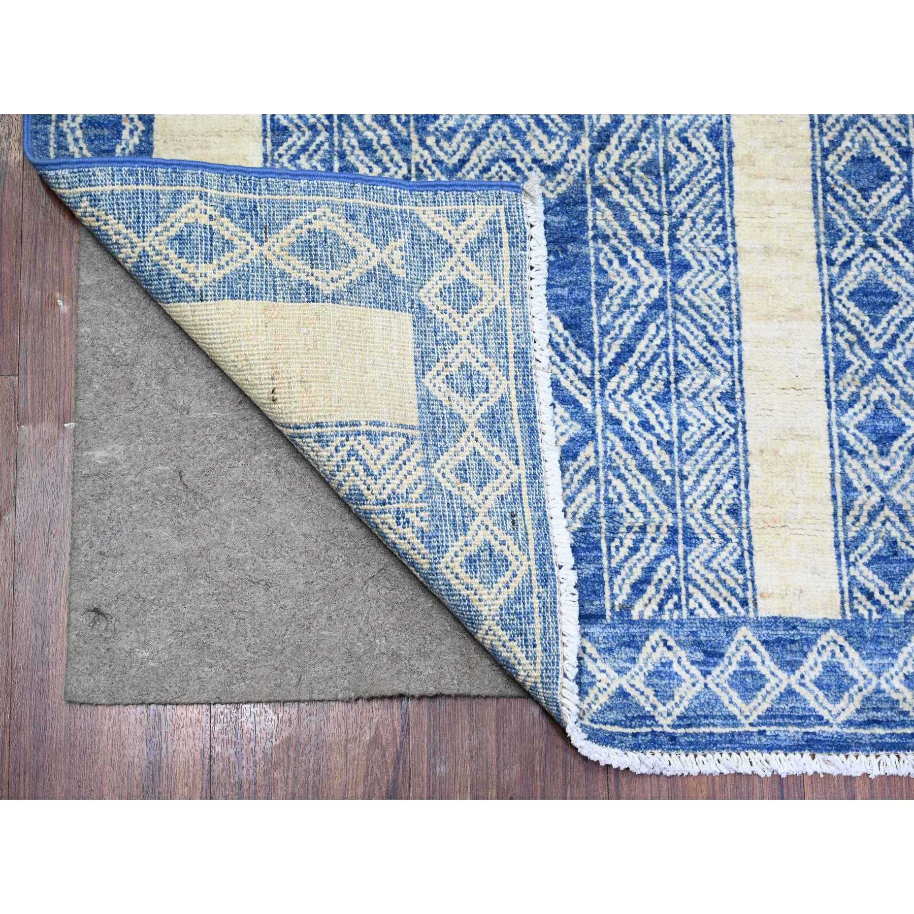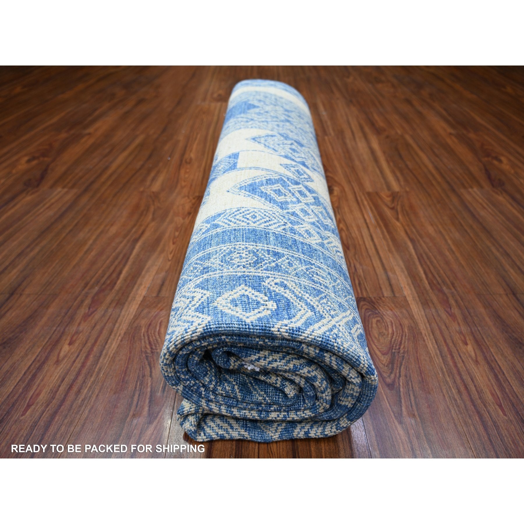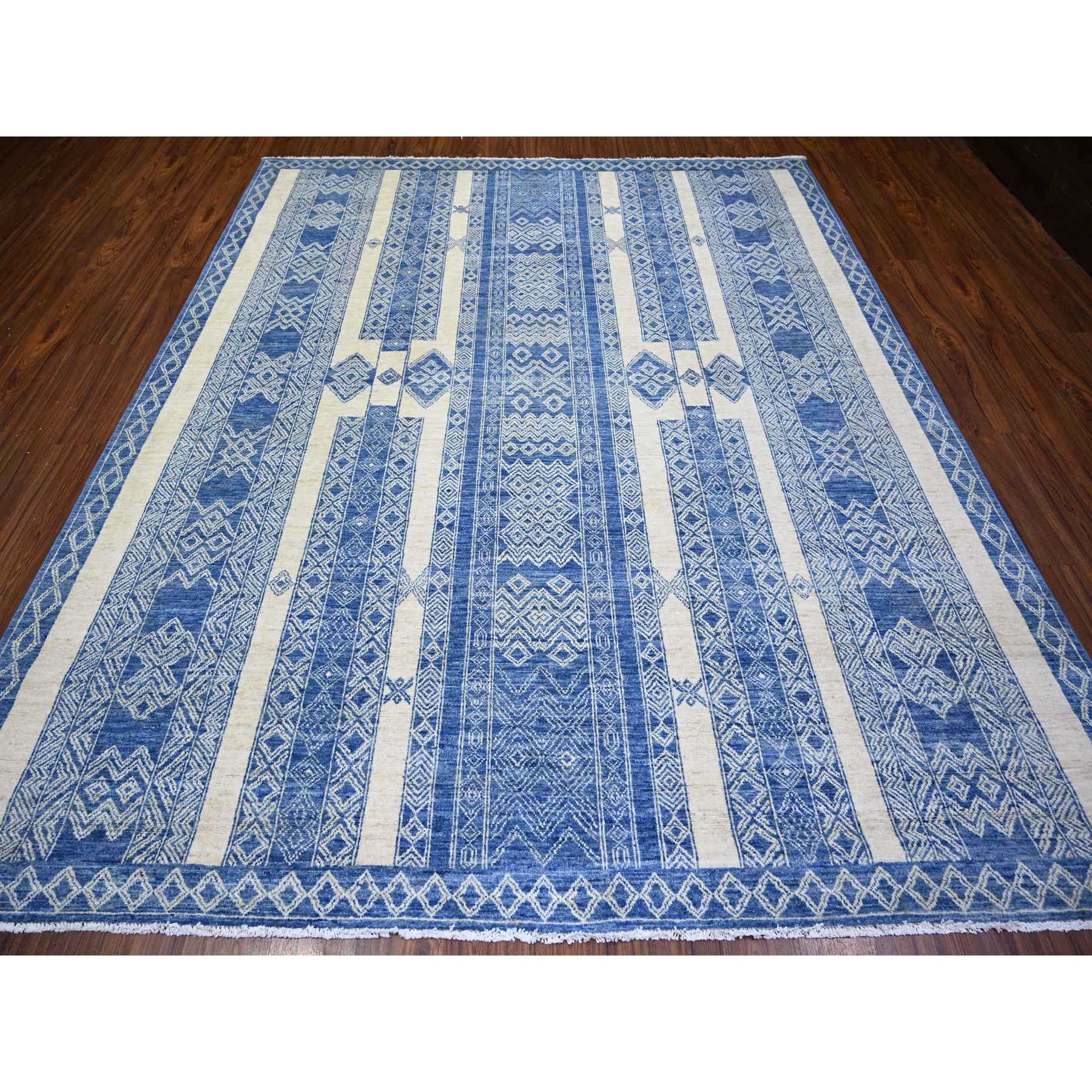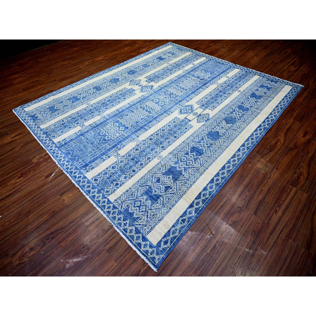 8'1"x9'9" Dutch Blue, Fine Peshawar With Intricate Geometric Motifs Densely Woven, Organic Wool Hand Knotted, Oriental Rug FWR439644
