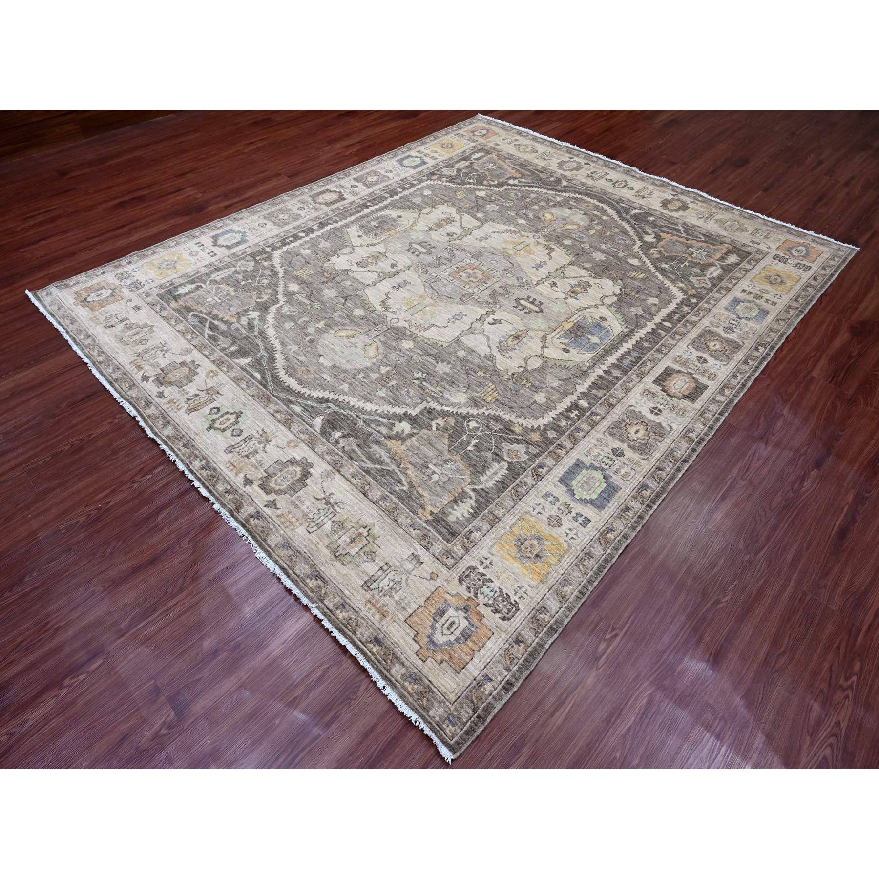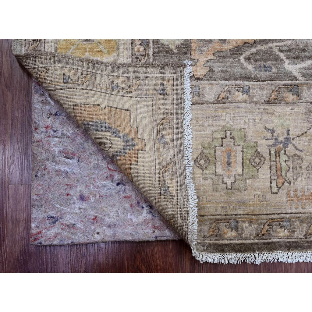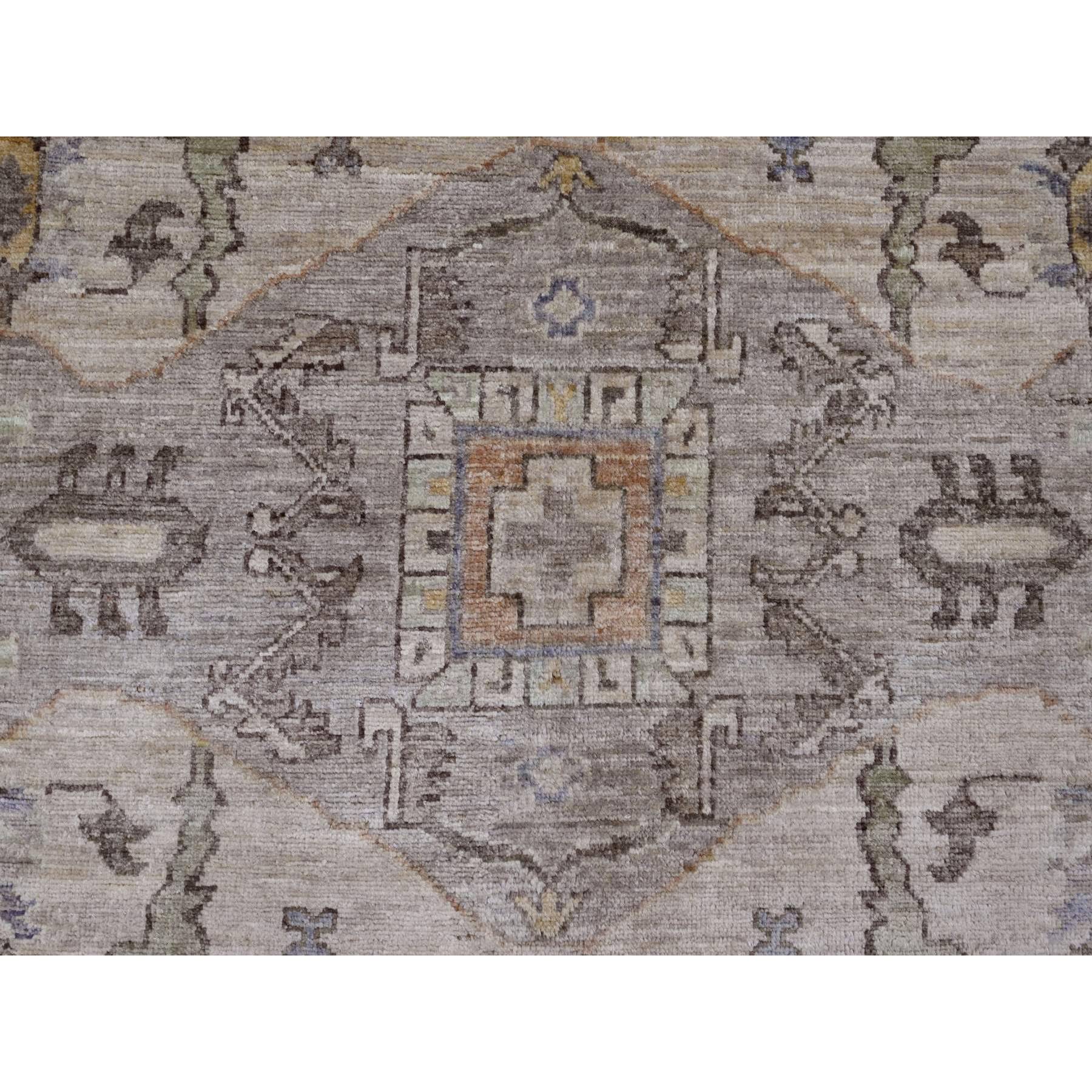 8'1"x9'9" Fossil Gray, Serapi Heriz With Large Medallion Design, Peshawar, Natural Dyes, Hand Knotted, 100% Wool, Oriental Rug FWR120546
