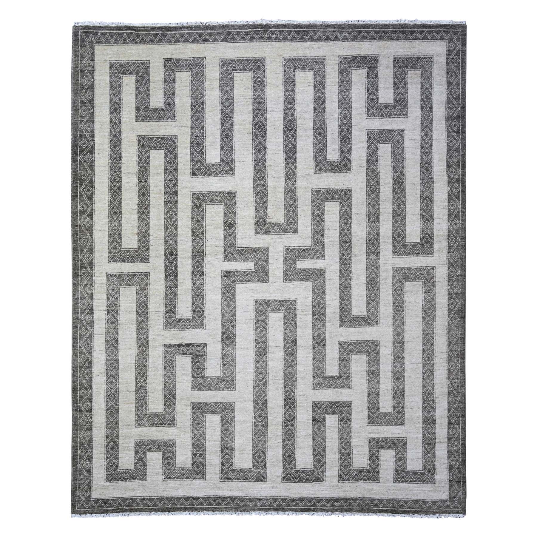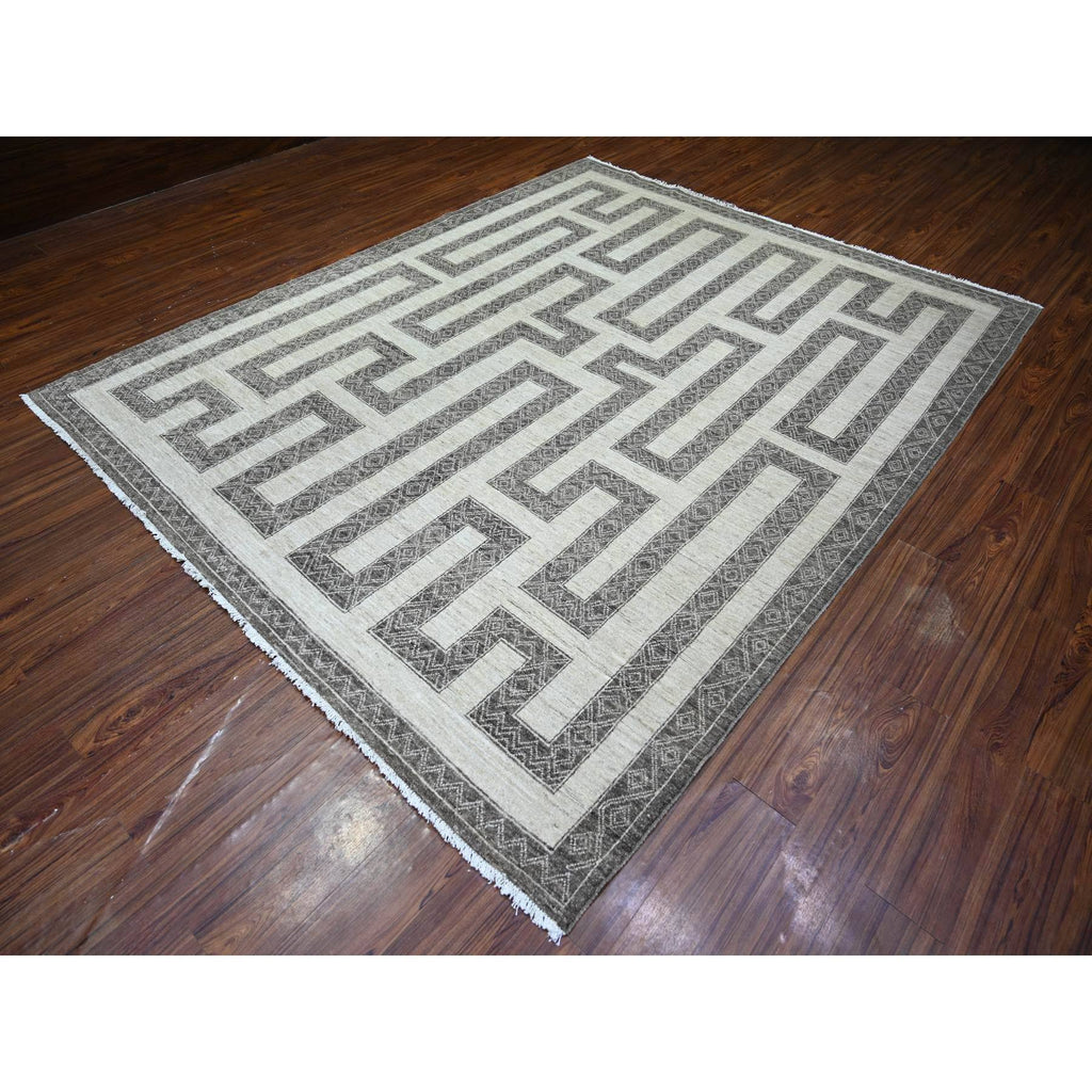 8'1"x9'9" Taupe Brown, Finer Peshawar With Intricate Geometric Motifs Maze Design Natural Dyes, 100% Wool Hand Knotted, Oriental Rug FWR445128