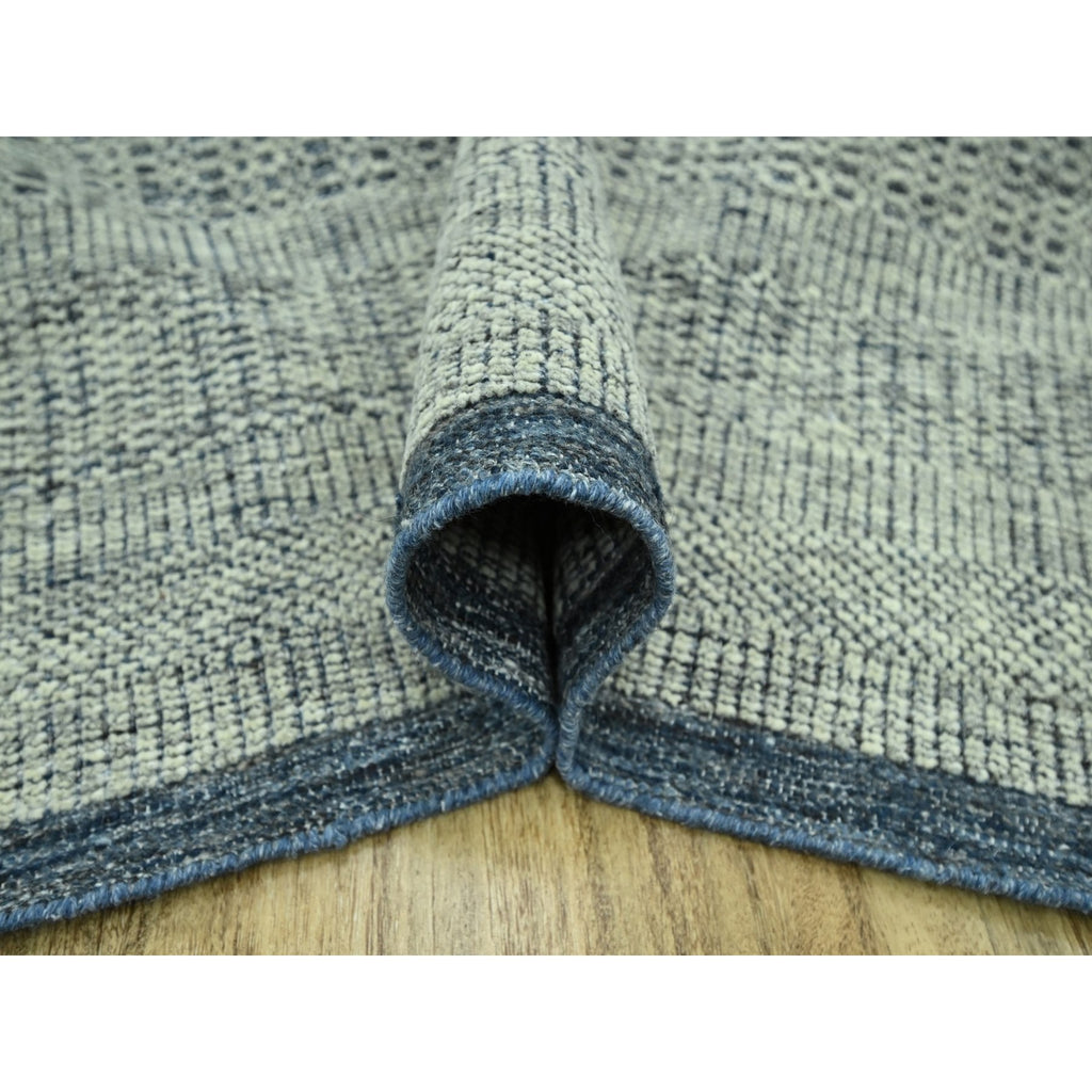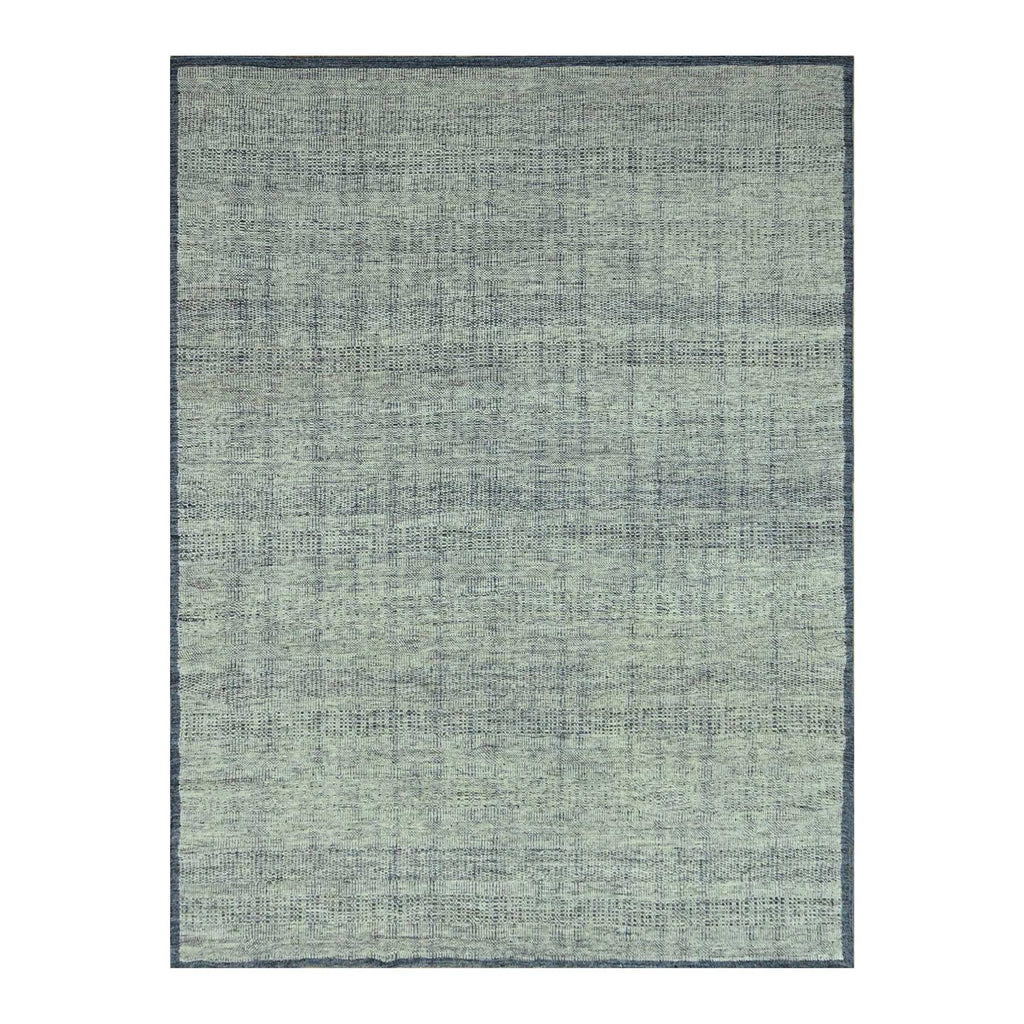 8'10"x11'10" Astros Navy Blue With Ivory, Hand Knotted, Distressed And Oxidized Grass Design, Organic Wool, Oriental Rug FWR460170