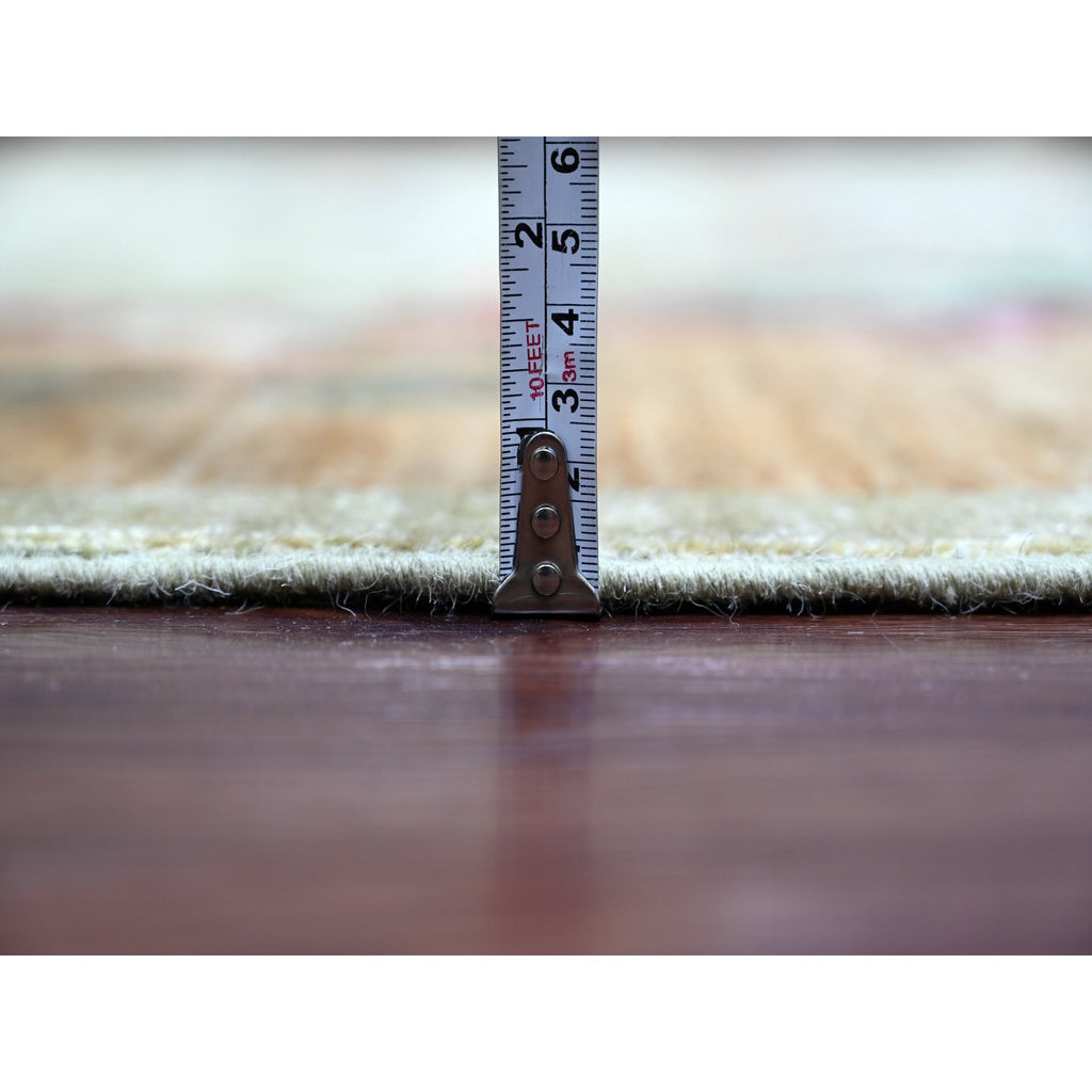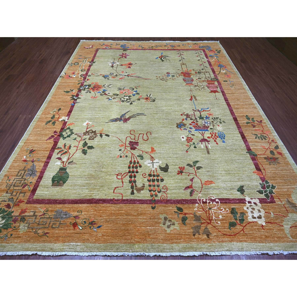 8'10"x11'7" Laurel Green, Pure Wool, Chinese Art Deco Inspired Peshawar, Natural Dyes, Hand Knotted, Oriental Rug FWR126438