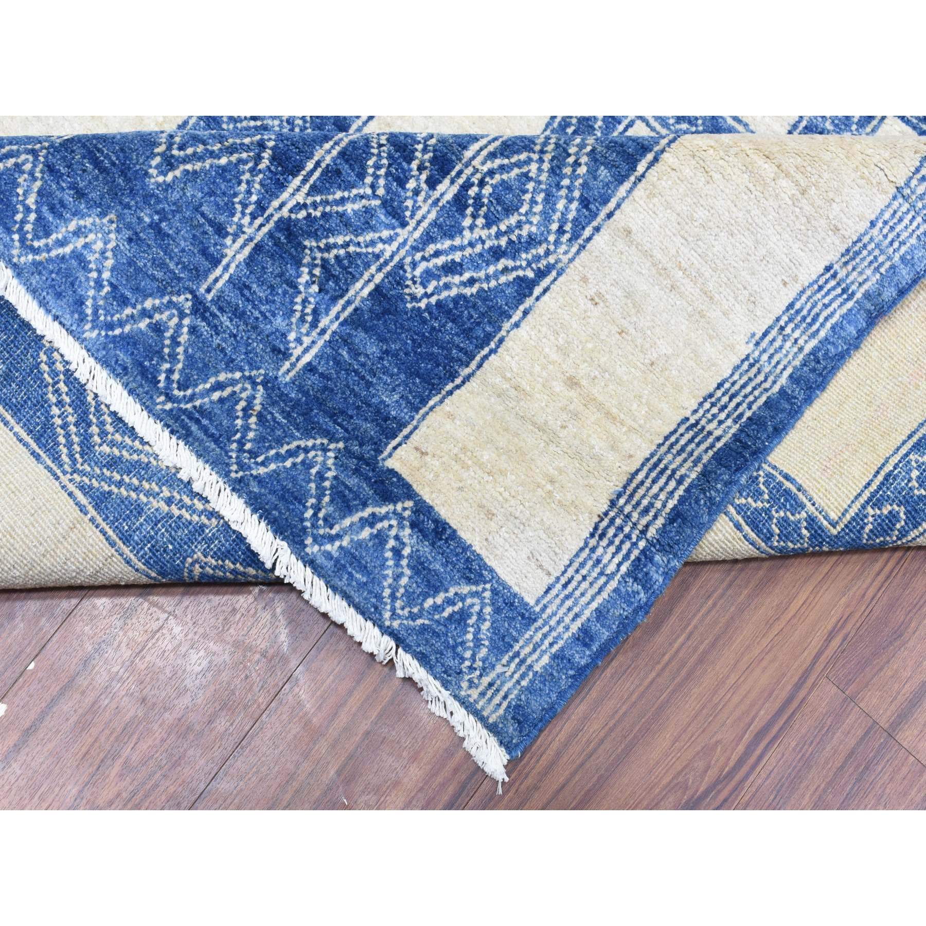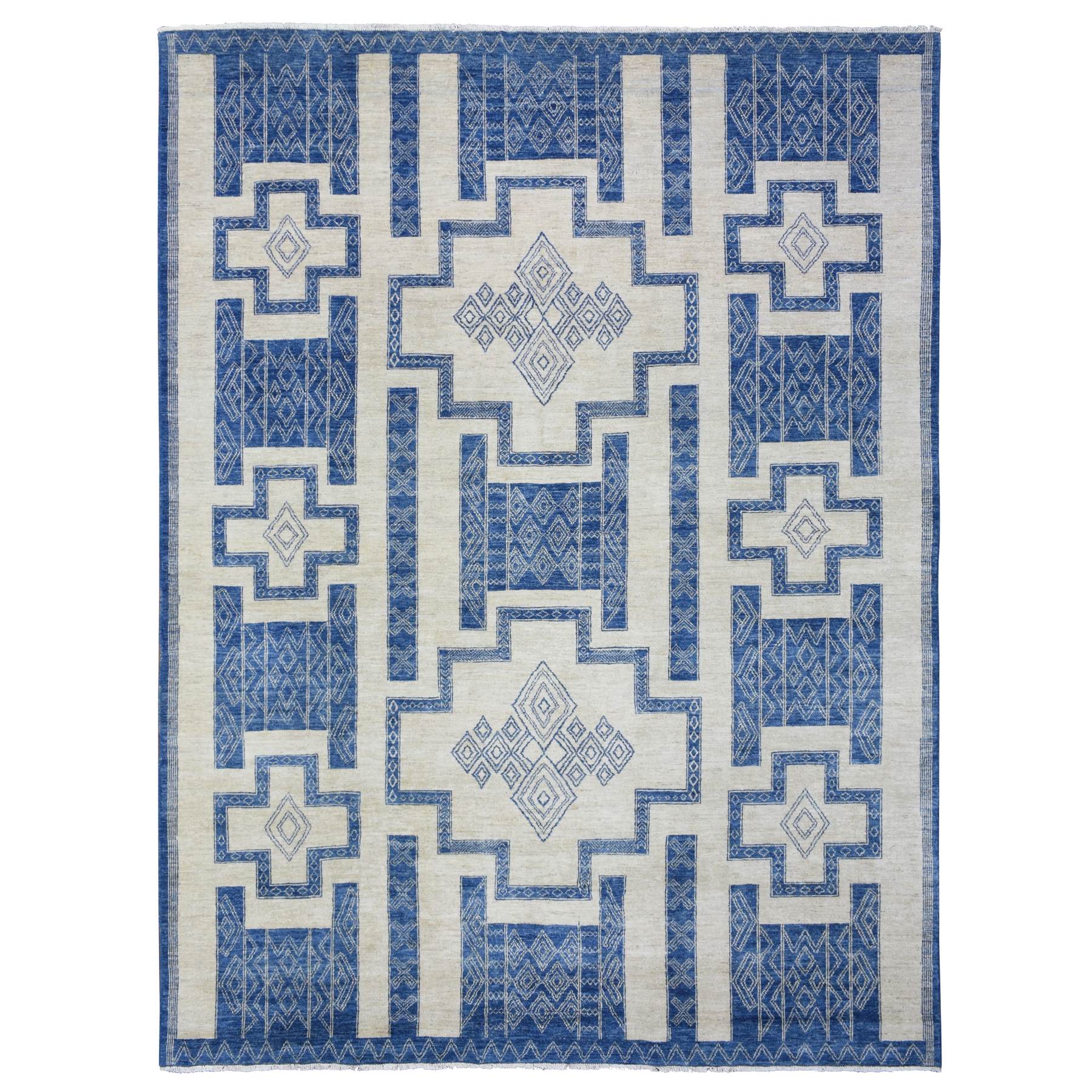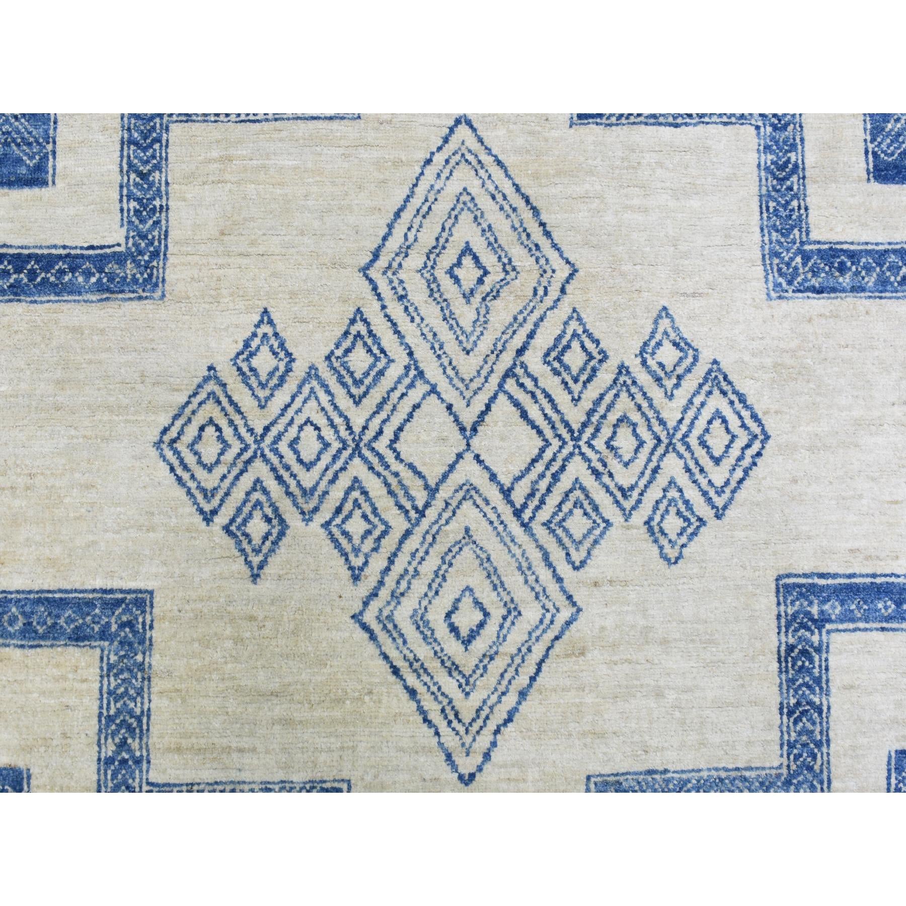 8'10"x11'8" Ivory With Denim Blue, Hand Knotted Fine Peshawar With Intricate, Geometric, Motifs, Densely Woven Soft Organic Wool, Oriental Rug FWR436320