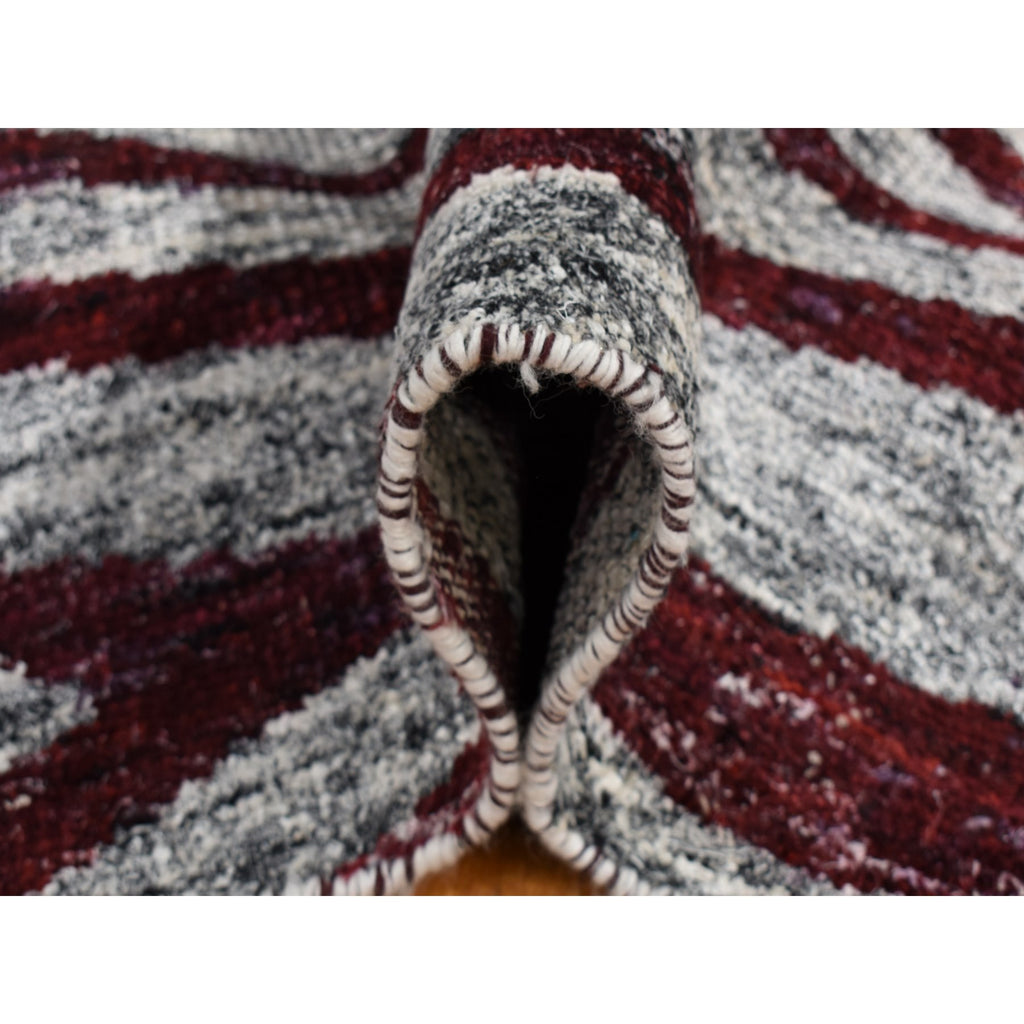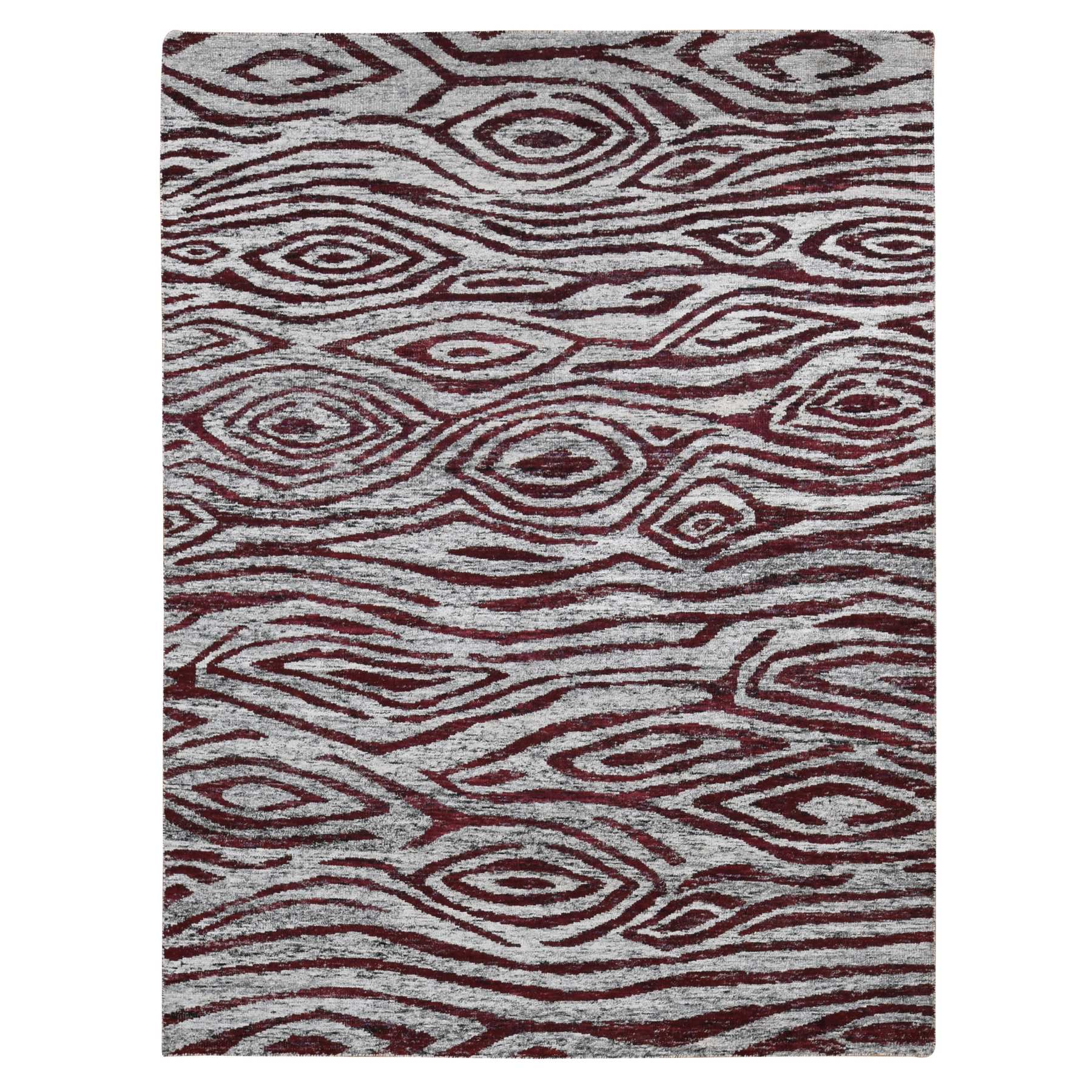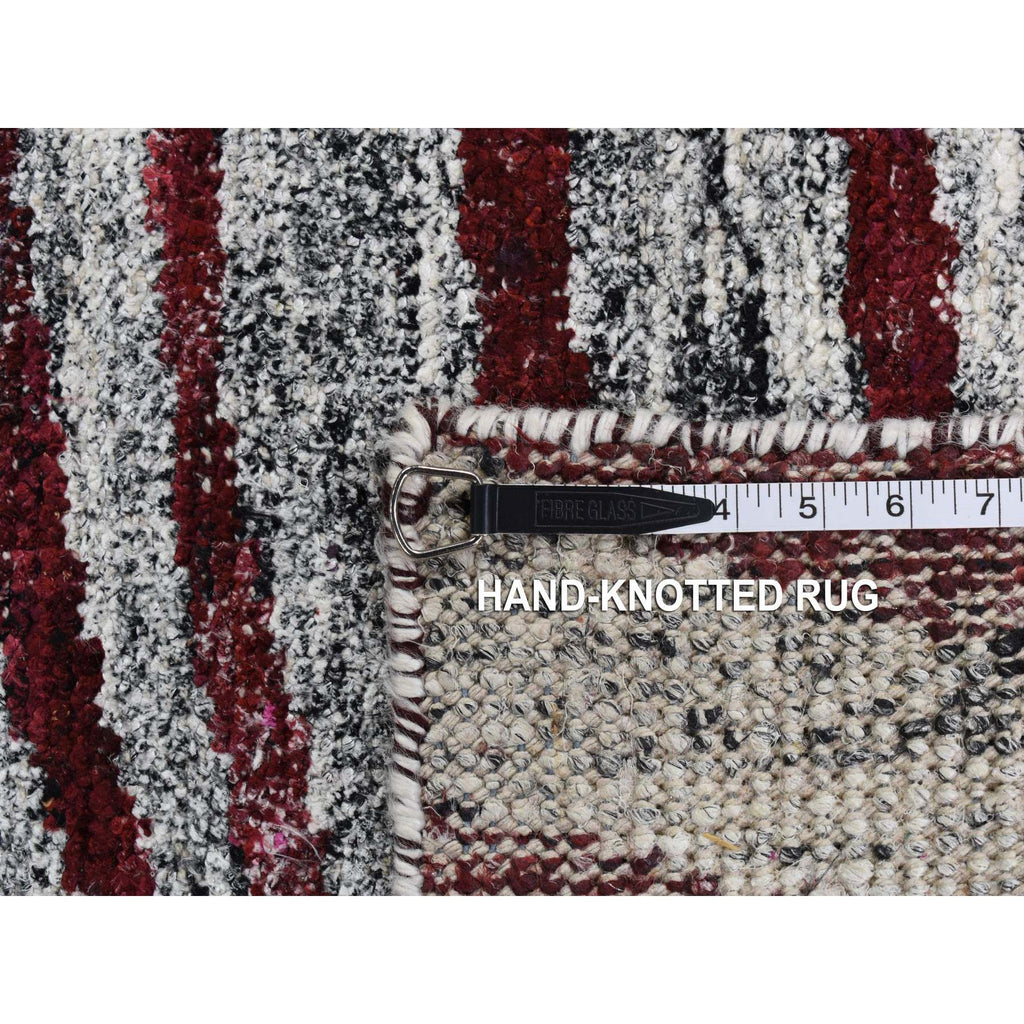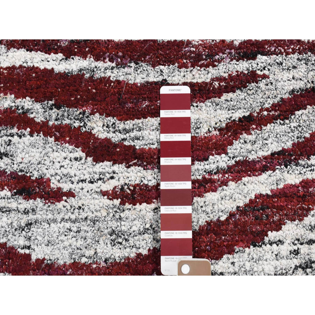 8'10"x11'9" Vermilion Red, Thick, Man Made Silk, Modern Repetitive Colorful Tree Bark Motif With Abrash, Cropped Pile, Hand Knotted, Oriental Rug FWR484926