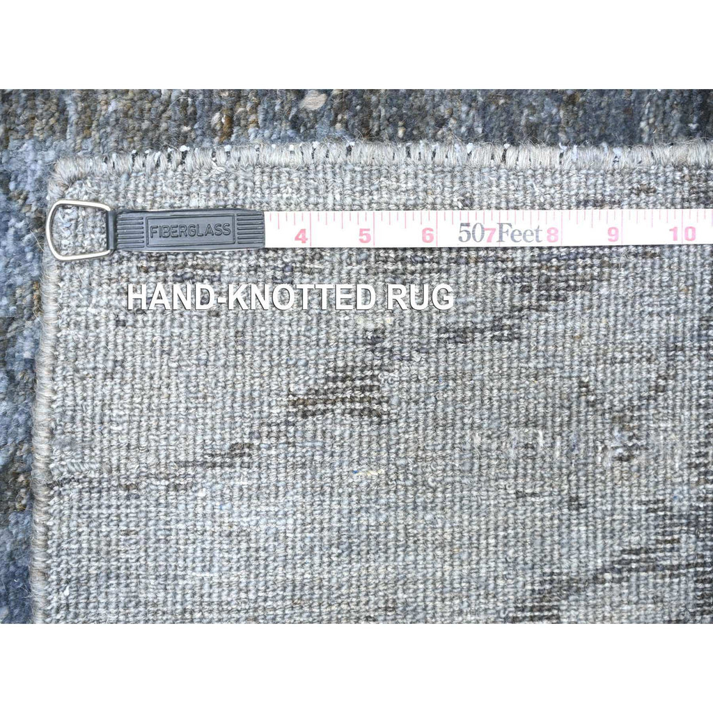 8'10"x12'1" Blue Gray, Modern Tree In The Dusk Design, 100% Wool, Natural Dyes, Tone On Tone, Hand Knotted, Oriental Rug FWR447774