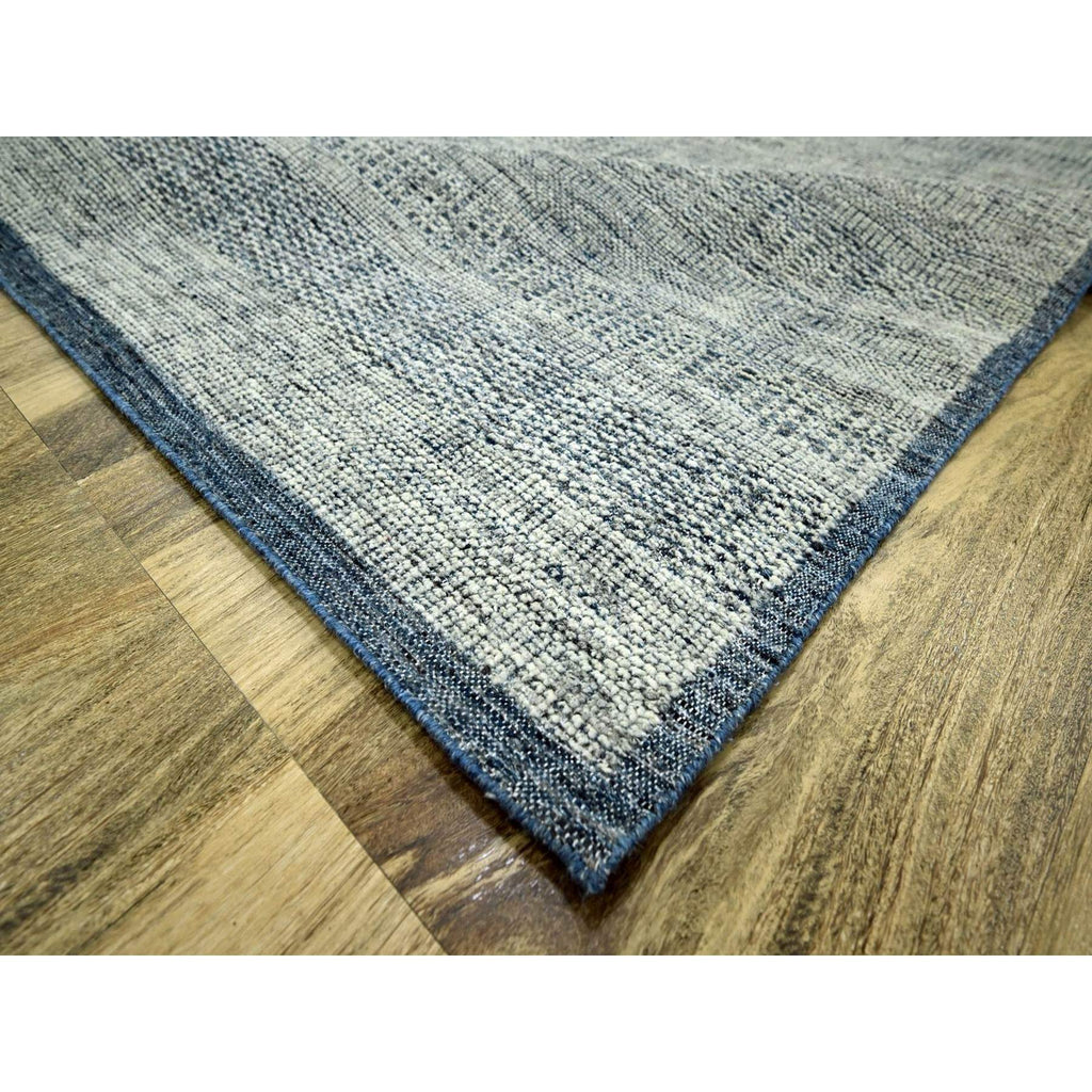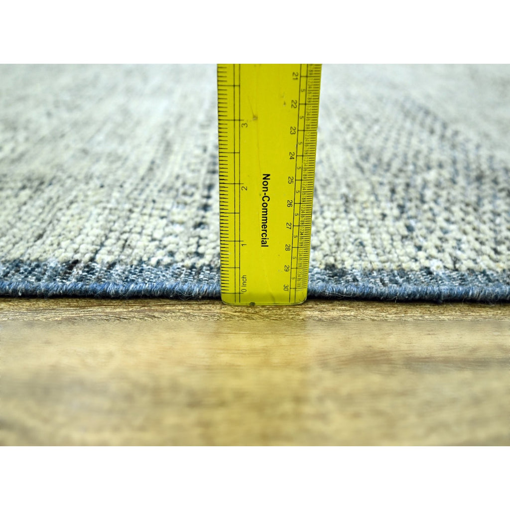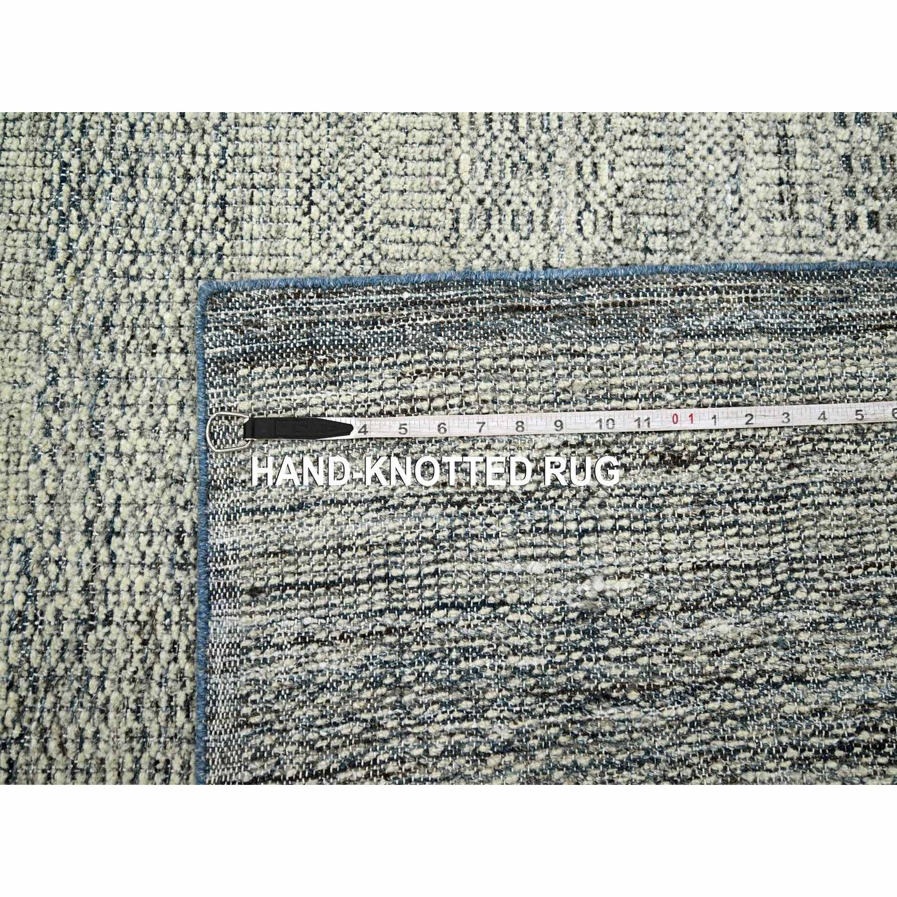 8'10"x12'1" Imperial Blue With Ivory, Hand Knotted, Organic Wool, Oxidized Grass Design With Exposed Warps, Distressed, Oriental Rug FWR460242