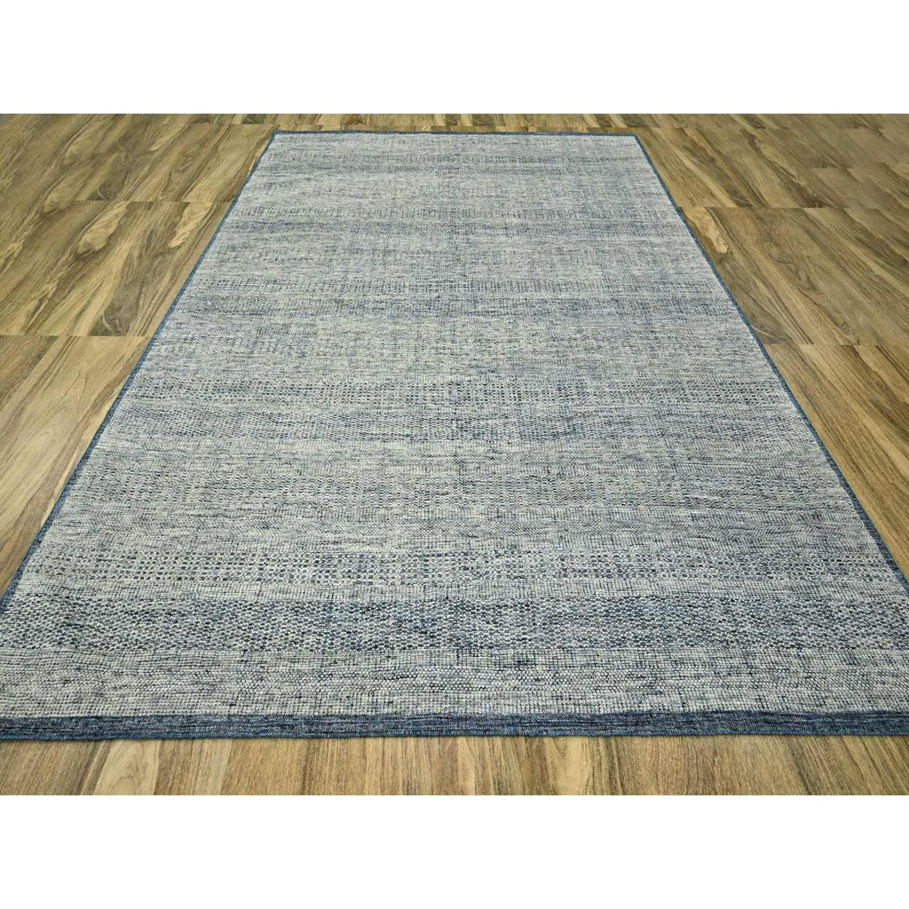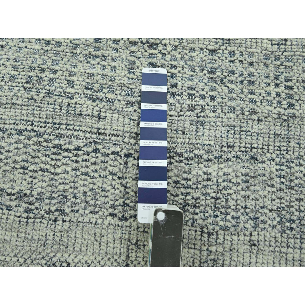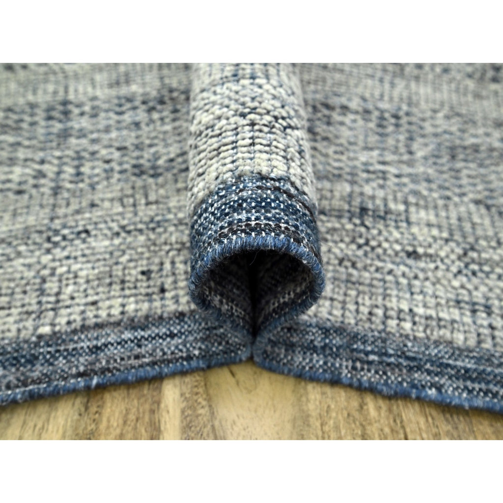8'10"x12'1" Imperial Blue With Ivory, Hand Knotted, Organic Wool, Oxidized Grass Design With Exposed Warps, Distressed, Oriental Rug FWR460242
