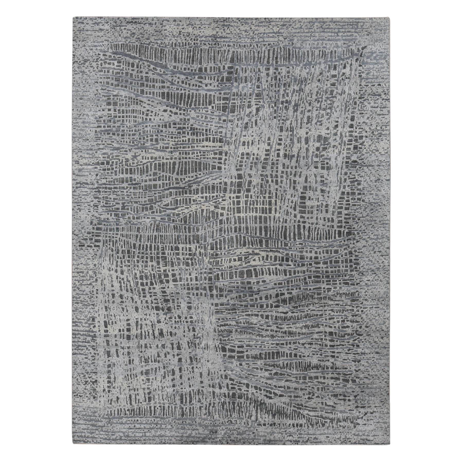 8'10"x12'2" Cloud Gray, The Lost Branches, Silk With Textured Wool, Hand Knotted, Oriental Rug FWR522648