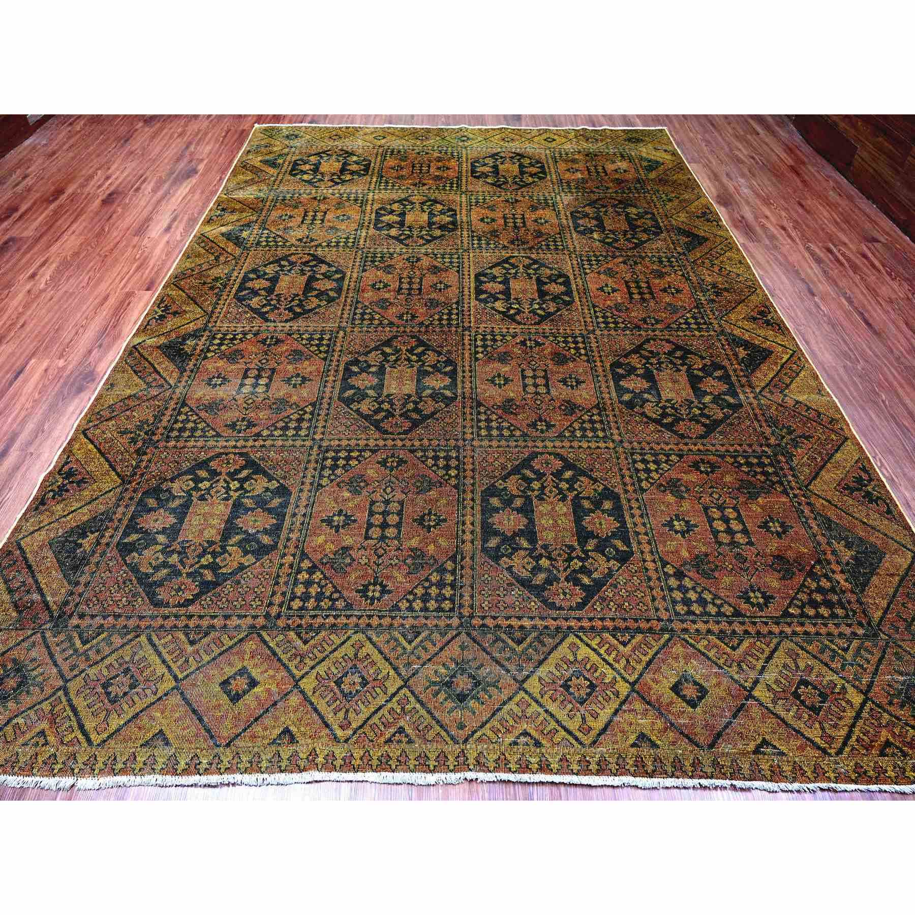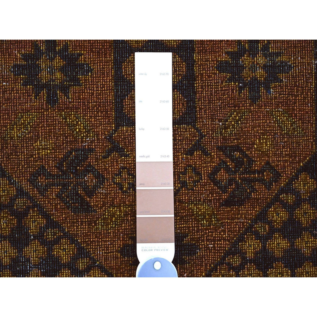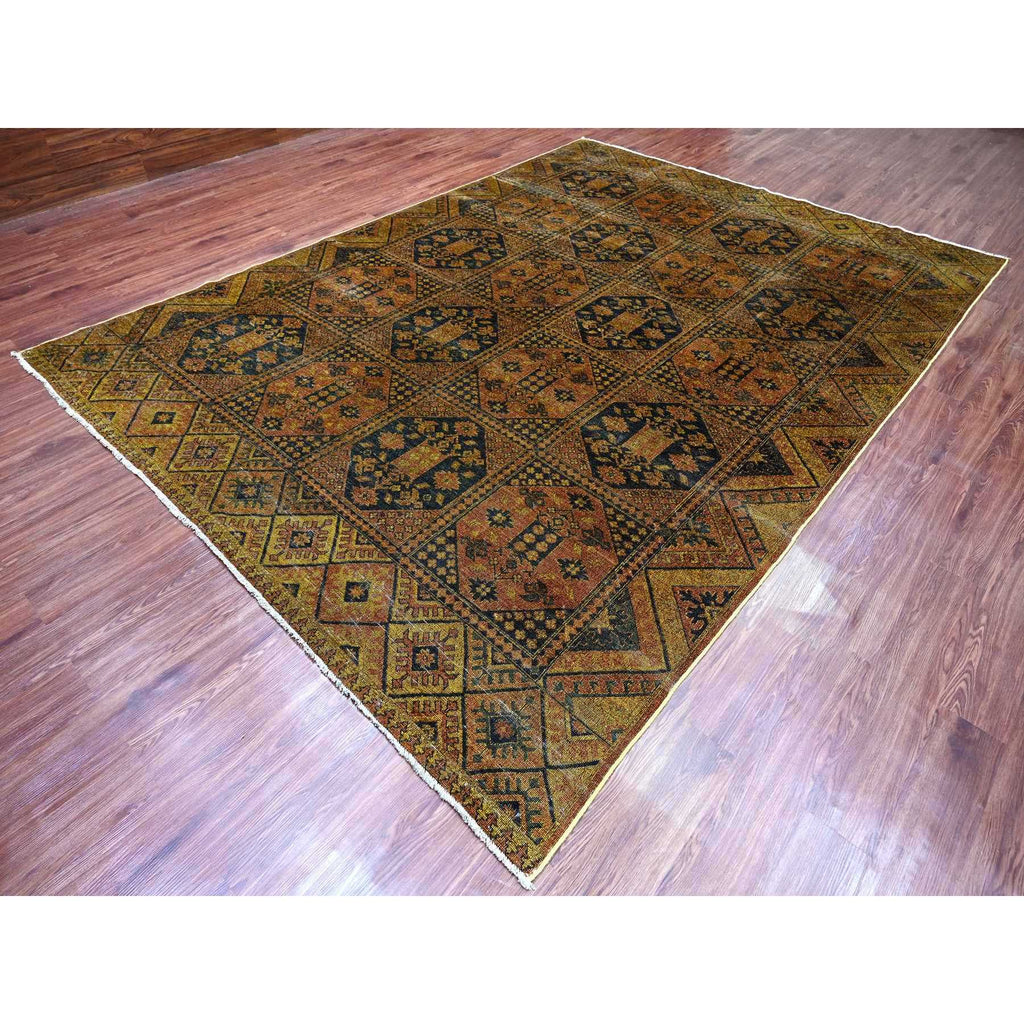 8'10"x12'2" Coffee Brown, Overdyed Afghan Ersari With Garden Block Design, Zero Pile, Vegetable Dyes, Distressed, Hand Knotted, 100% Wool, Oriental Rug FWR122244