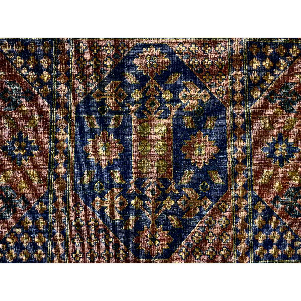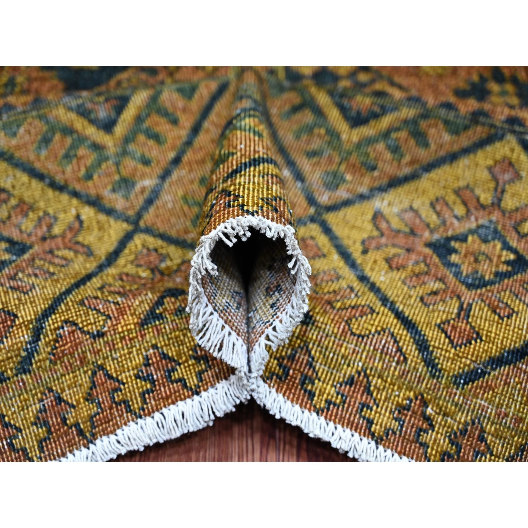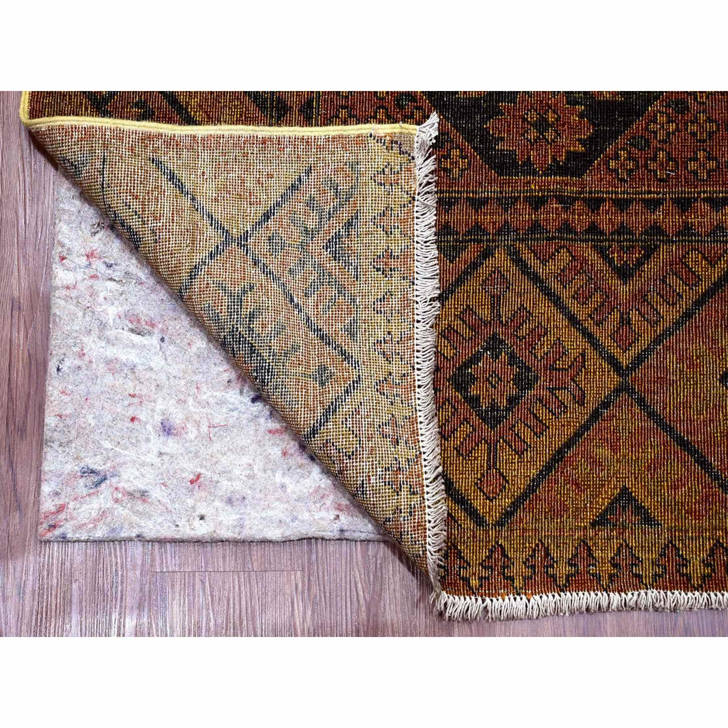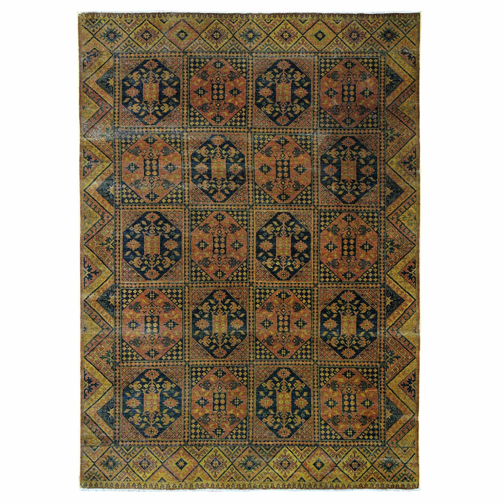 8'10"x12'2" Coffee Brown, Overdyed Afghan Ersari With Garden Block Design, Zero Pile, Vegetable Dyes, Distressed, Hand Knotted, 100% Wool, Oriental Rug FWR122244