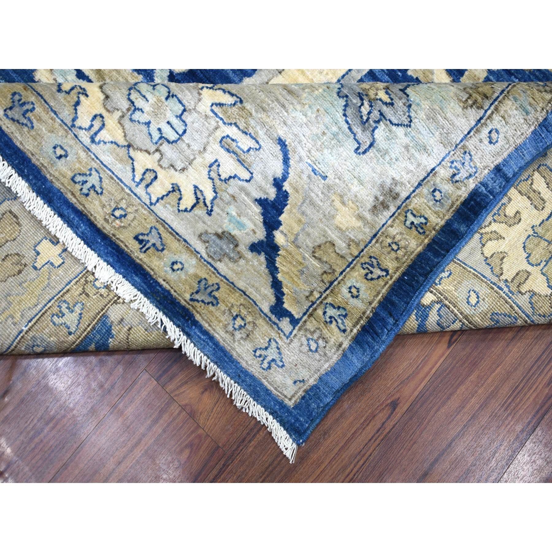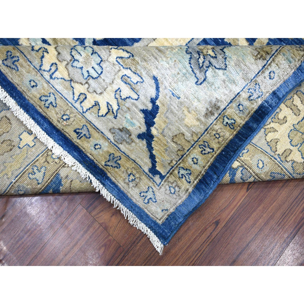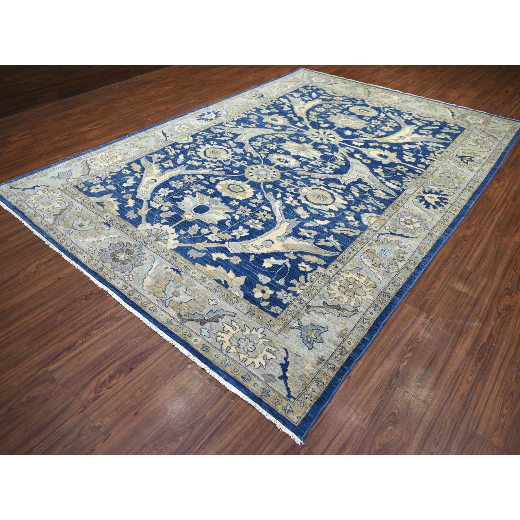 8'10"x12'4" Denim Blue, Soft Wool Hand Knotted, Fine Peshawar With All Over Flower Design Densely Woven, Oriental Rug FWR431640