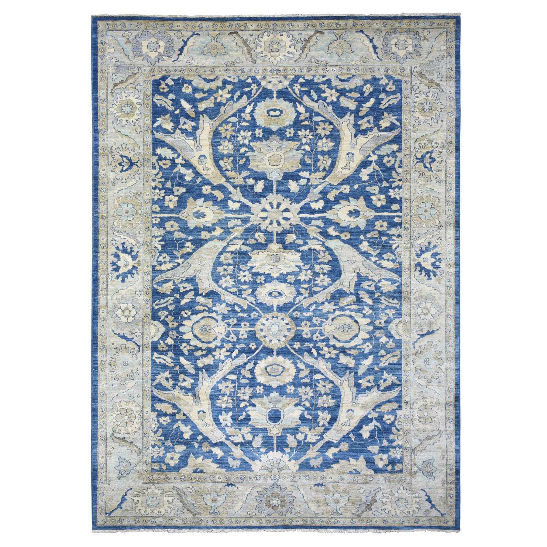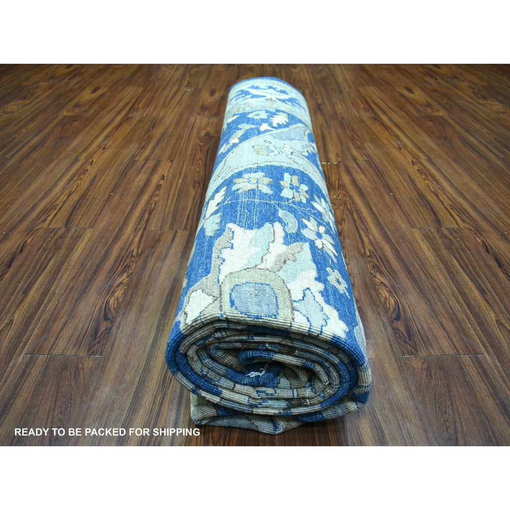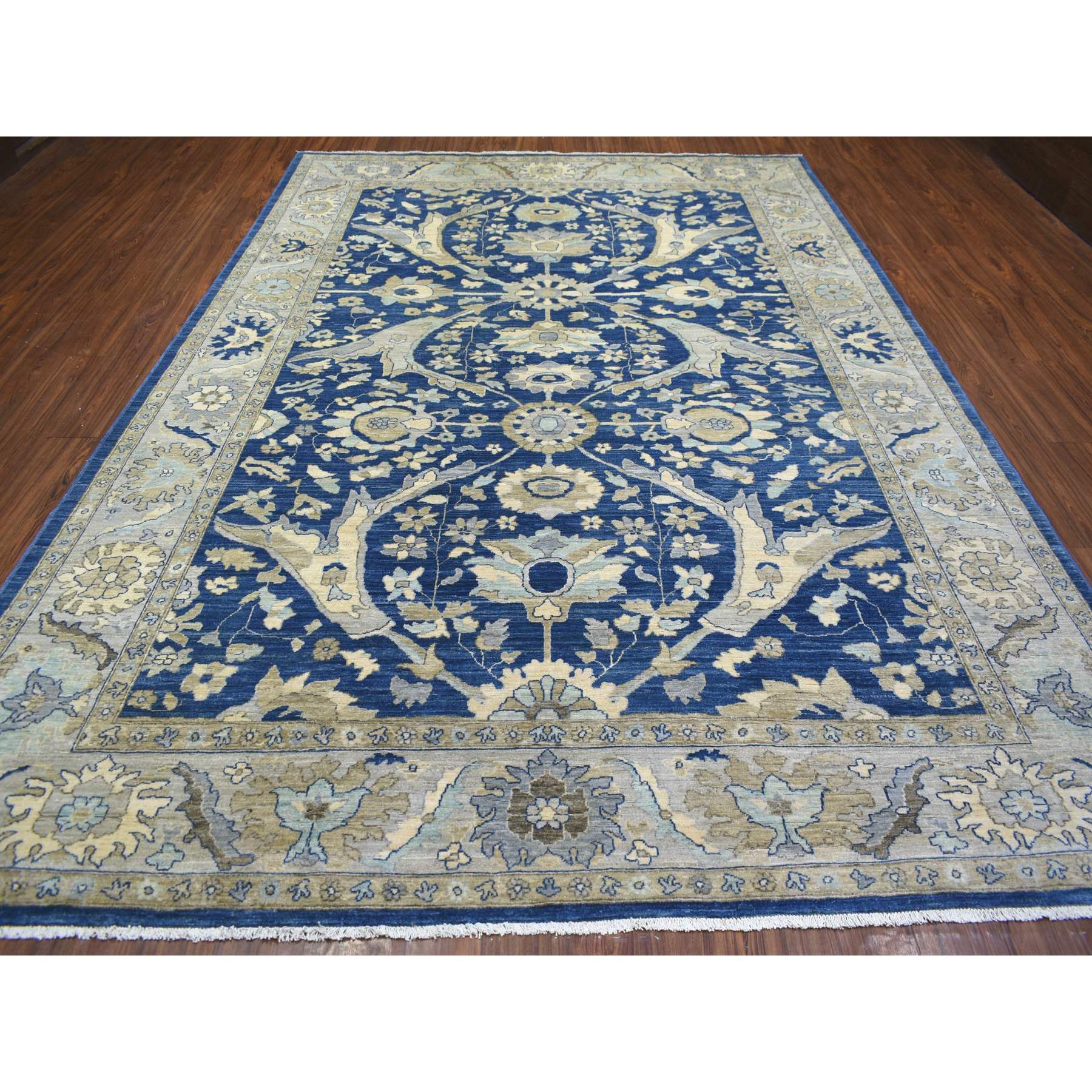 8'10"x12'4" Denim Blue, Soft Wool Hand Knotted, Fine Peshawar With All Over Flower Design Densely Woven, Oriental Rug FWR431640