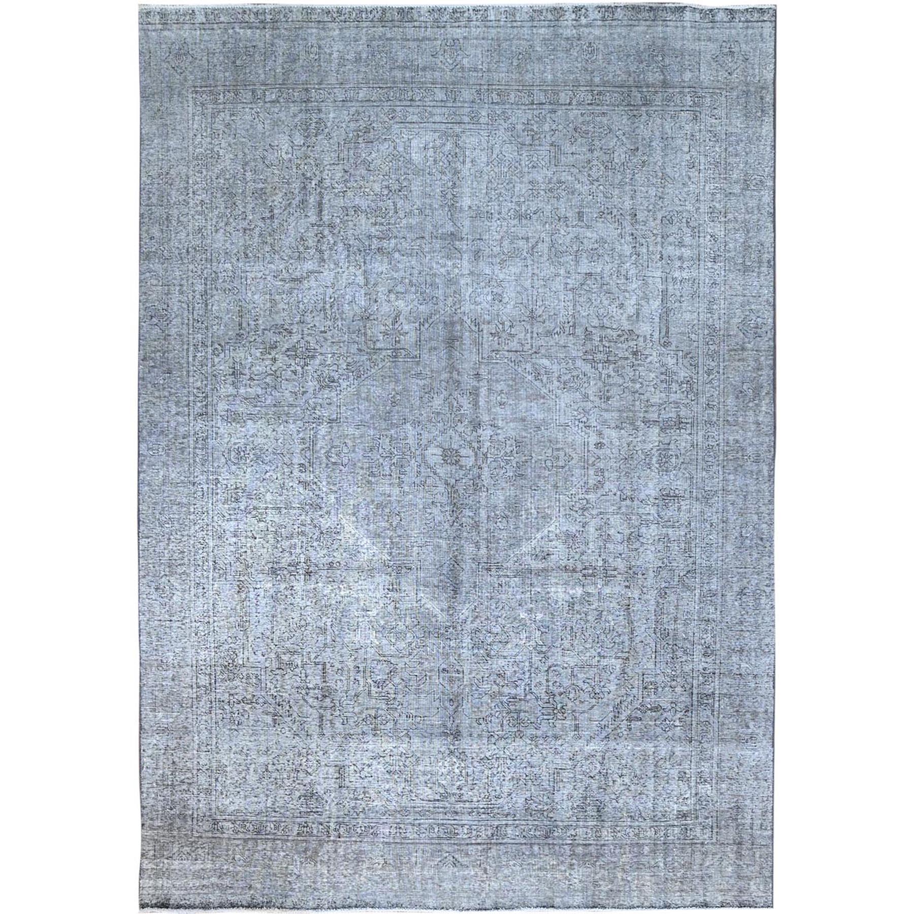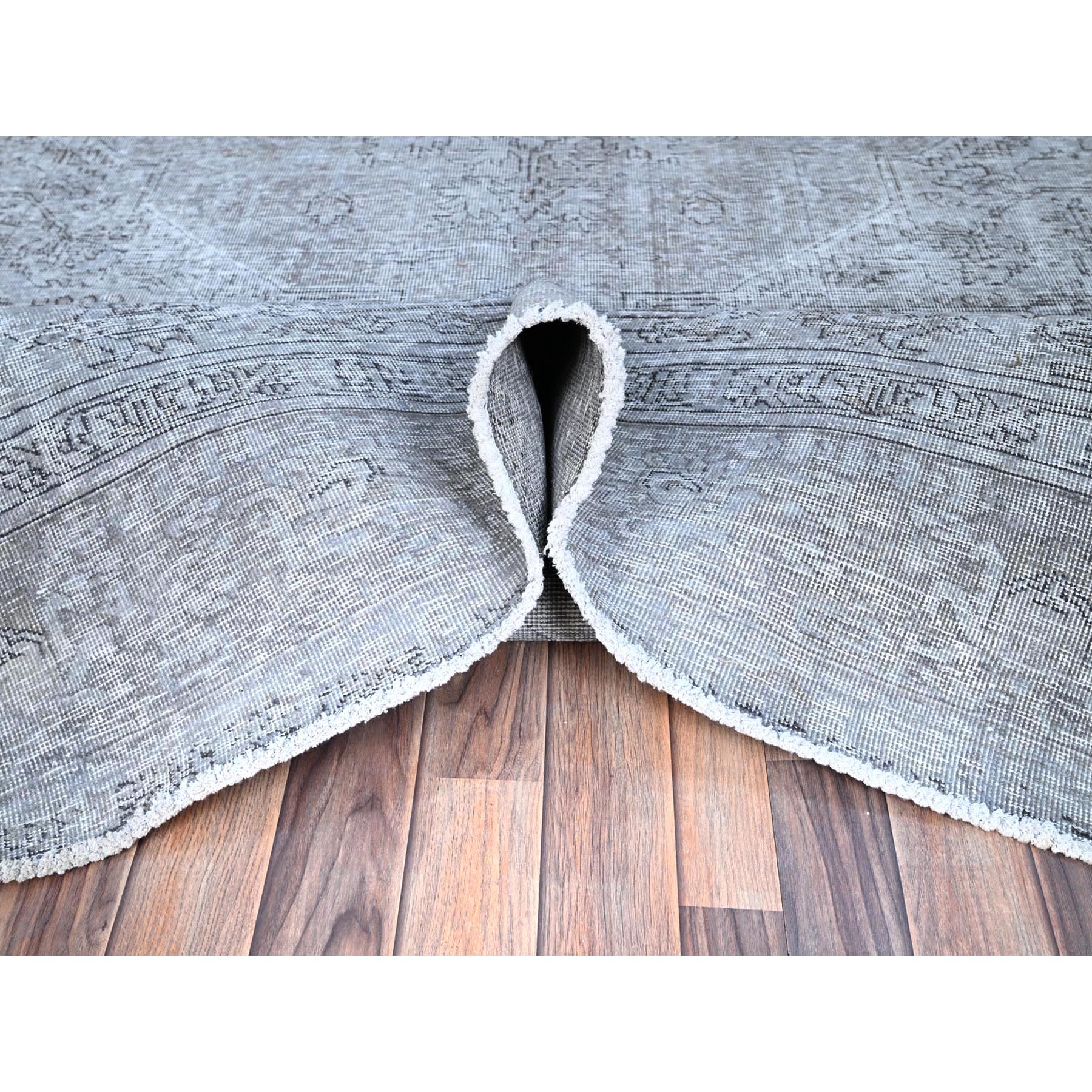 8'10"x12'4" Frost Gray, Vintage Persian Tabriz, Distressed Look, Organic Wool, Cropped Thin, Sides And Ends Professionally Secured And Cleaned, Sheared Low, Hand Knotted, Oriental Rug FWR521640