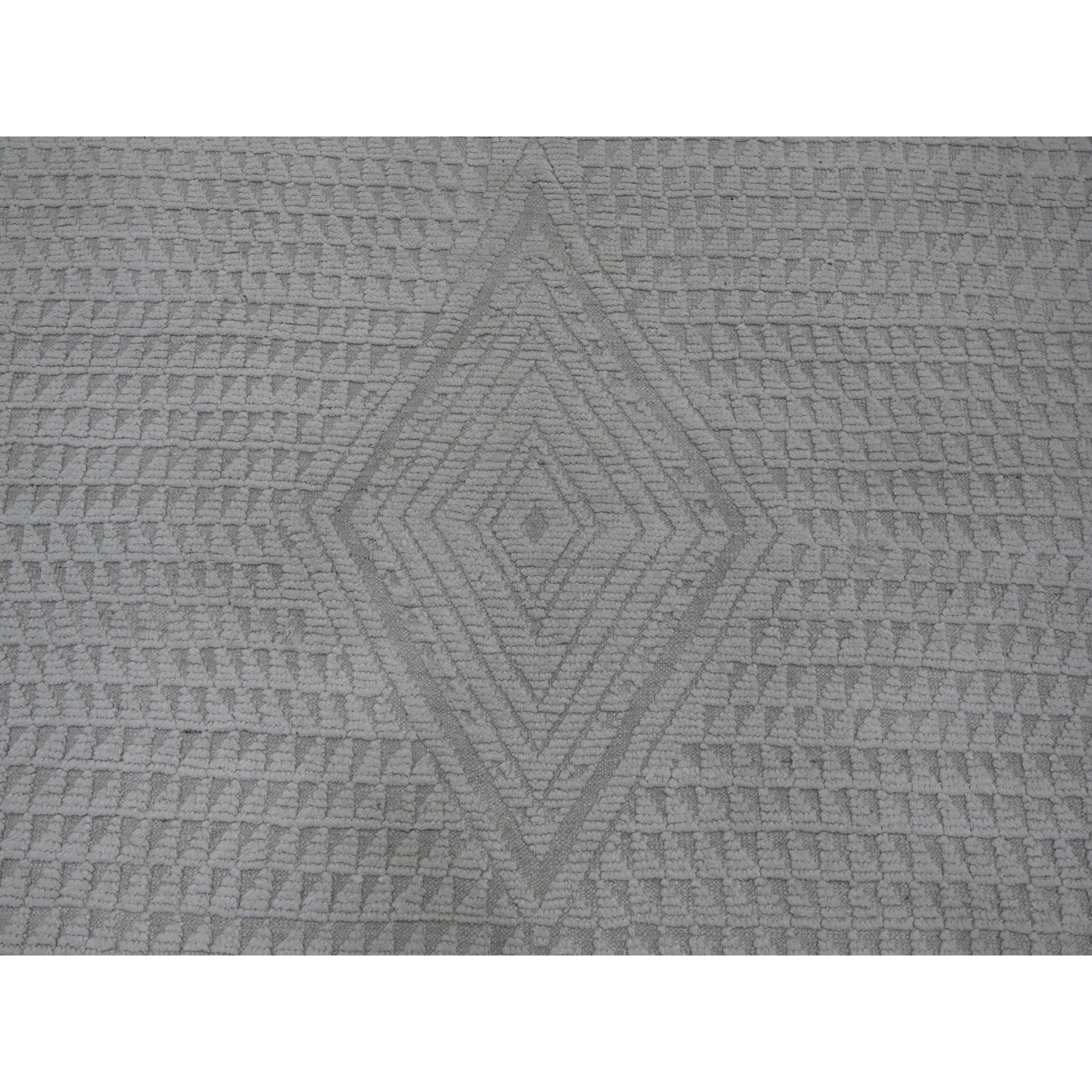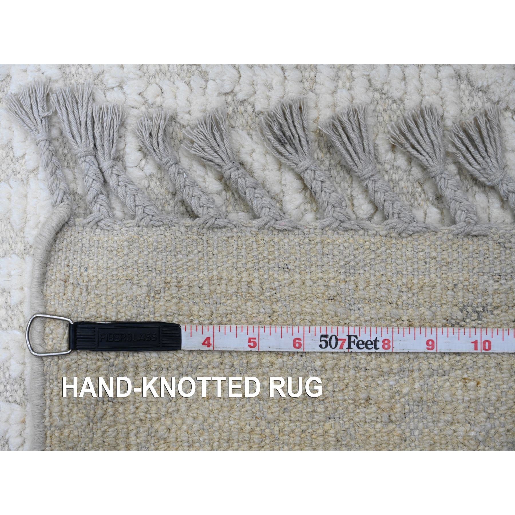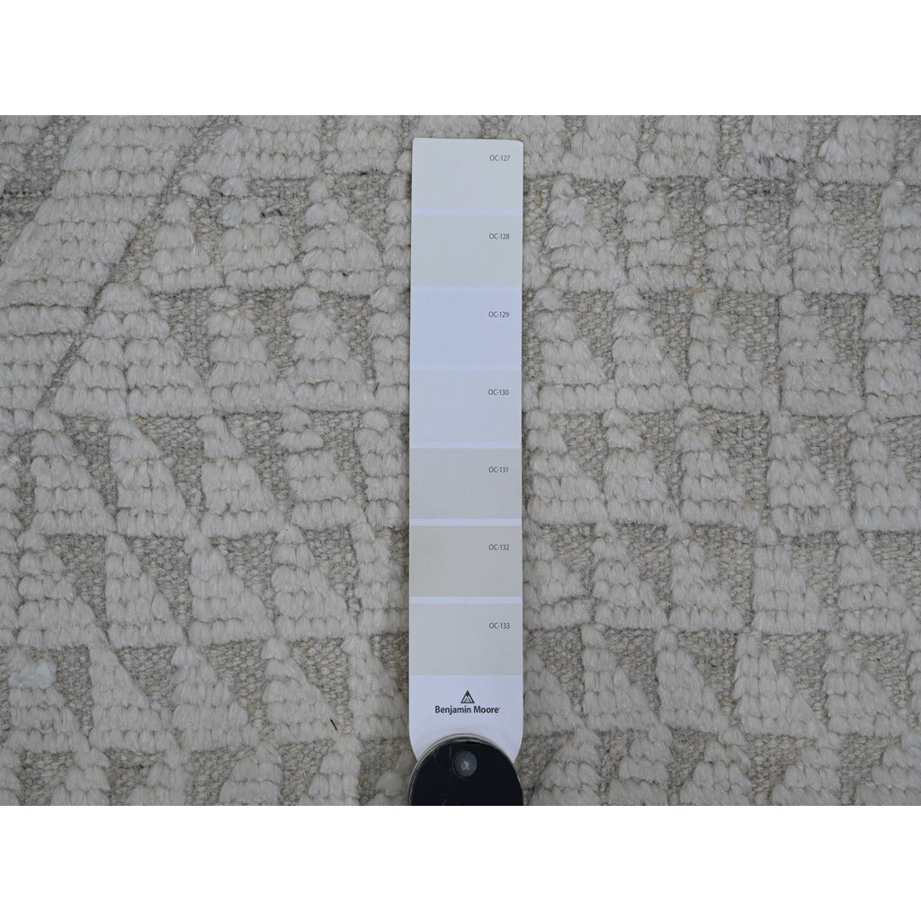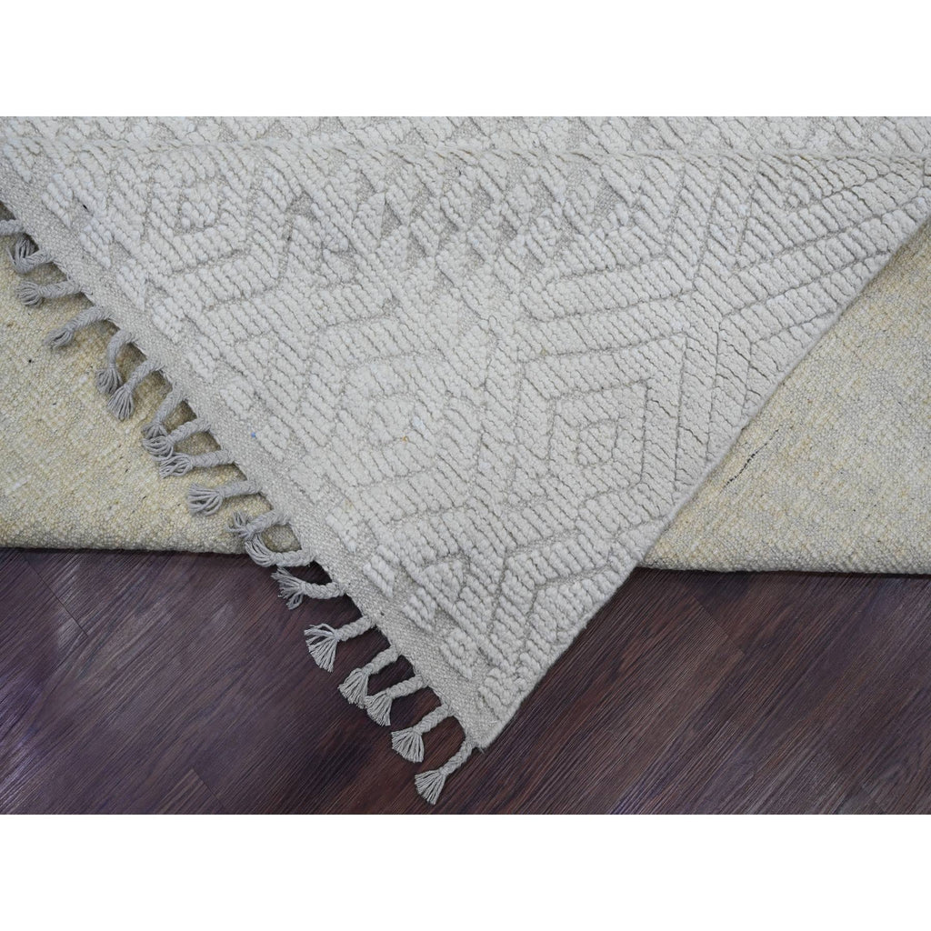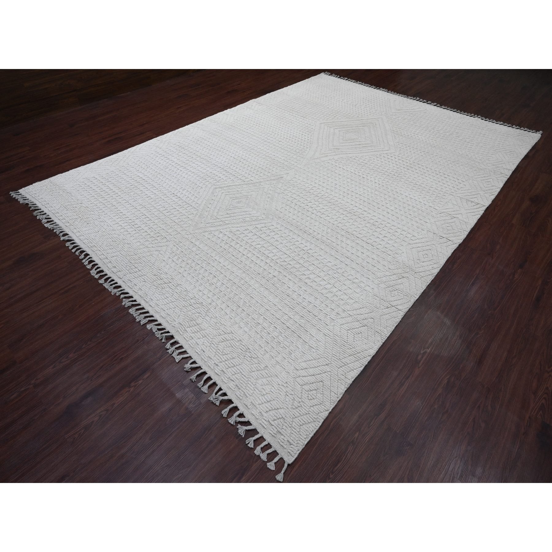 8'10"x12'8" Chiffon White, Moroccan Weave With Geometric Pattern, Hand Knotted, Soft Wool, Tone On Tone, Textured Pile, Oriental Rug FWR124998