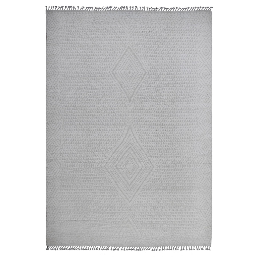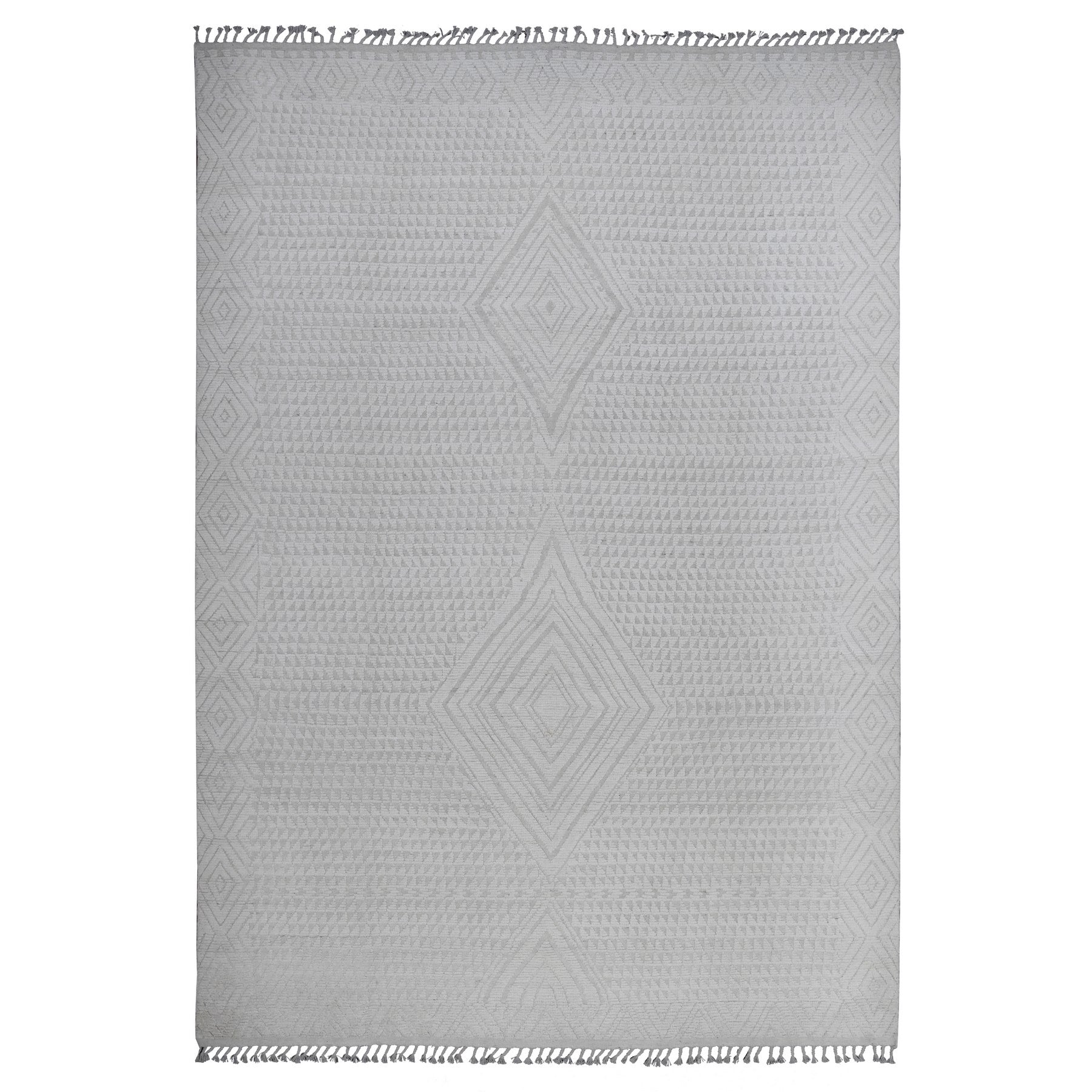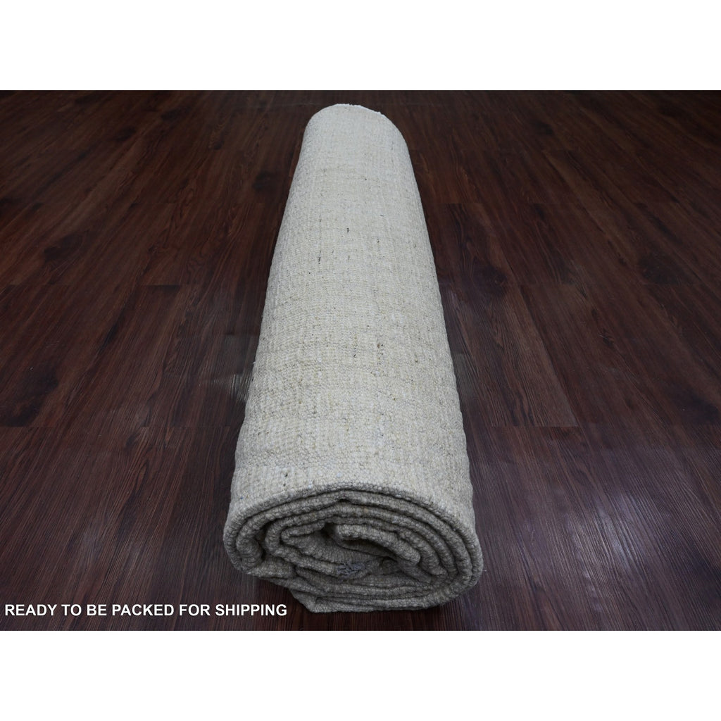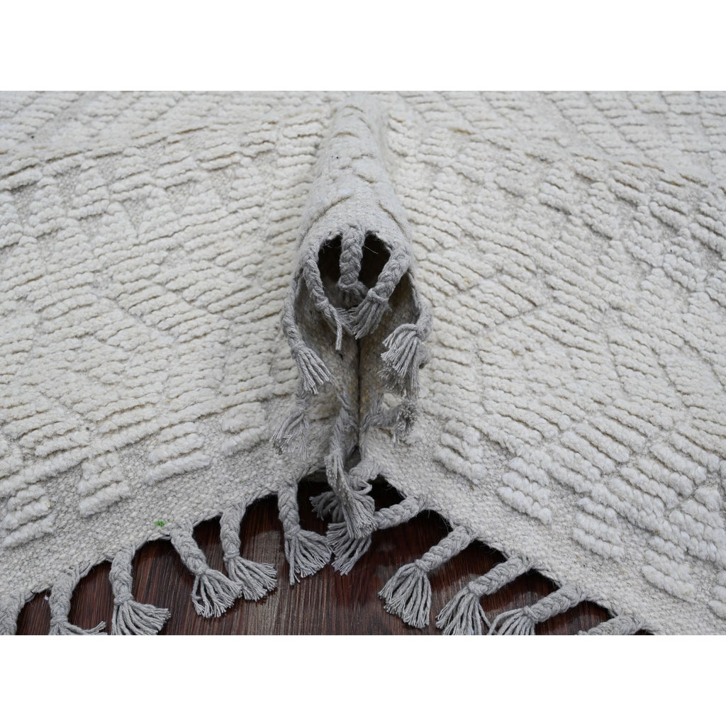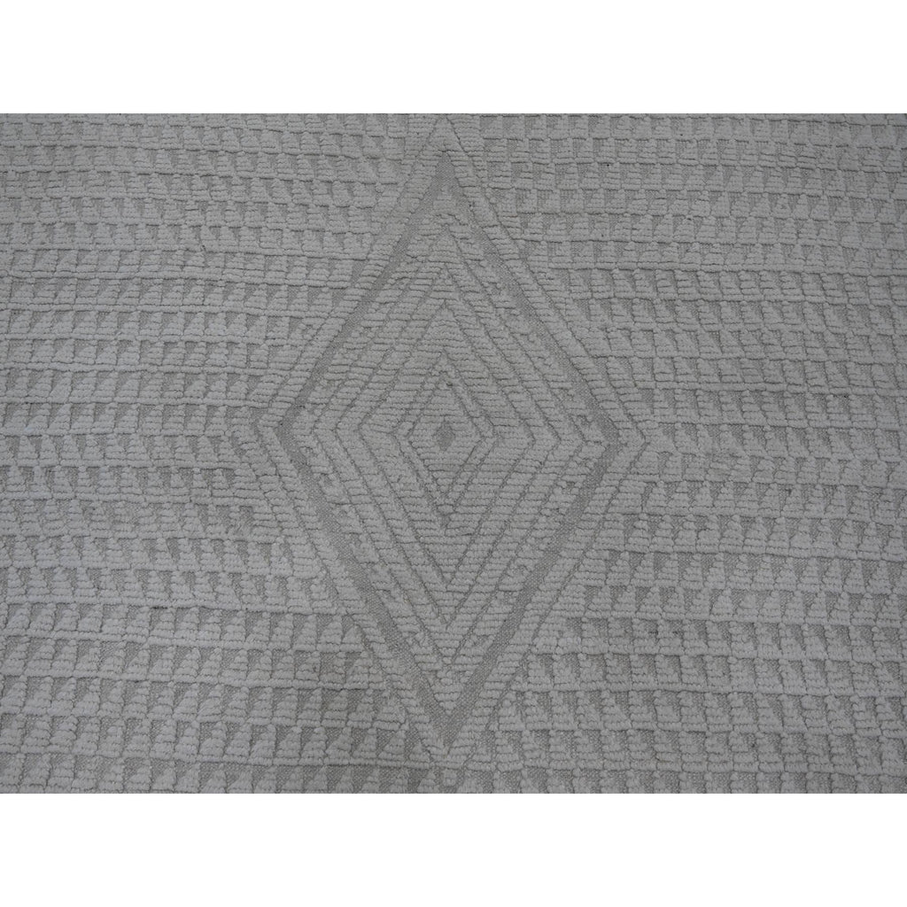 8'10"x12'8" Chiffon White, Moroccan Weave With Geometric Pattern, Hand Knotted, Soft Wool, Tone On Tone, Textured Pile, Oriental Rug FWR124998