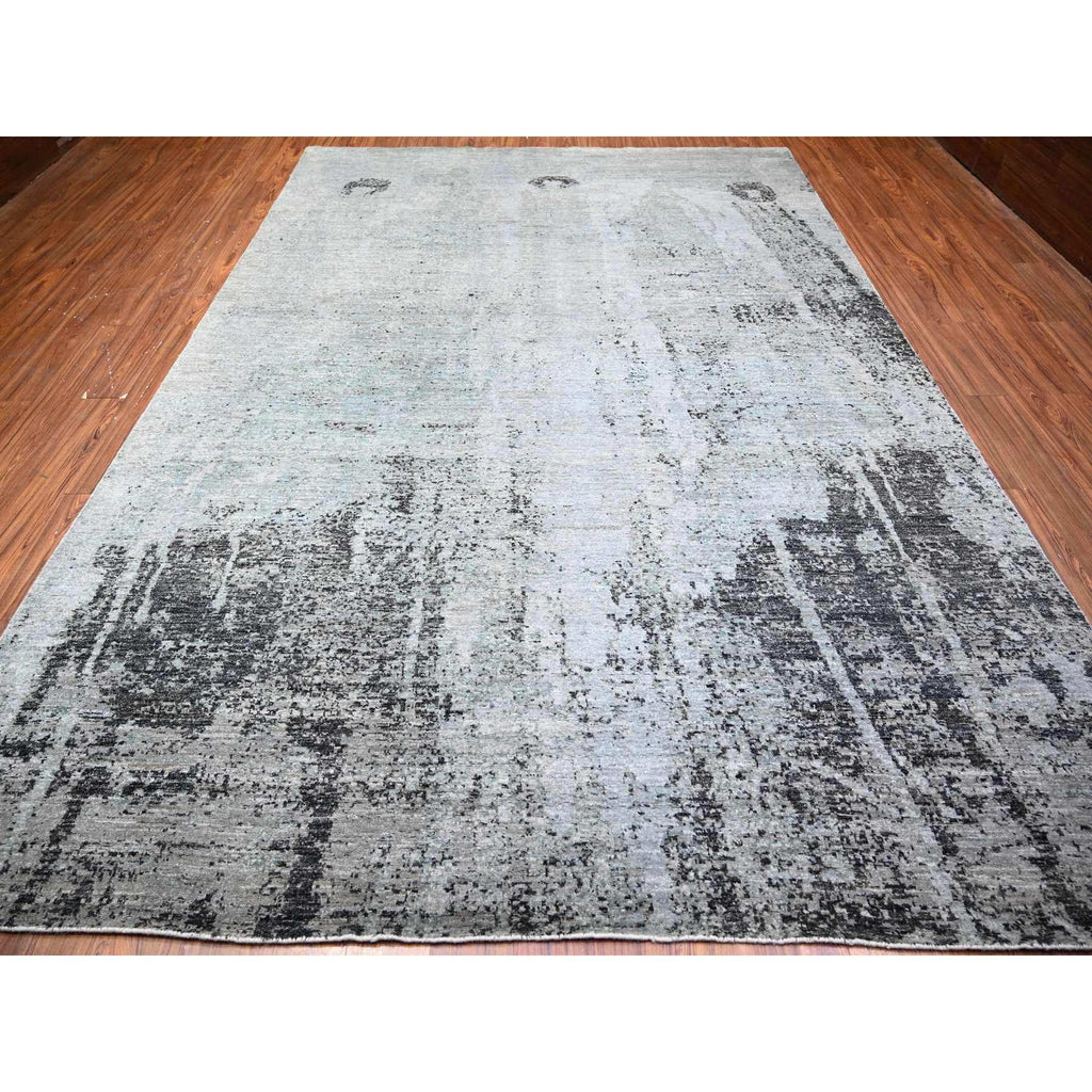 8'10"x12'9" Cloud Gray, Tone On Tone, Modern Galaxy Design, Pure Wool, Hand Knotted, Oriental Rug FWR447768