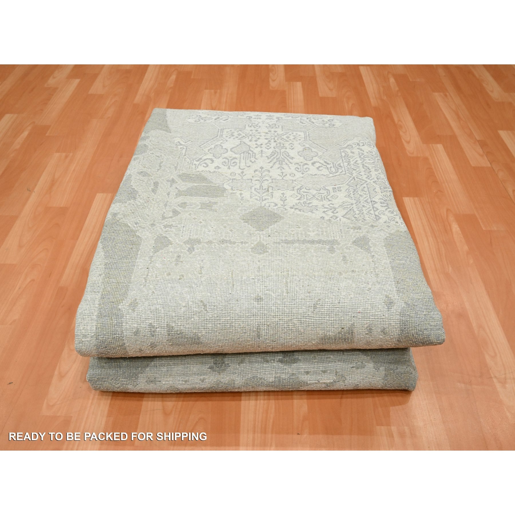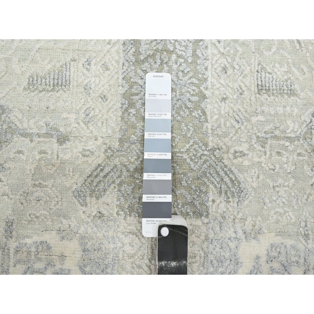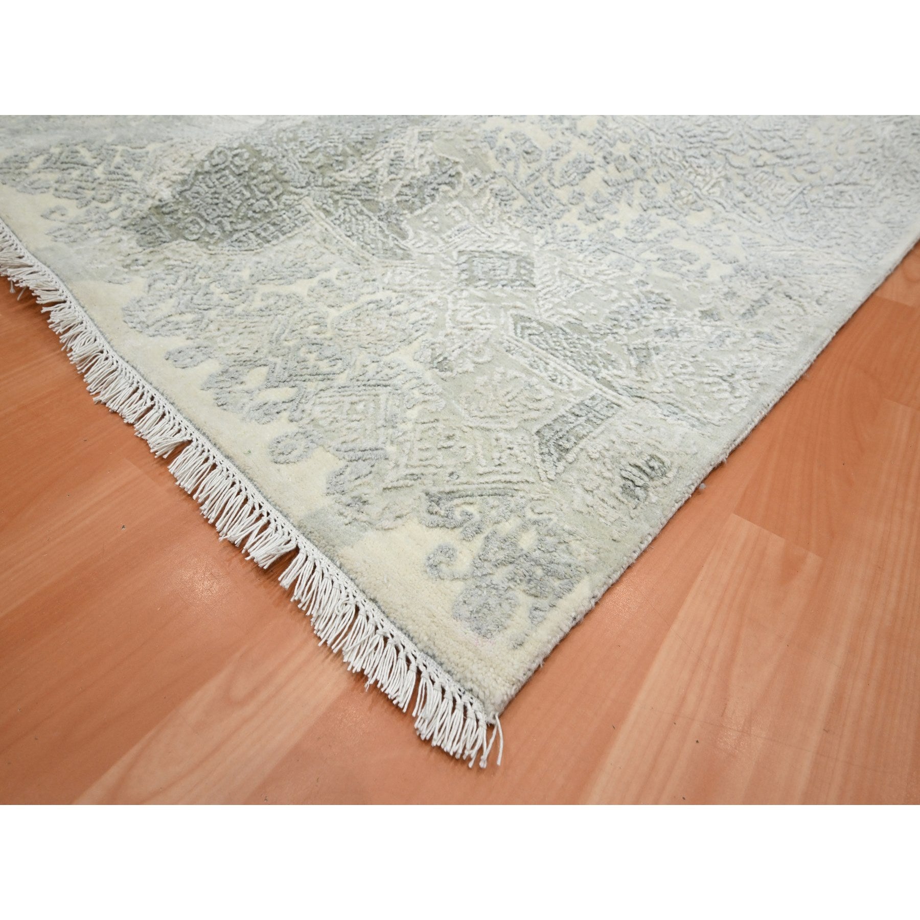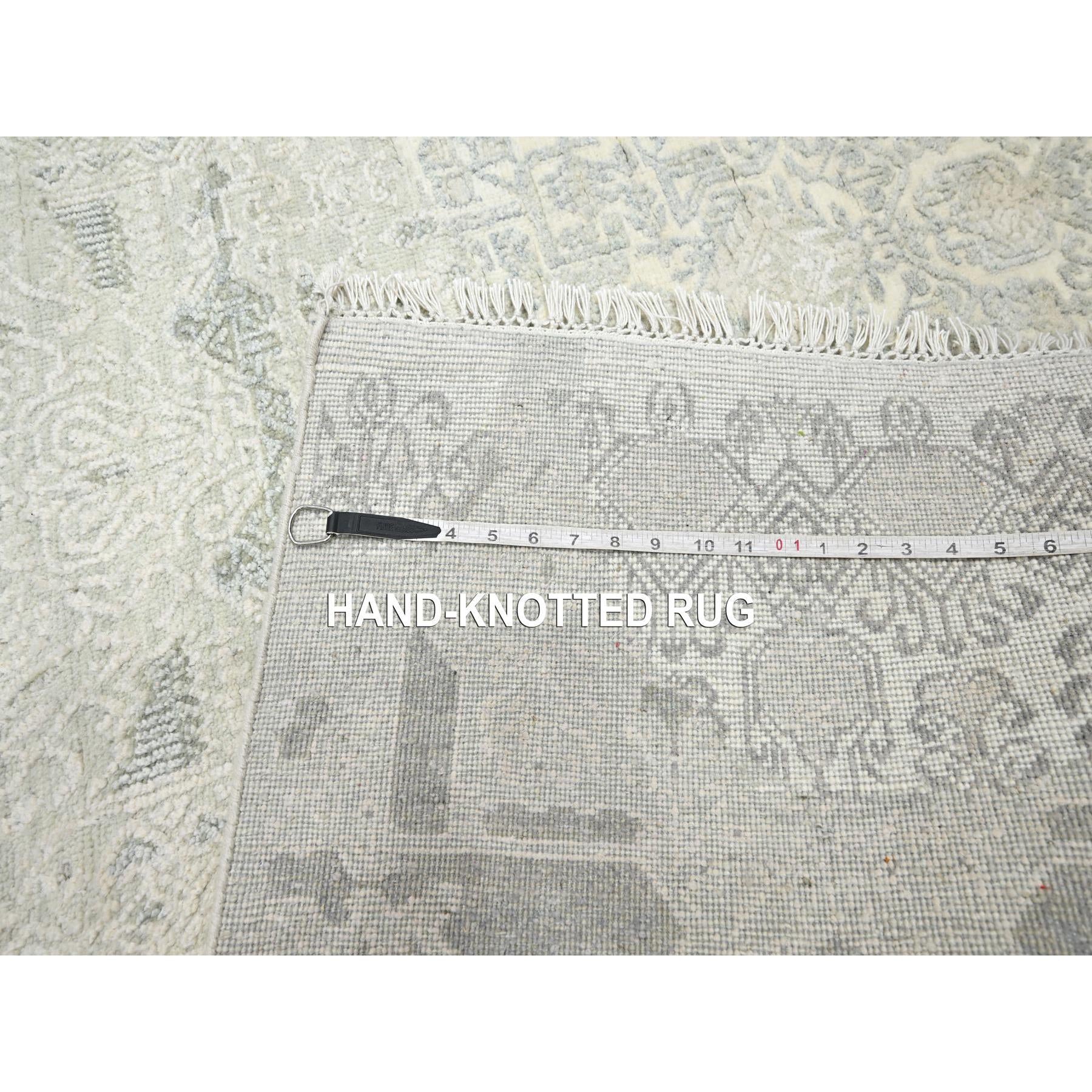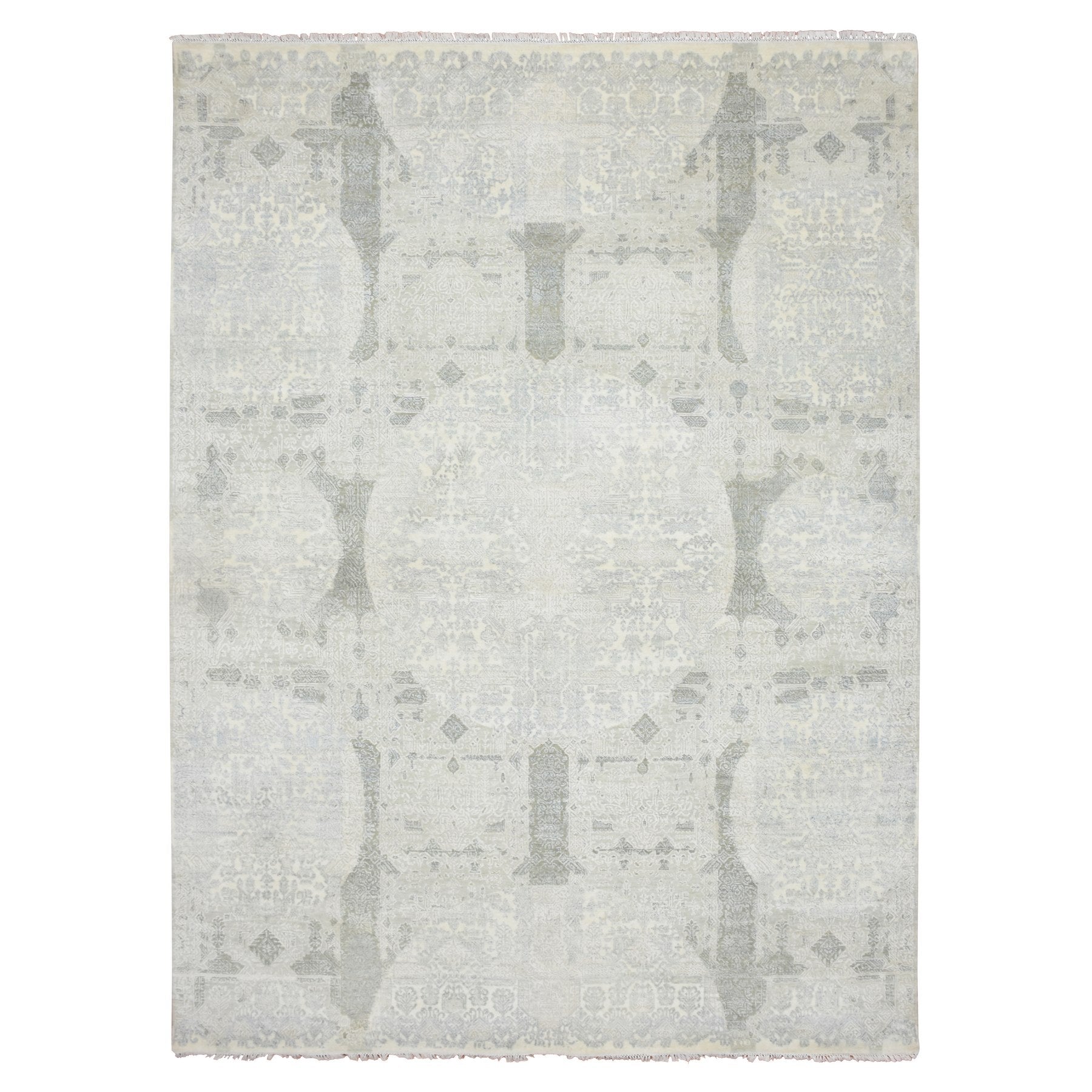 8'10"x12' Alabaster White, Jewelry Design, Wool And Silk, Hand Knotted, Densely Woven, Oriental Rug FWR454092