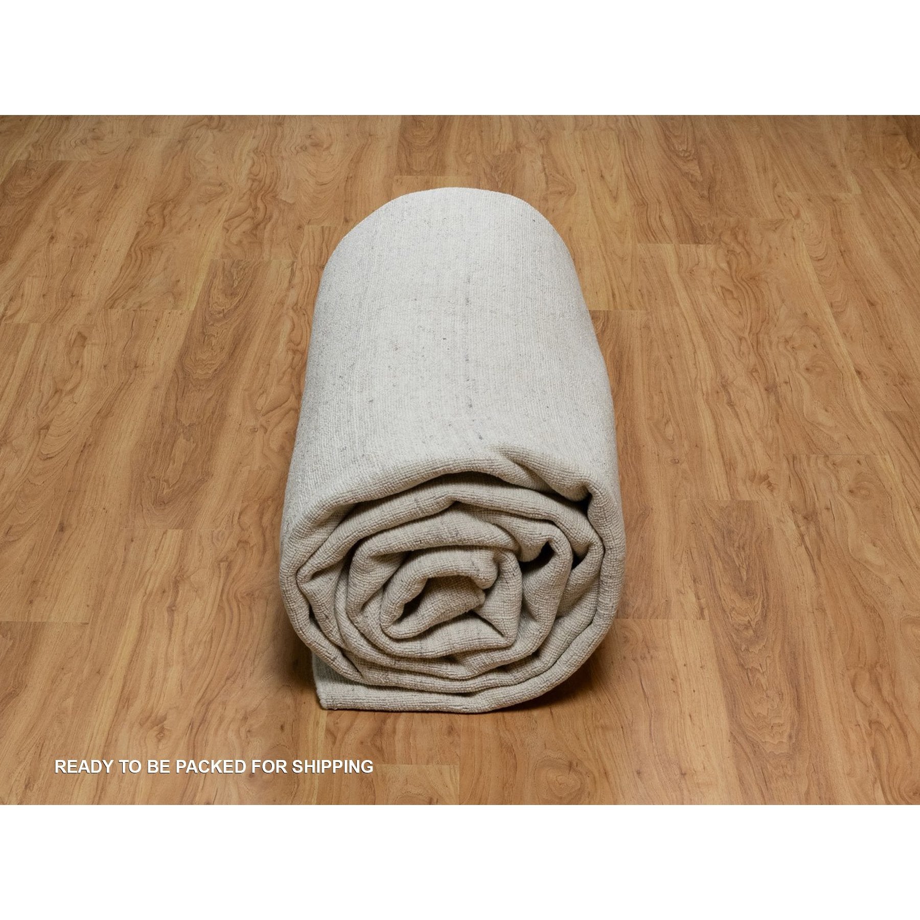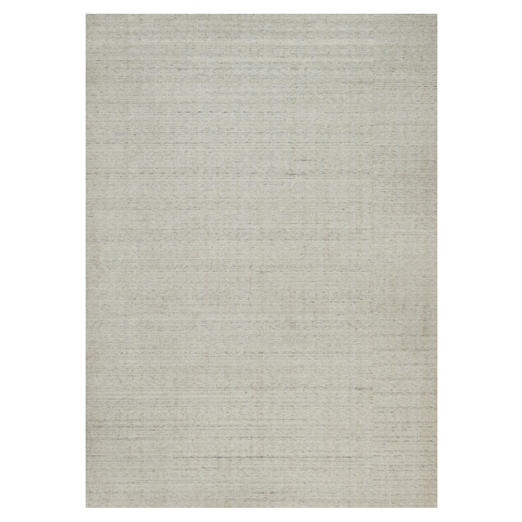 8'10"x12' Bone White, Vertical Stripes Design With Salt And Pepper Effect, Hand Loomed, Undyed Natural Wool, Oriental Rug FWR550050