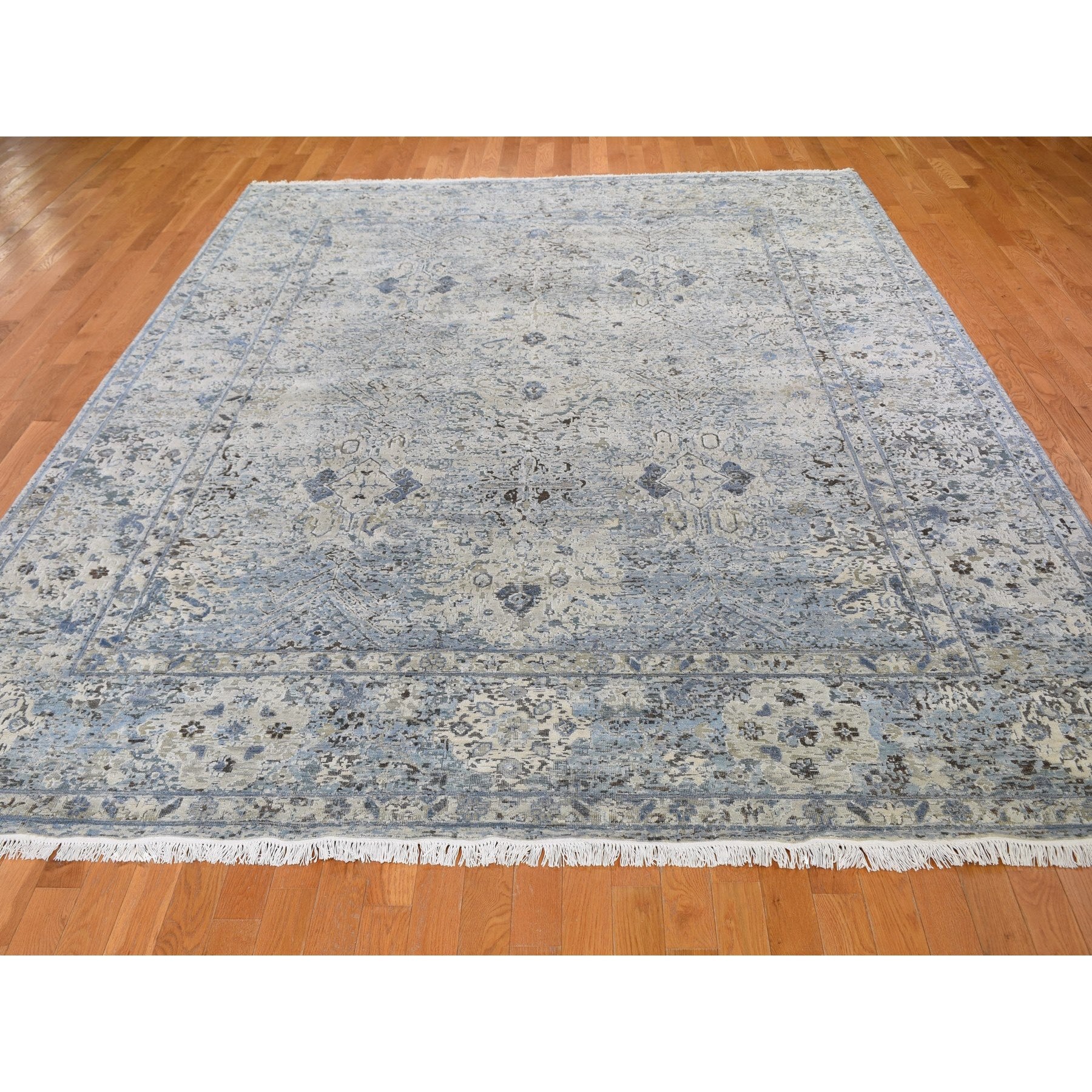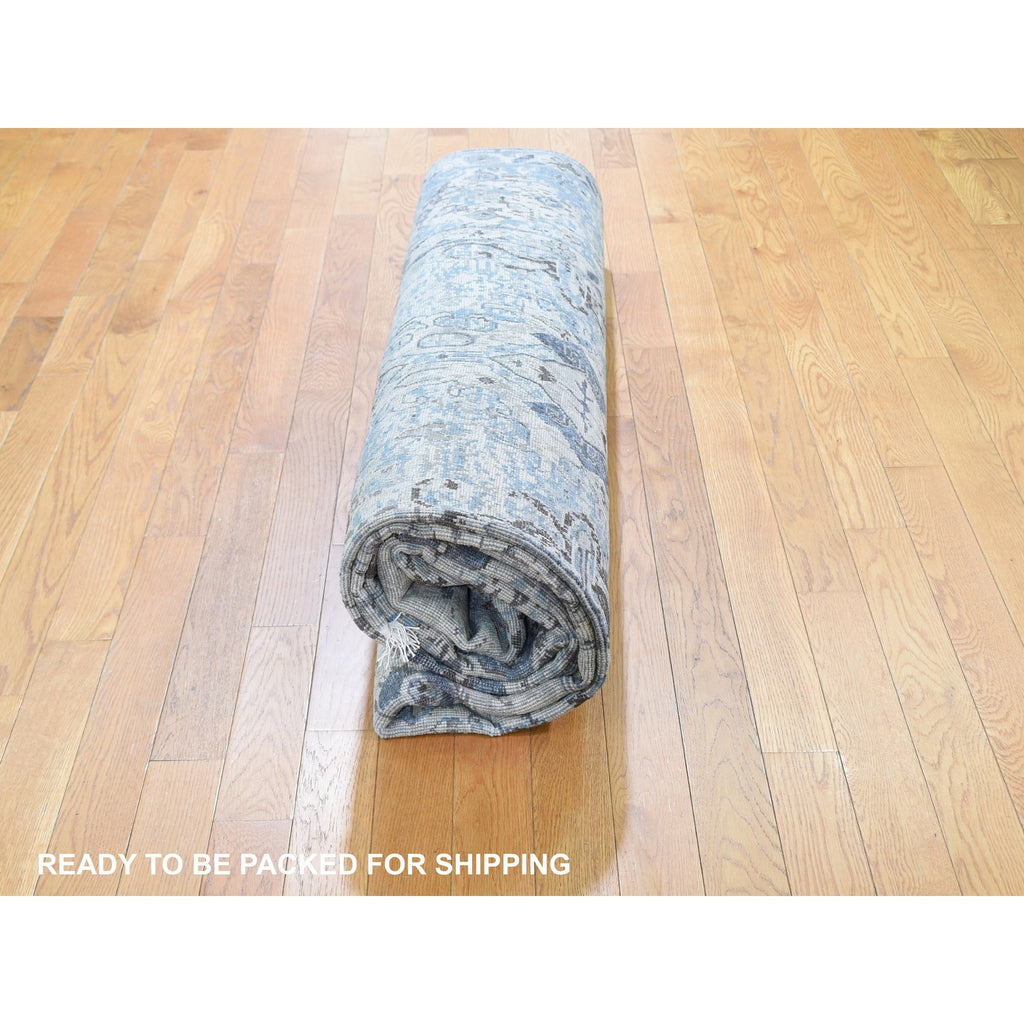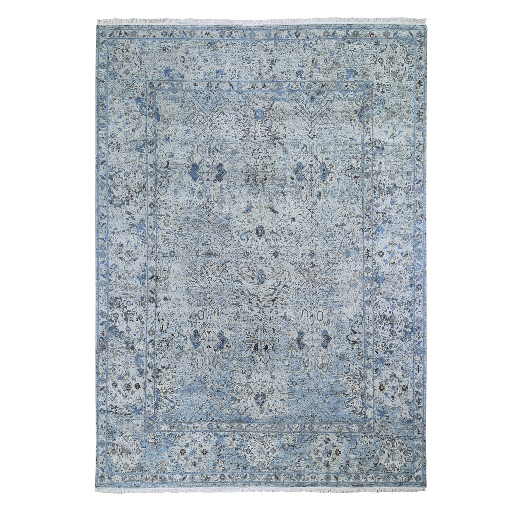 8'10"x12' Distressed Oushak Pure Silk With Textured Wool Hand Knotted Oriental Rug FWR355530