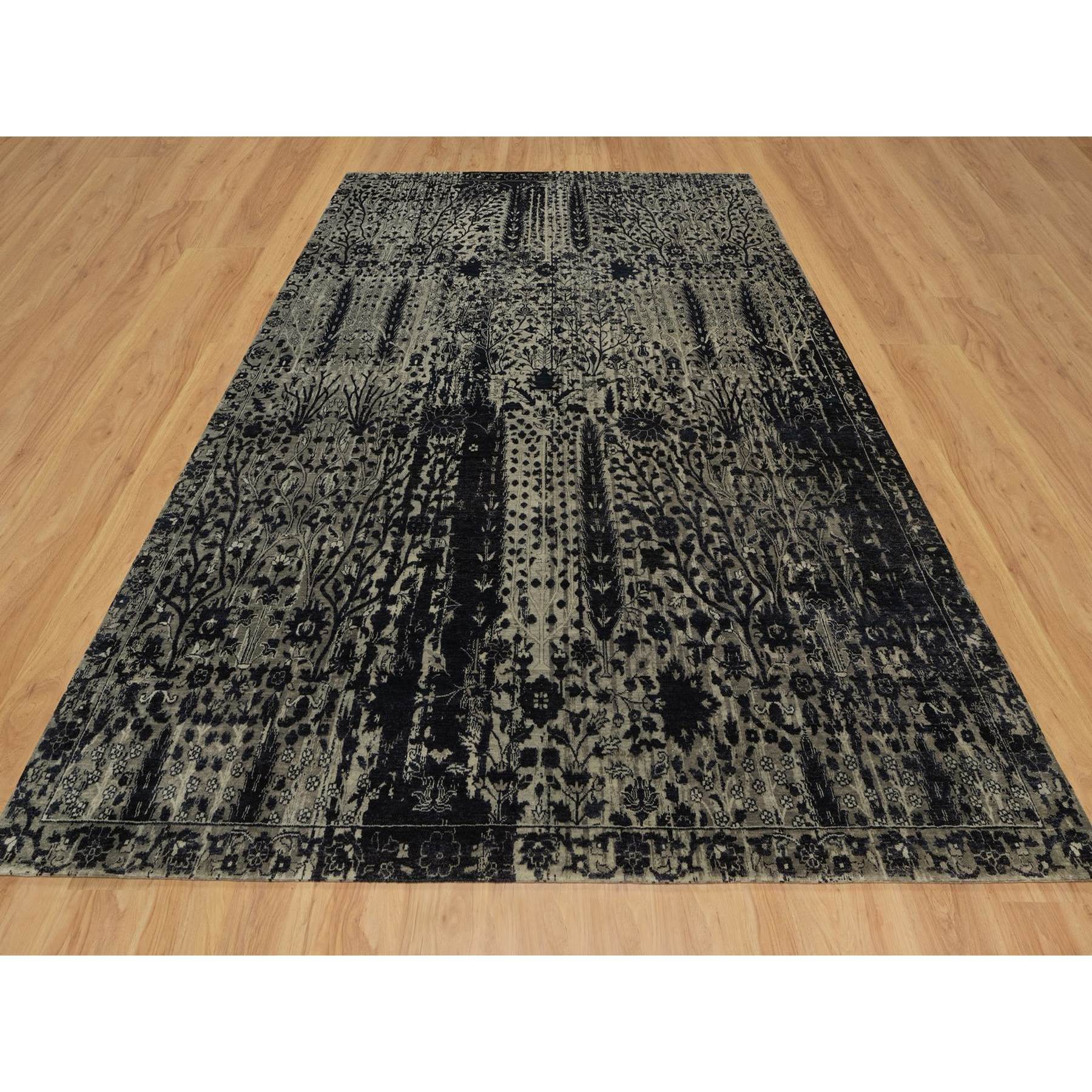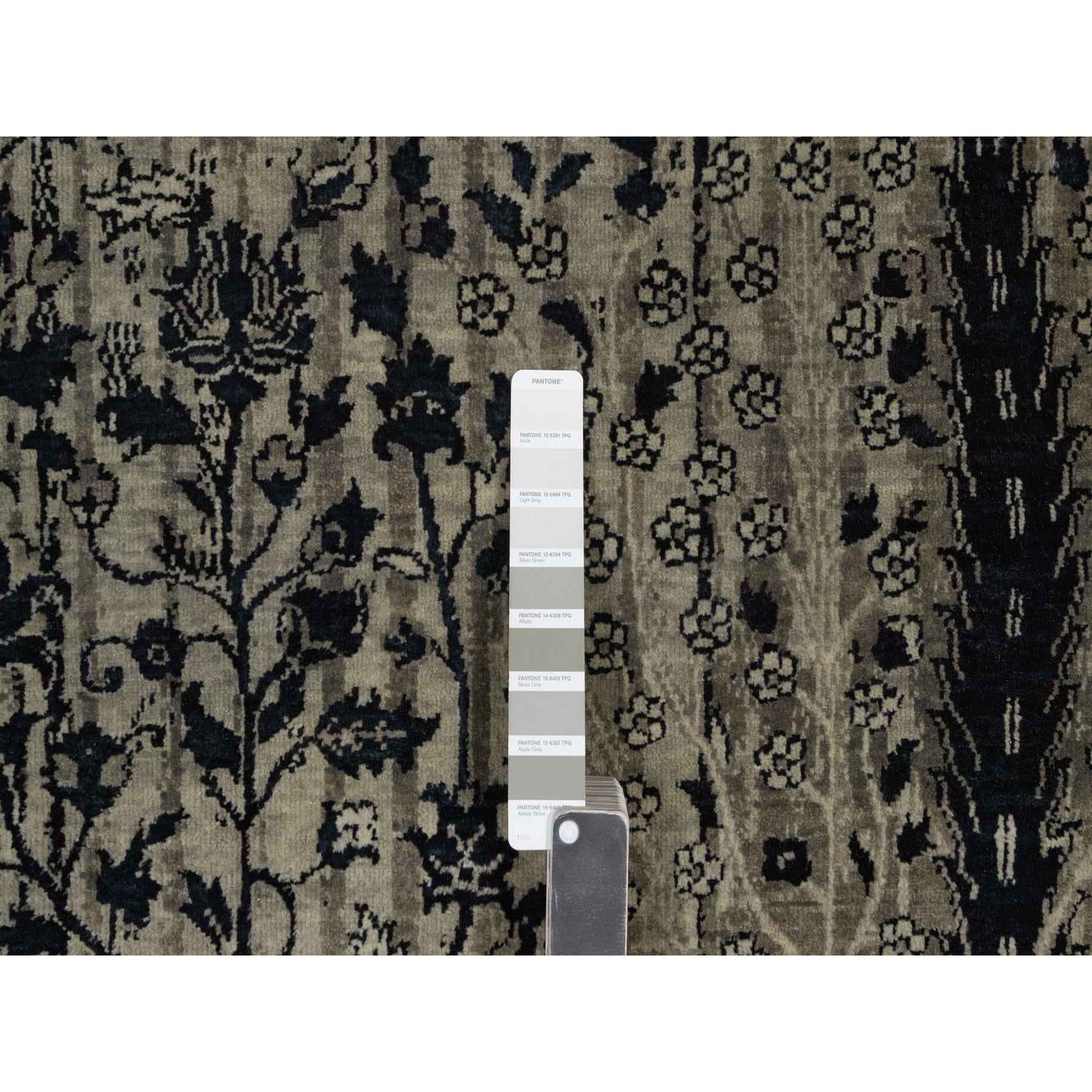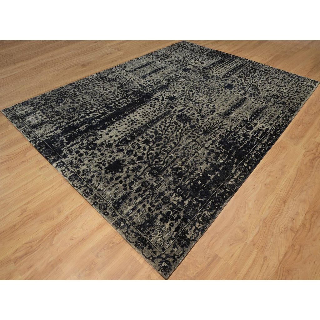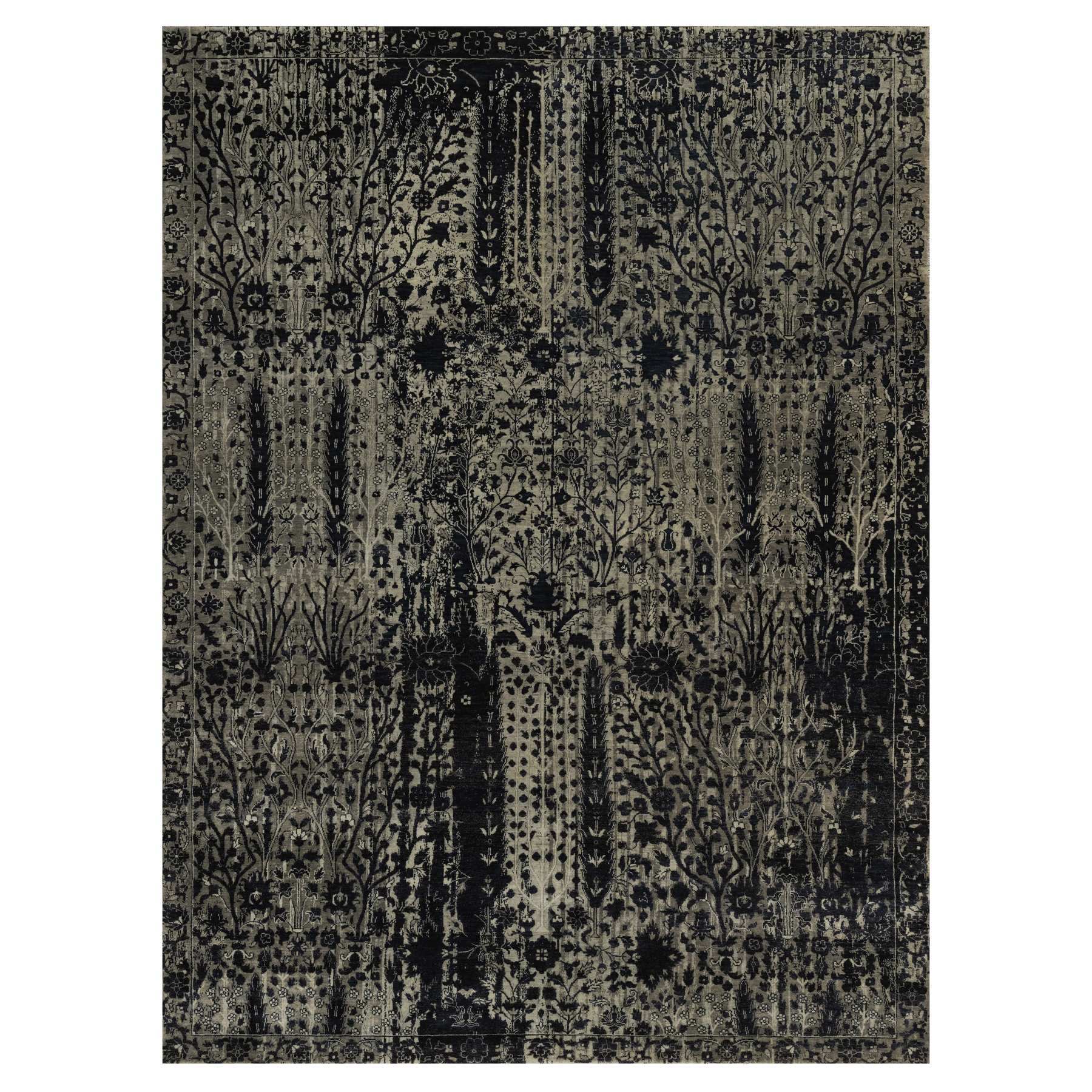 8'10"x12' Onyx Black, Broken And Erased Willow And Cypress Tree Design, 100% Ghazni Afghan Wool, Soft And Pliable, Hand Knotted, Oriental Rug FWR551352