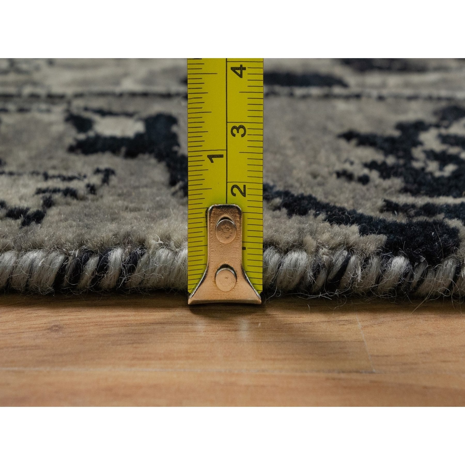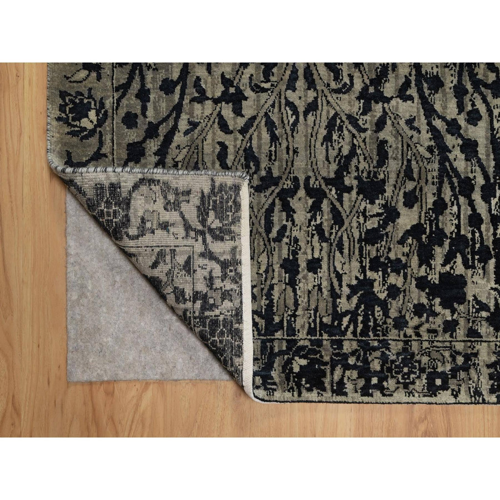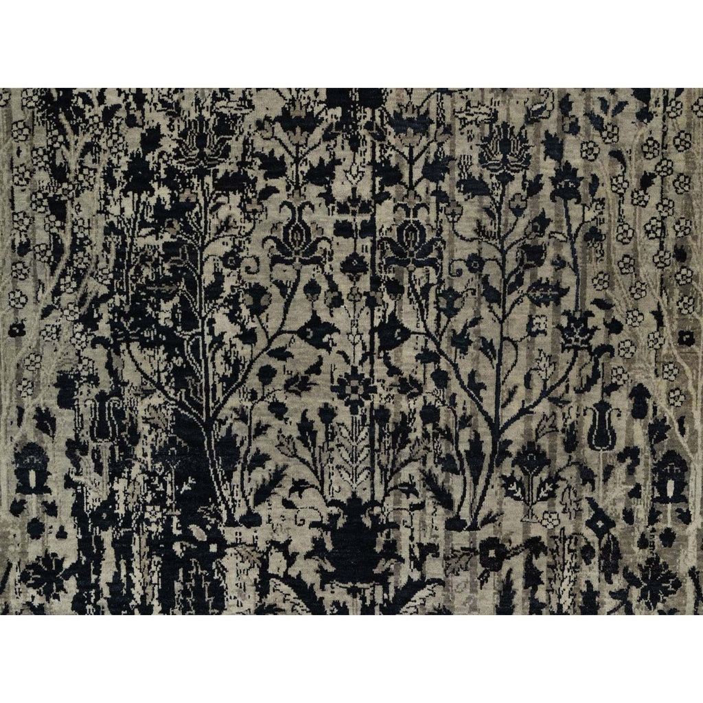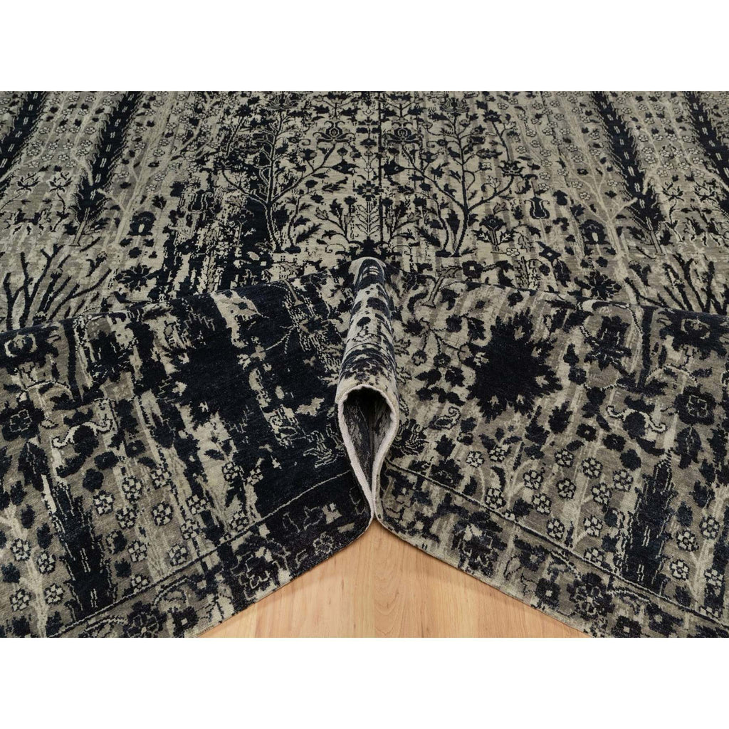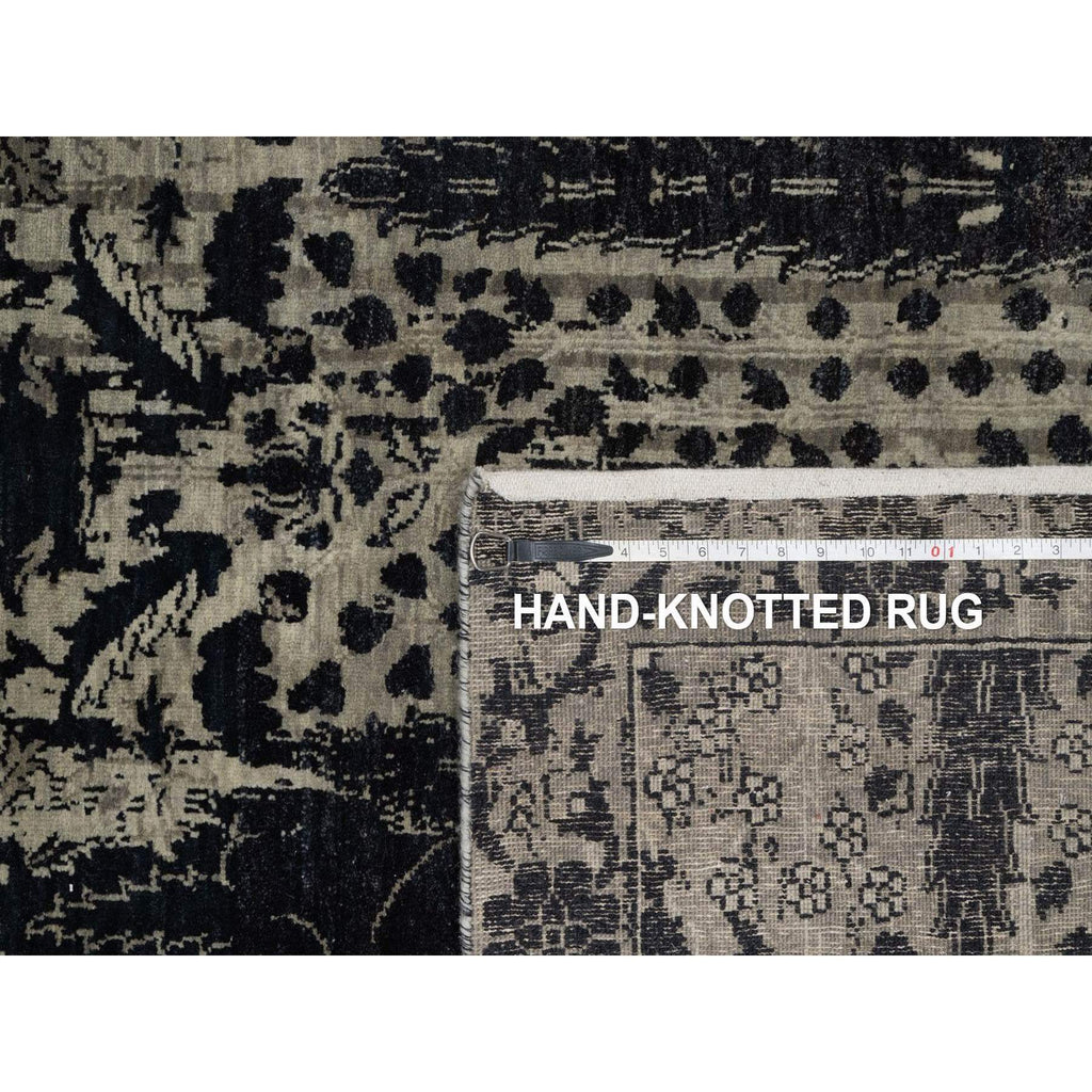 8'10"x12' Onyx Black, Broken And Erased Willow And Cypress Tree Design, 100% Ghazni Afghan Wool, Soft And Pliable, Hand Knotted, Oriental Rug FWR551352