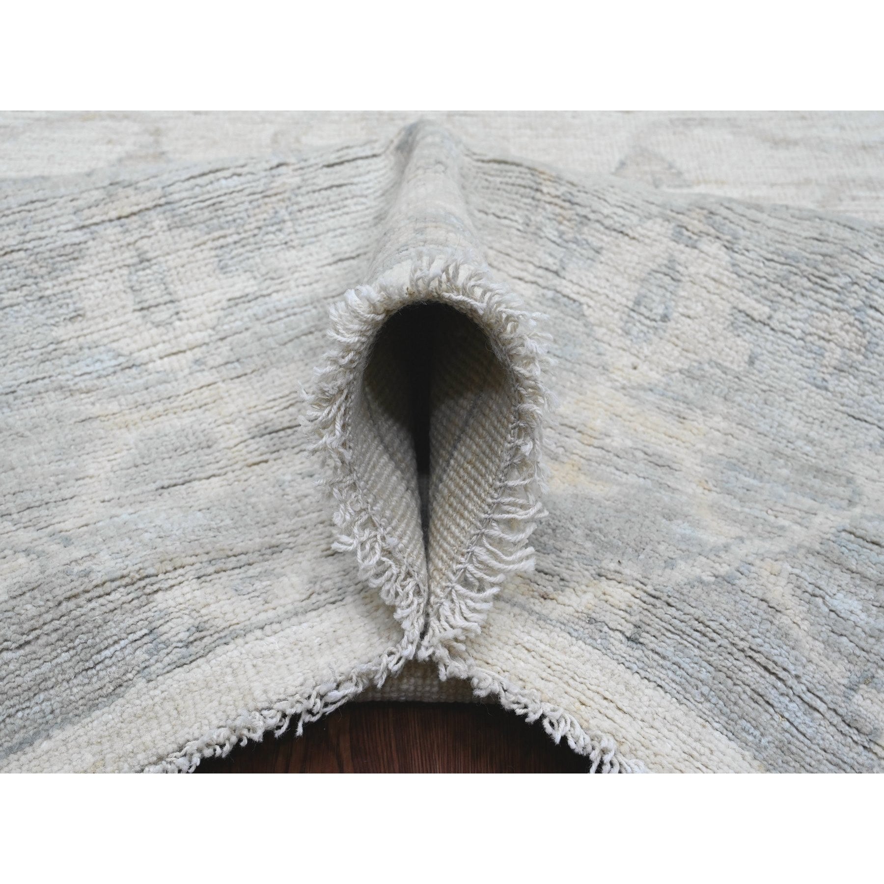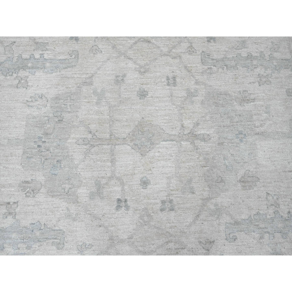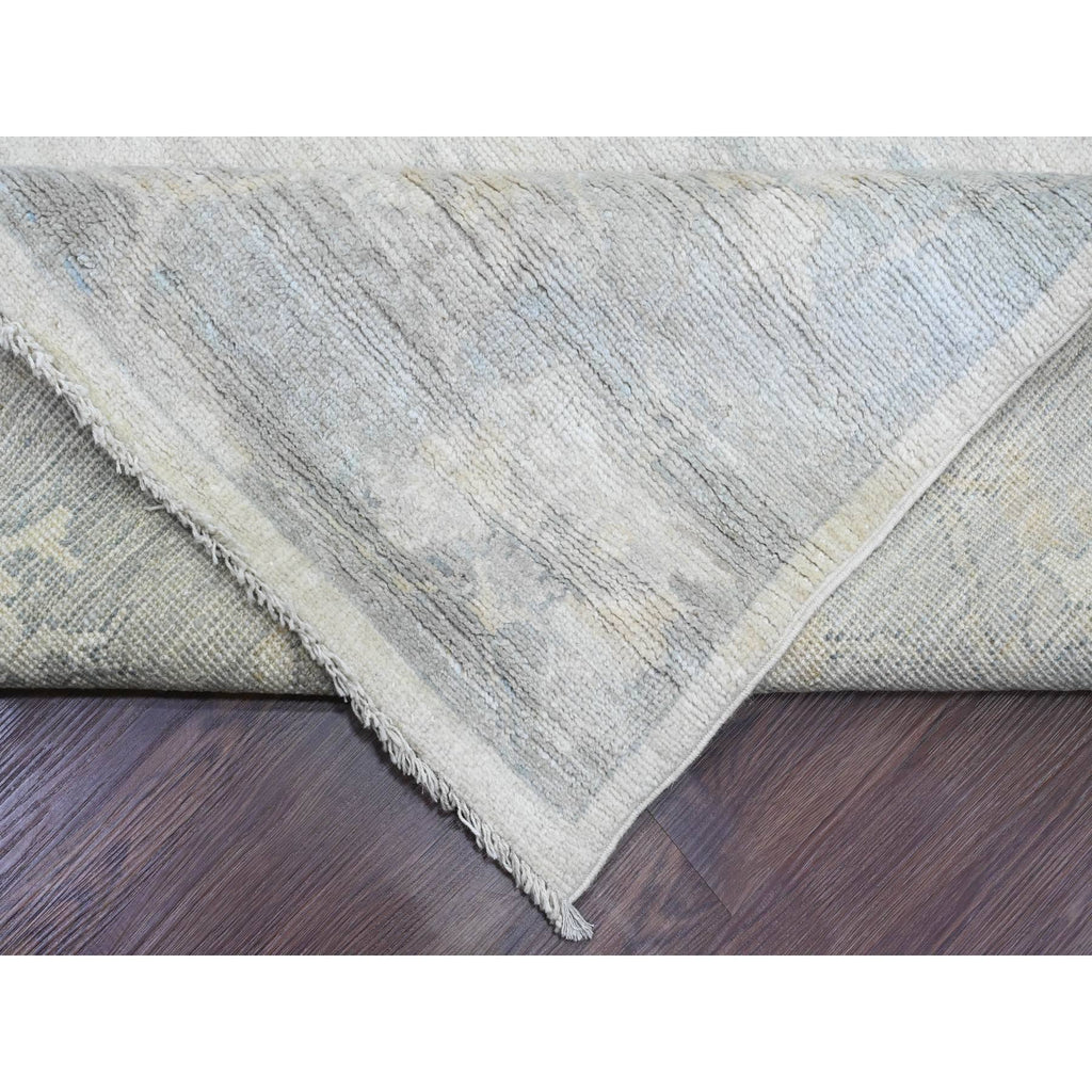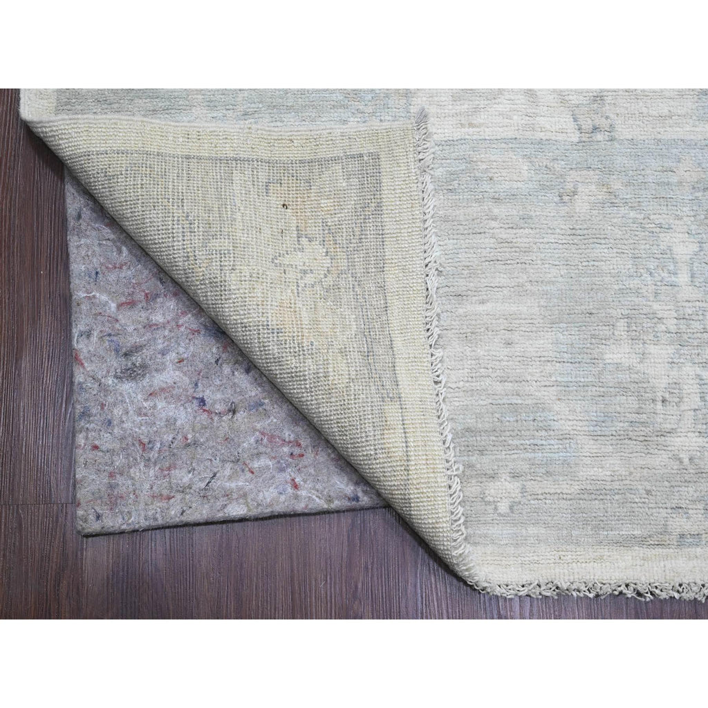 8'10"x17'4" Chiffon White, Afghan Angora Oushak With All Over Vines Design, 100% Wool, Hand Knotted, Natural Dyes, Gallery Size, Long And Narrow, Oversized, Runner, Oriental Rug FWR121584