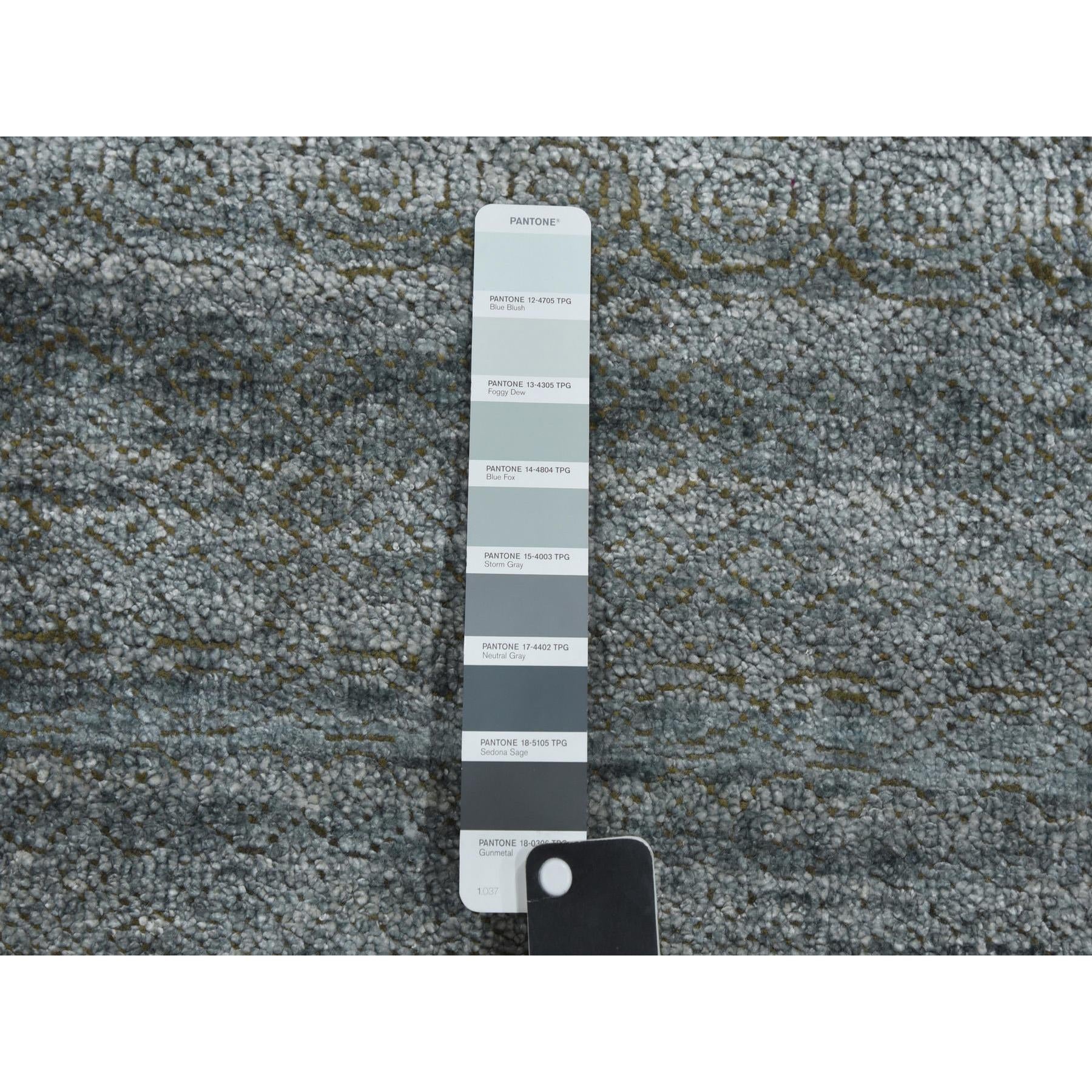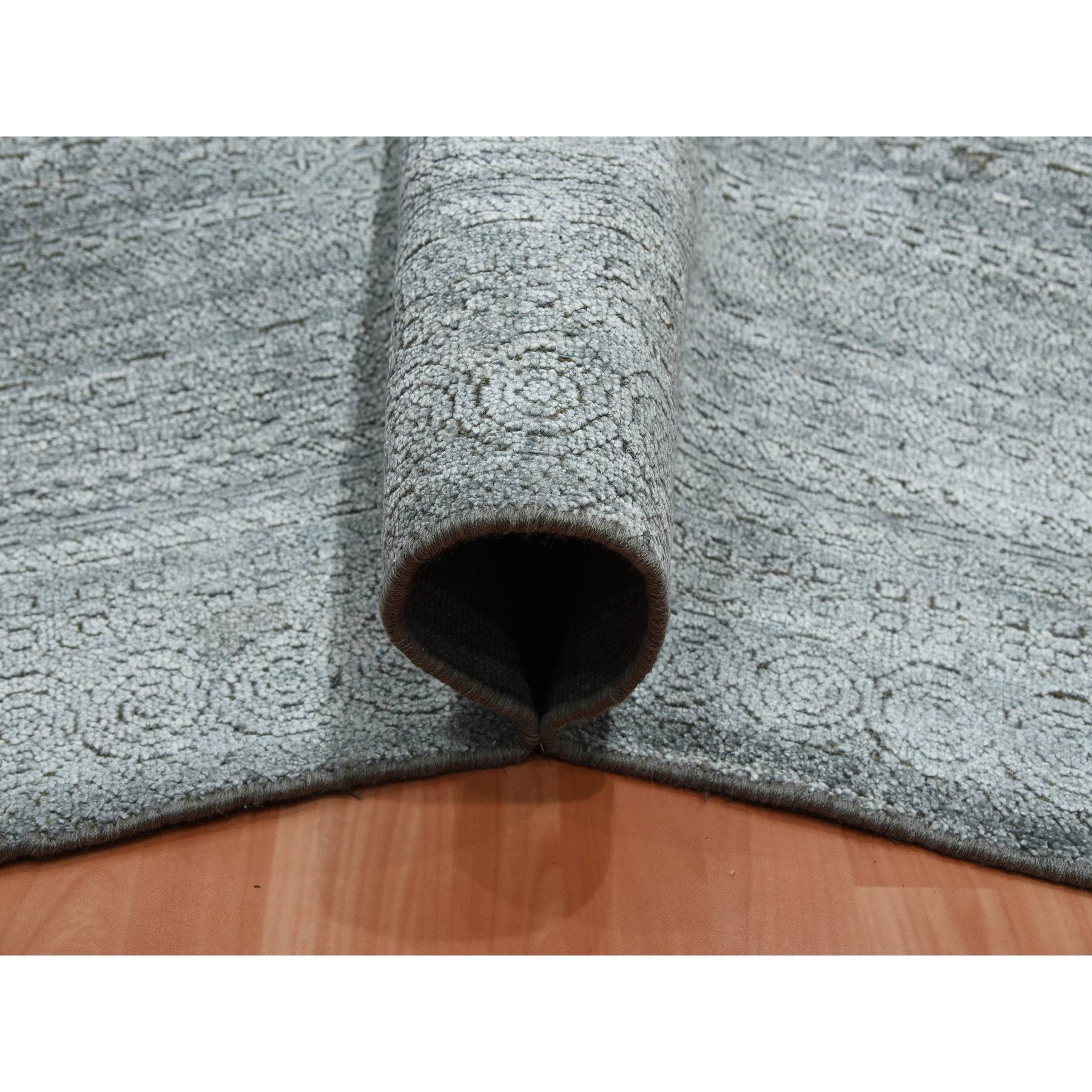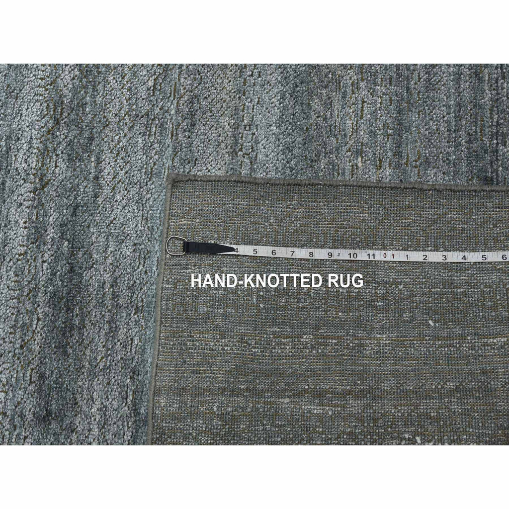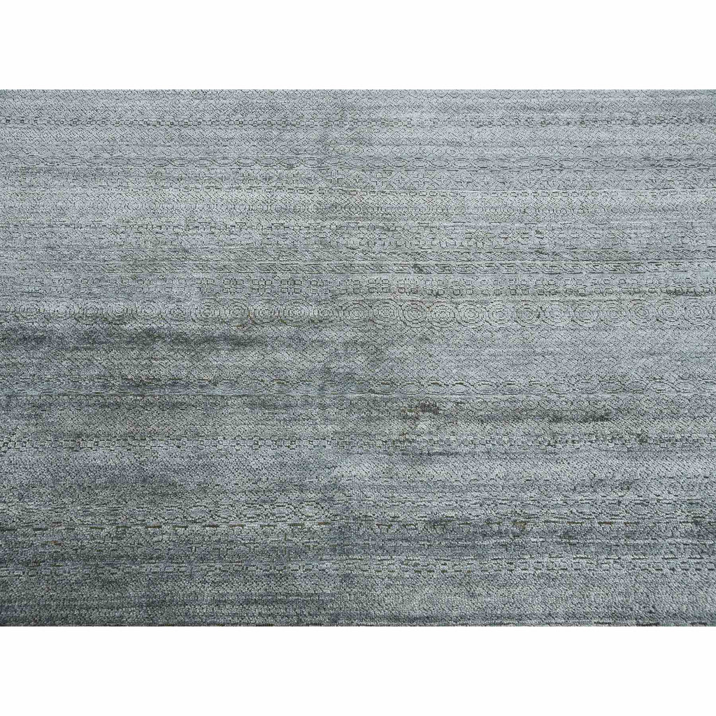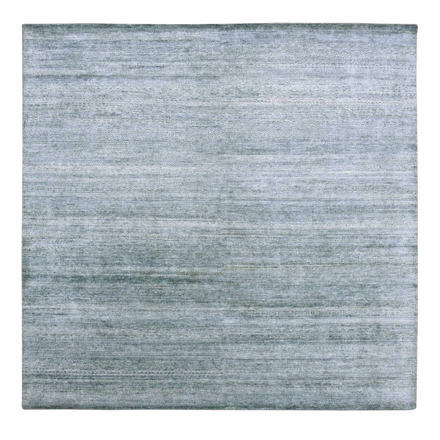 8'10"x8'10" Gray, Plant Based Silk, Transitional Design Raised Pattern Hand Knotted, Square Oriental Rug FWR451338