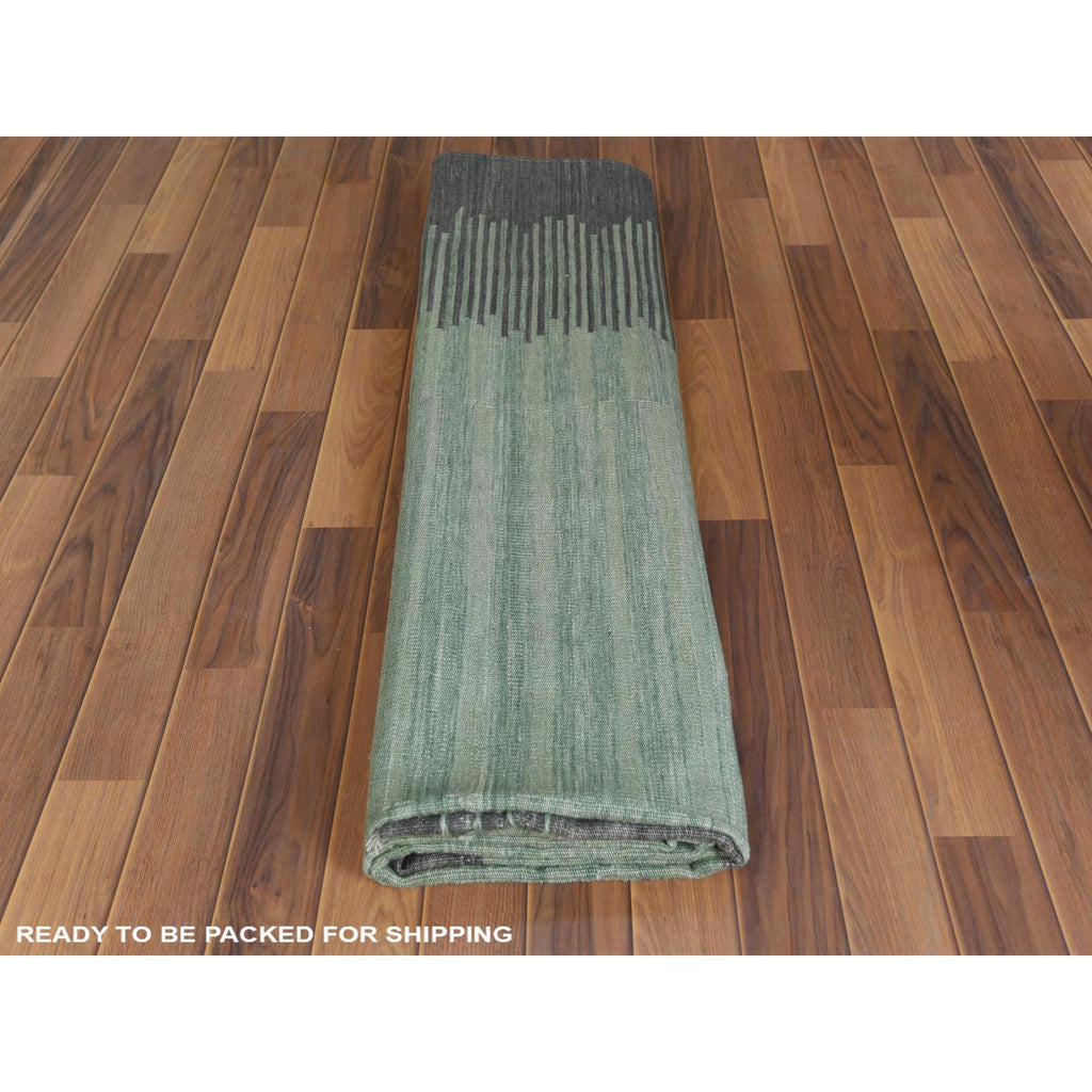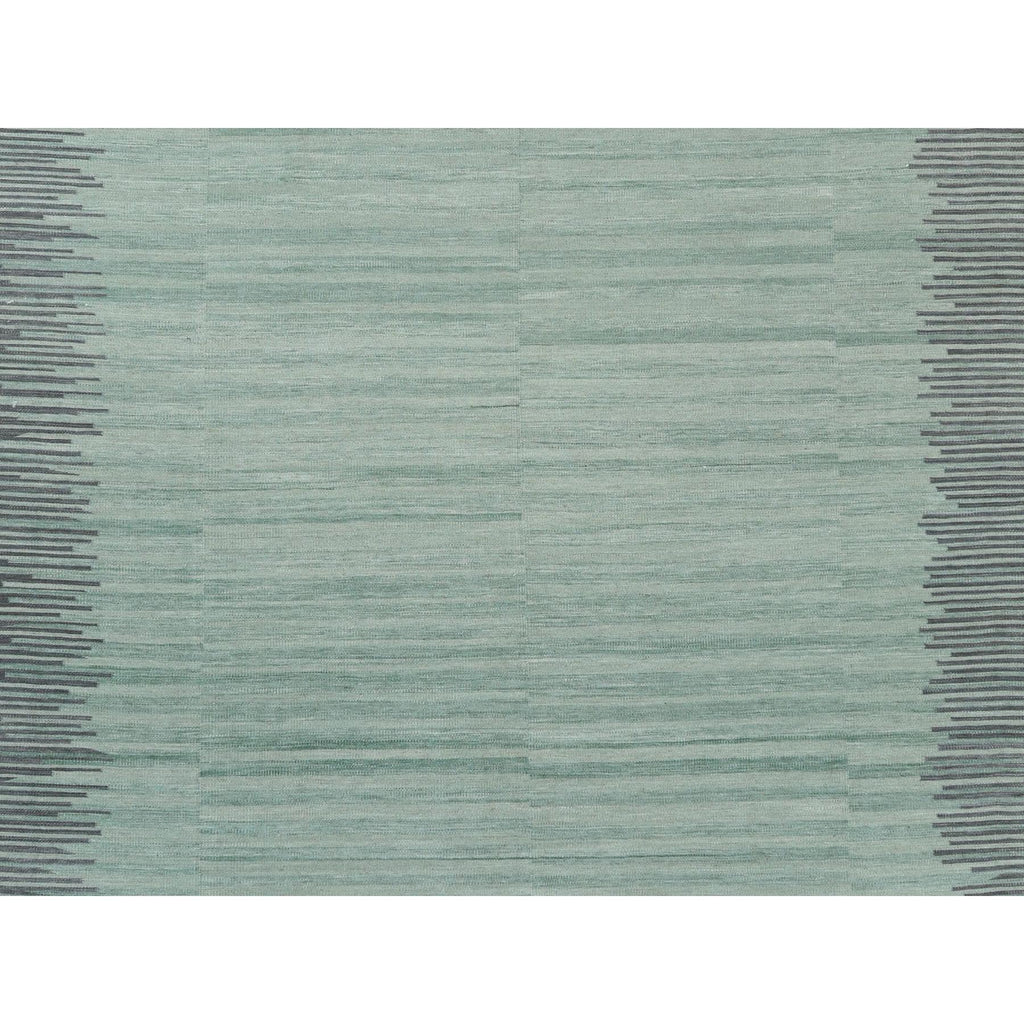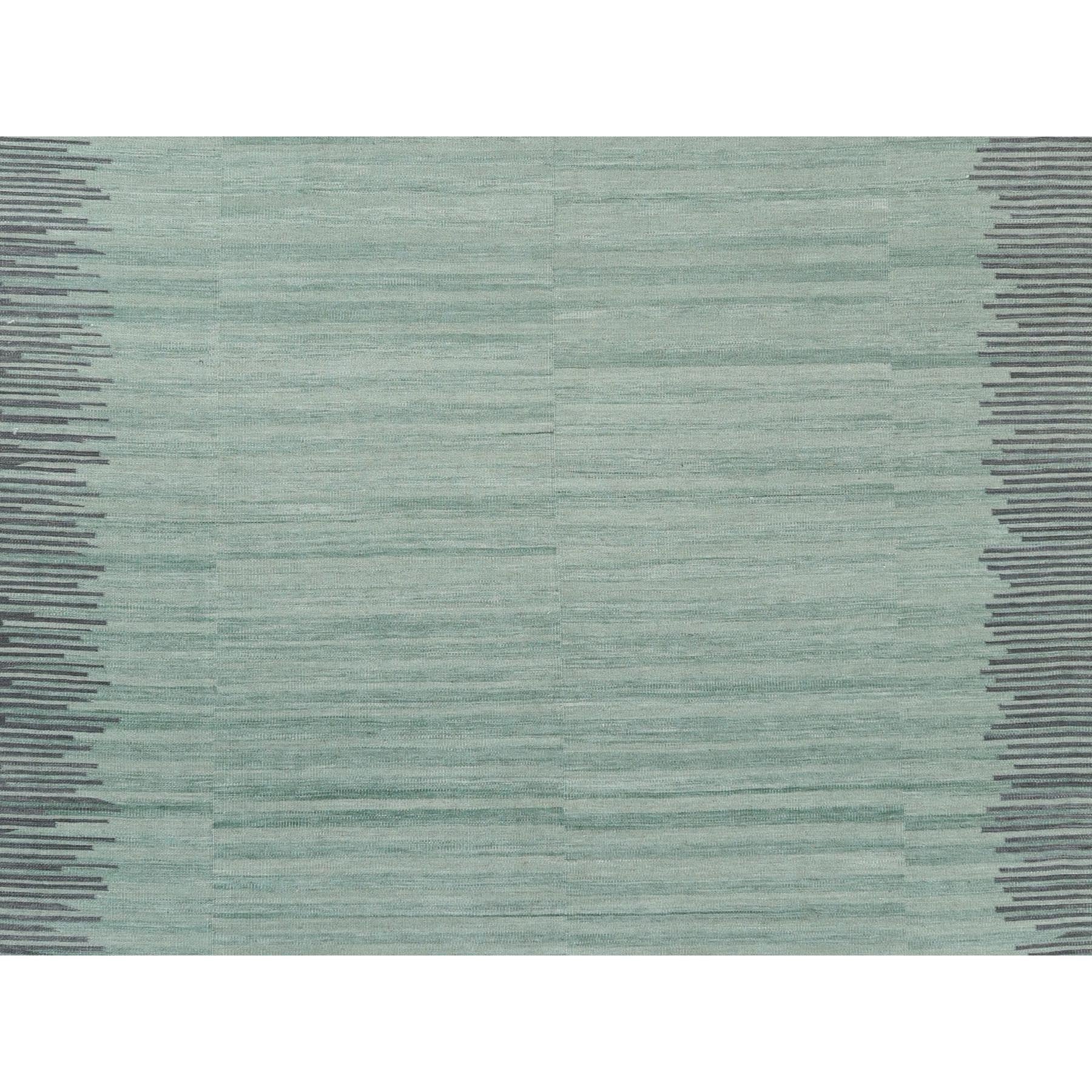 8'2"x10'1" Hand Woven Light Green Flat Weave Kilim With Ethnic Design Pure Wool Reversible Oriental Rug FWR360144