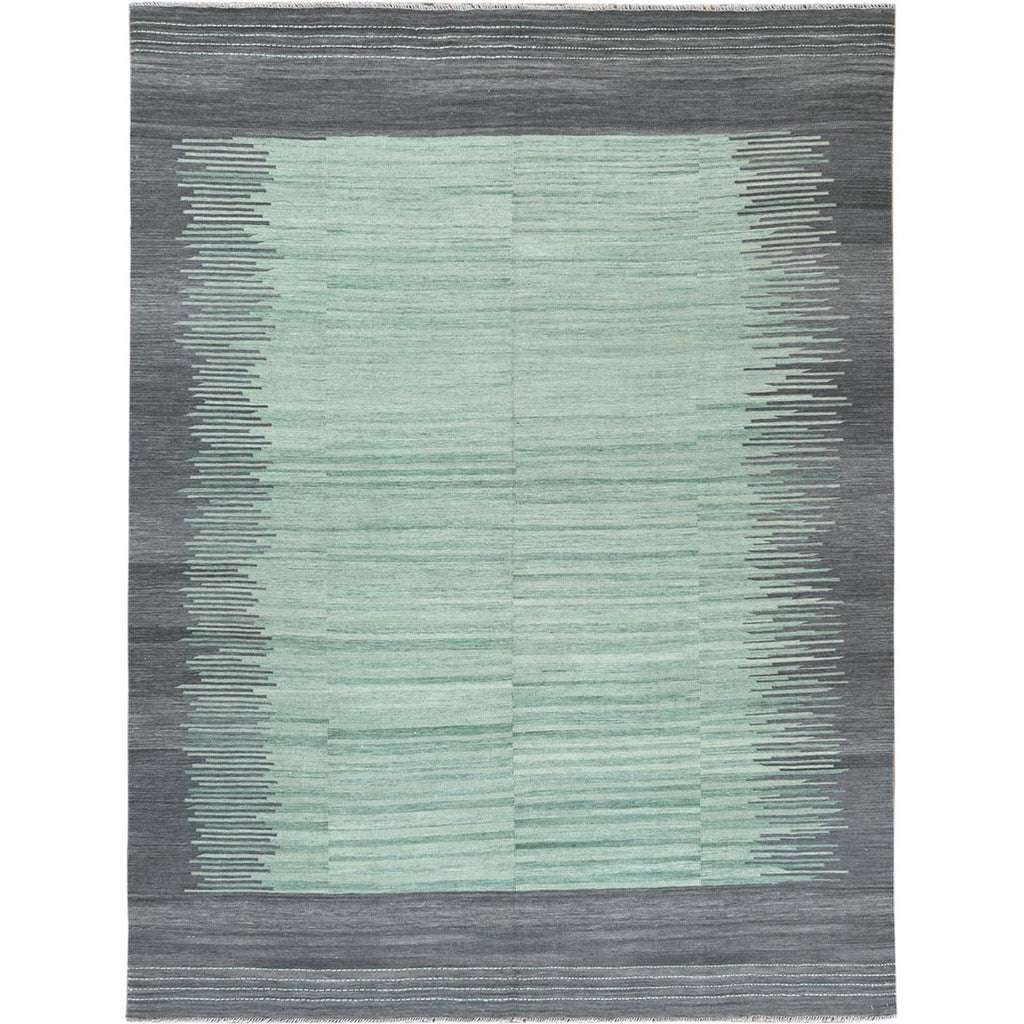 8'2"x10'1" Hand Woven Light Green Nomadic Design Flat Weave Kilim Handspun Wool Reversible Oriental Rug FWR360150