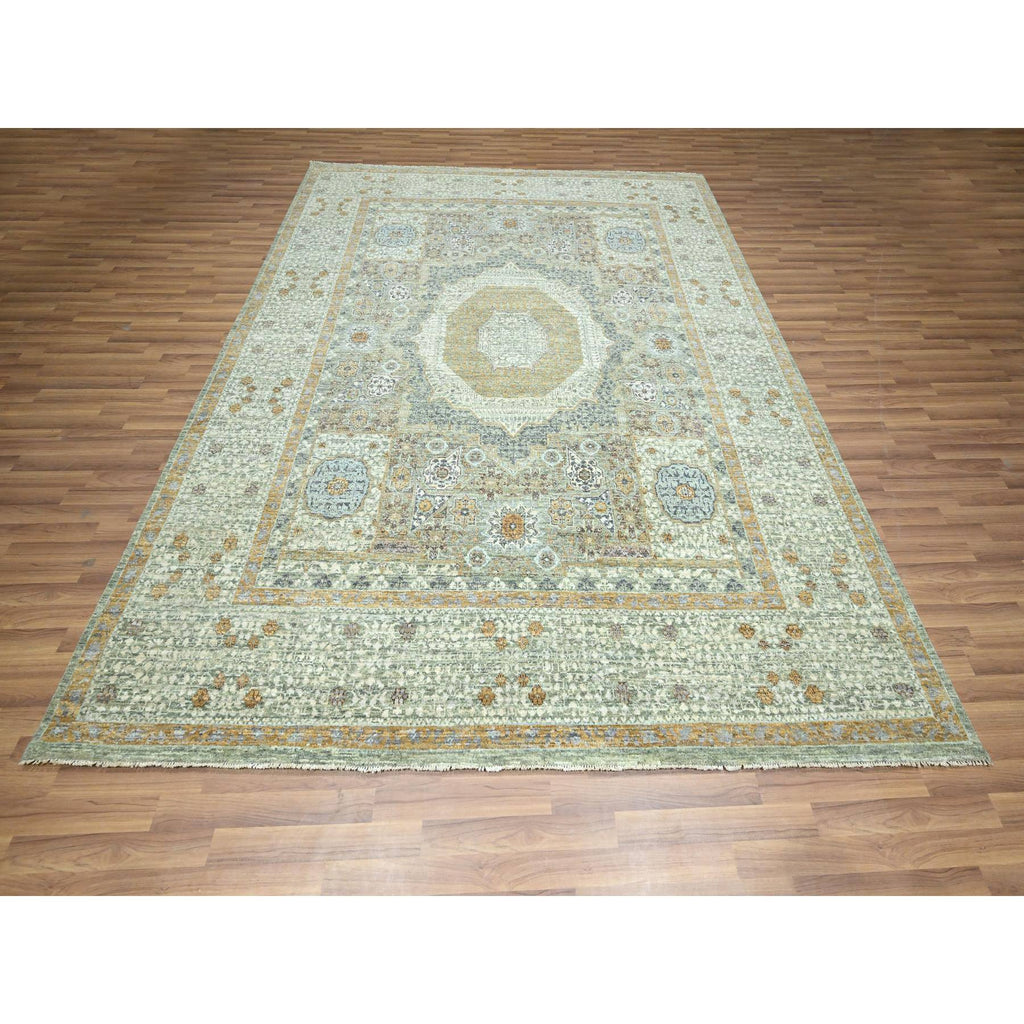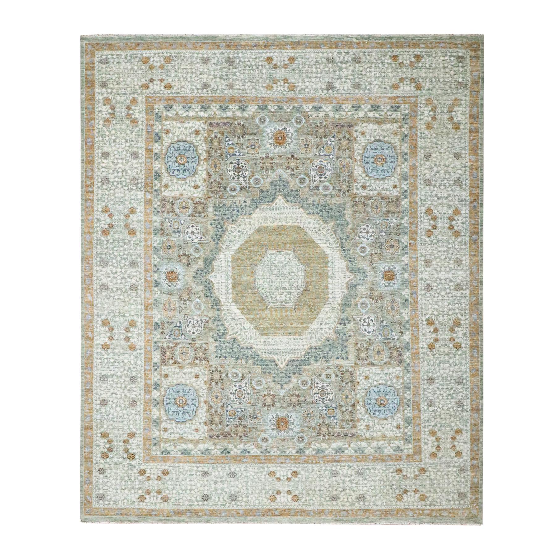 8'2"x10'1" Sage Green, Mamluk Design, Pre Historic 14th Century Influence, Natural Dyes, Hand Knotted, Pure Wool, Oriental Rug FWR458580