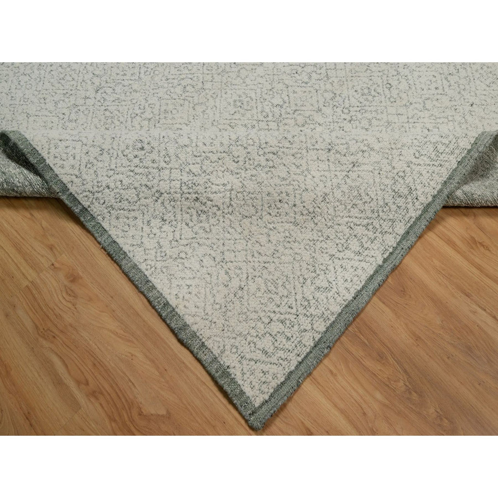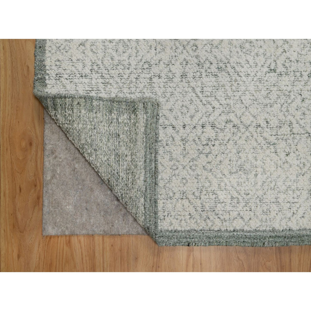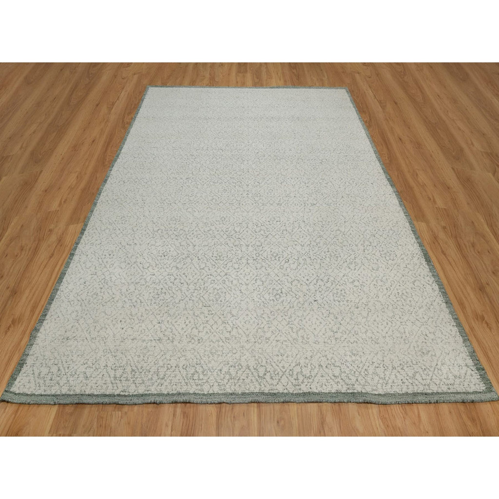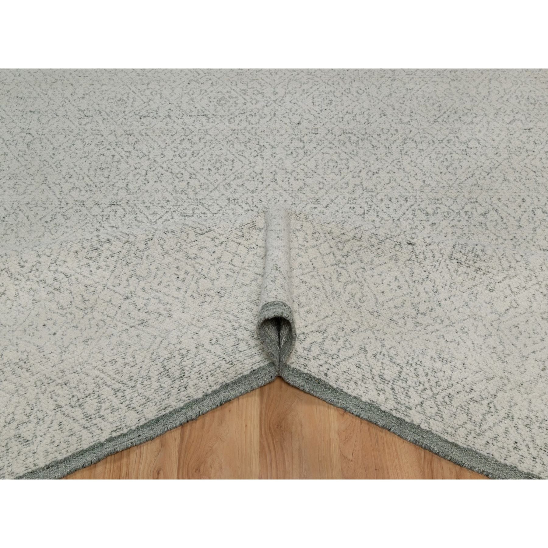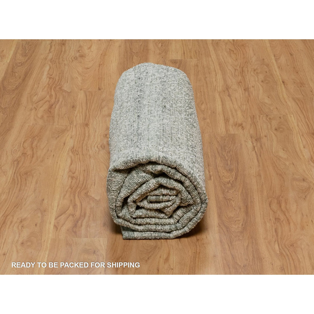 8'2"x10'2" Alabaster White, Hand Woven, Flat Weave With Textured Pile, Undyed Natural Wool, Oriental Rug FWR550296
