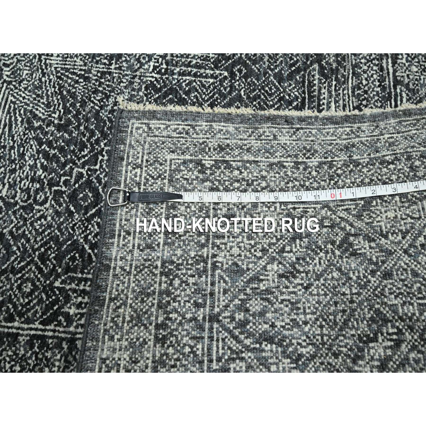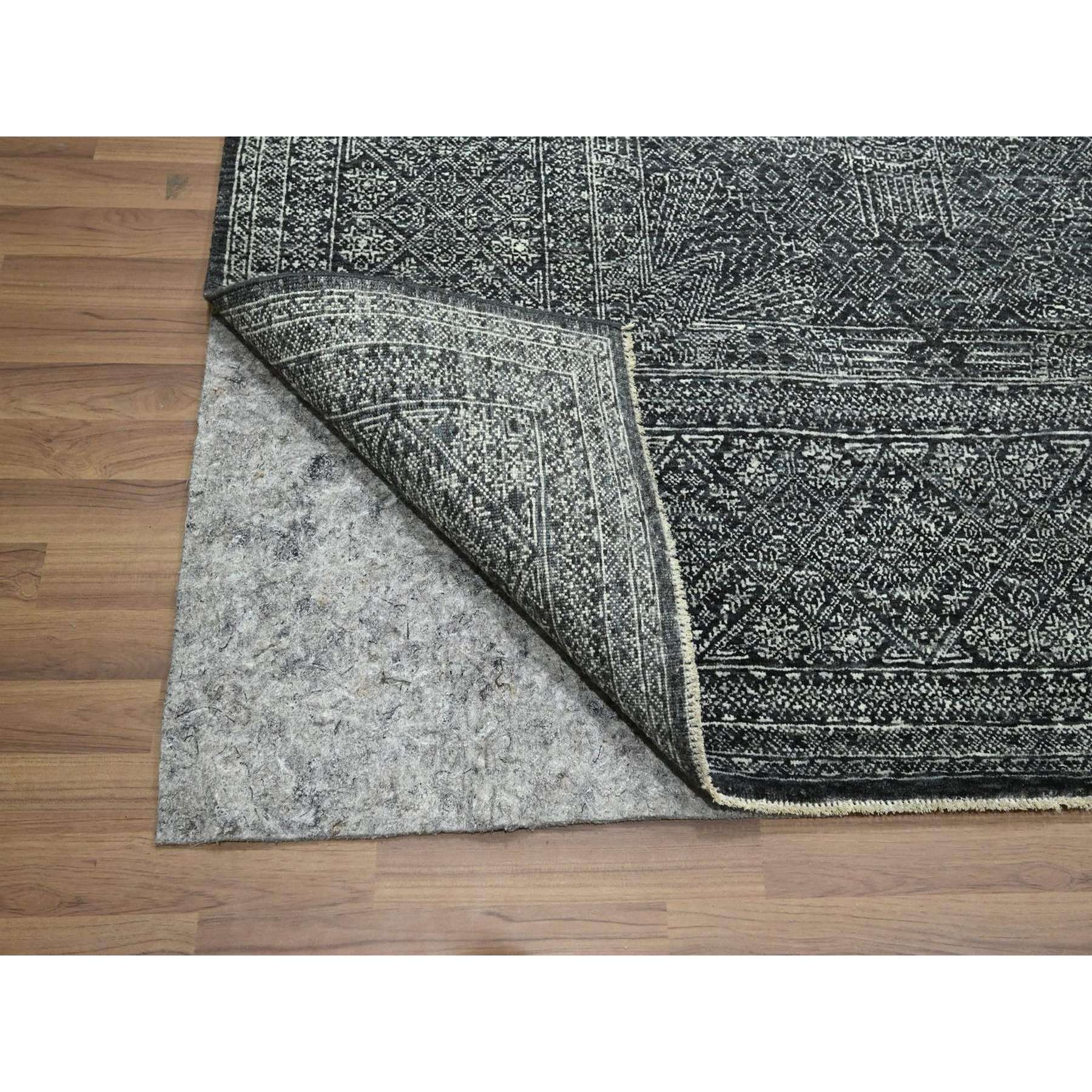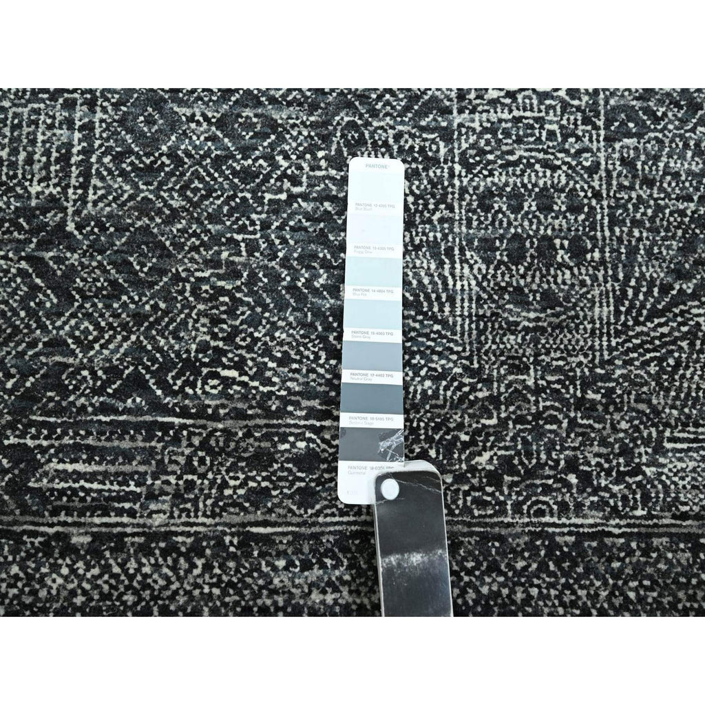 8'2"x10'2" Charcoal Black, Tone On Tone, Wool And Silk With Intricate Star Design, Hand Knotted, Oriental Rug FWR459444