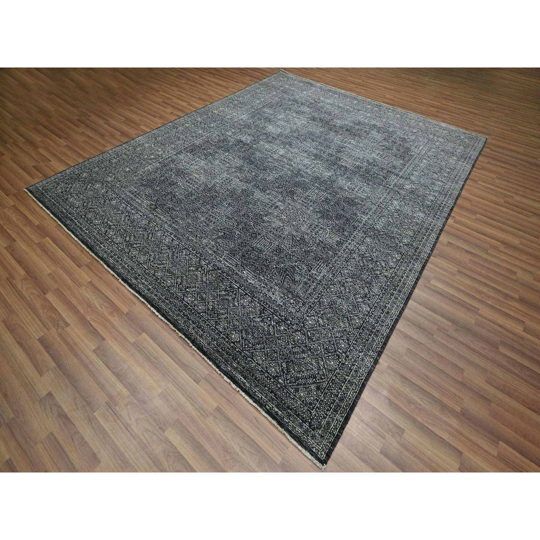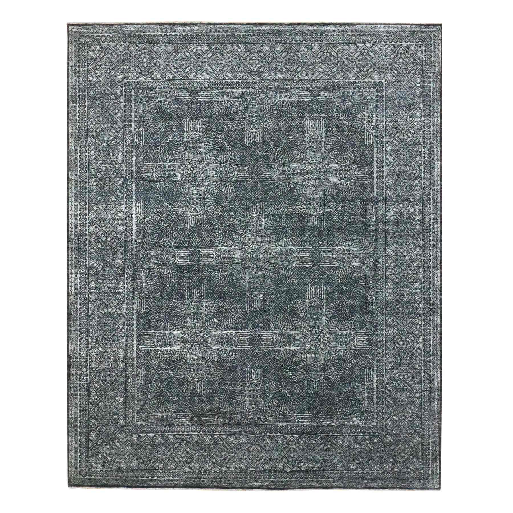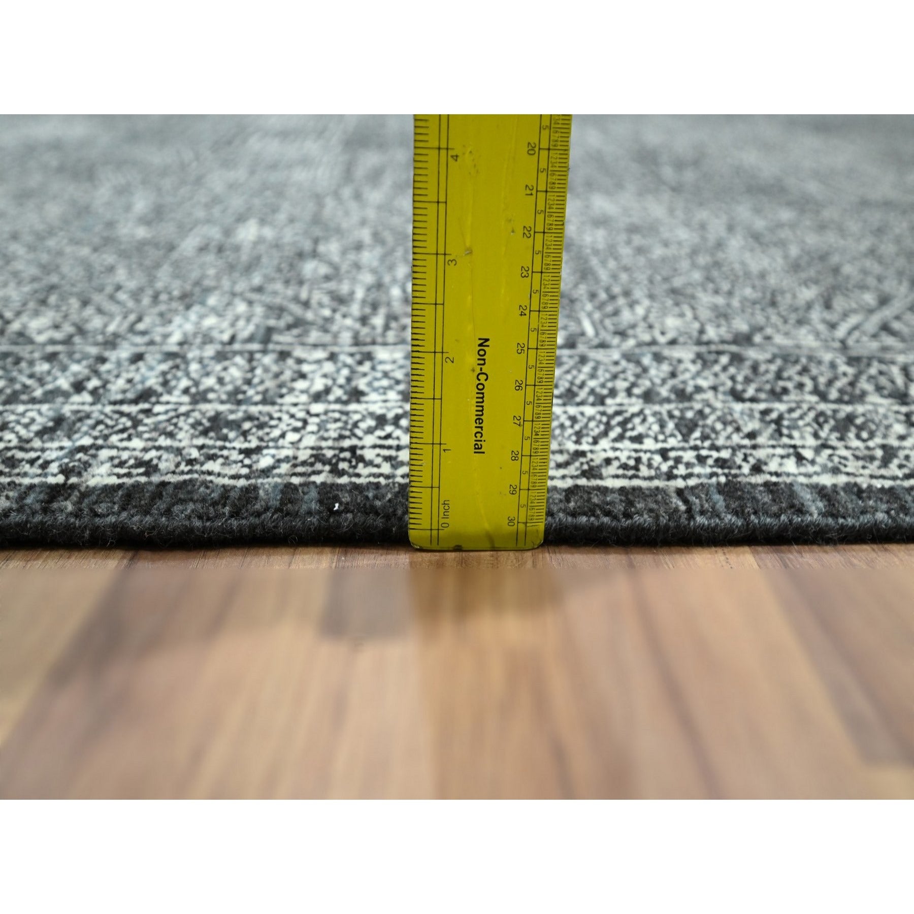 8'2"x10'2" Charcoal Black, Tone On Tone, Wool And Silk With Intricate Star Design, Hand Knotted, Oriental Rug FWR459444
