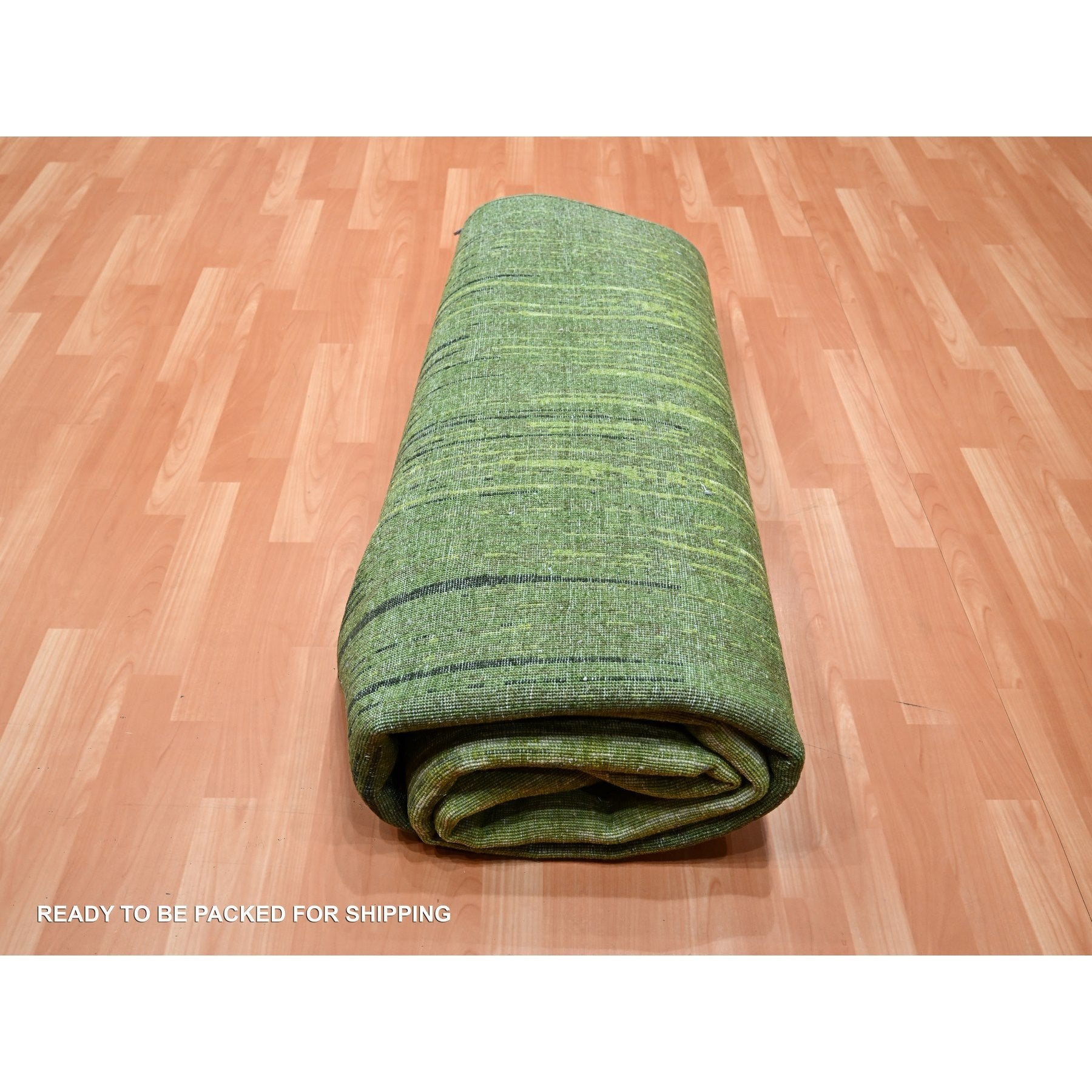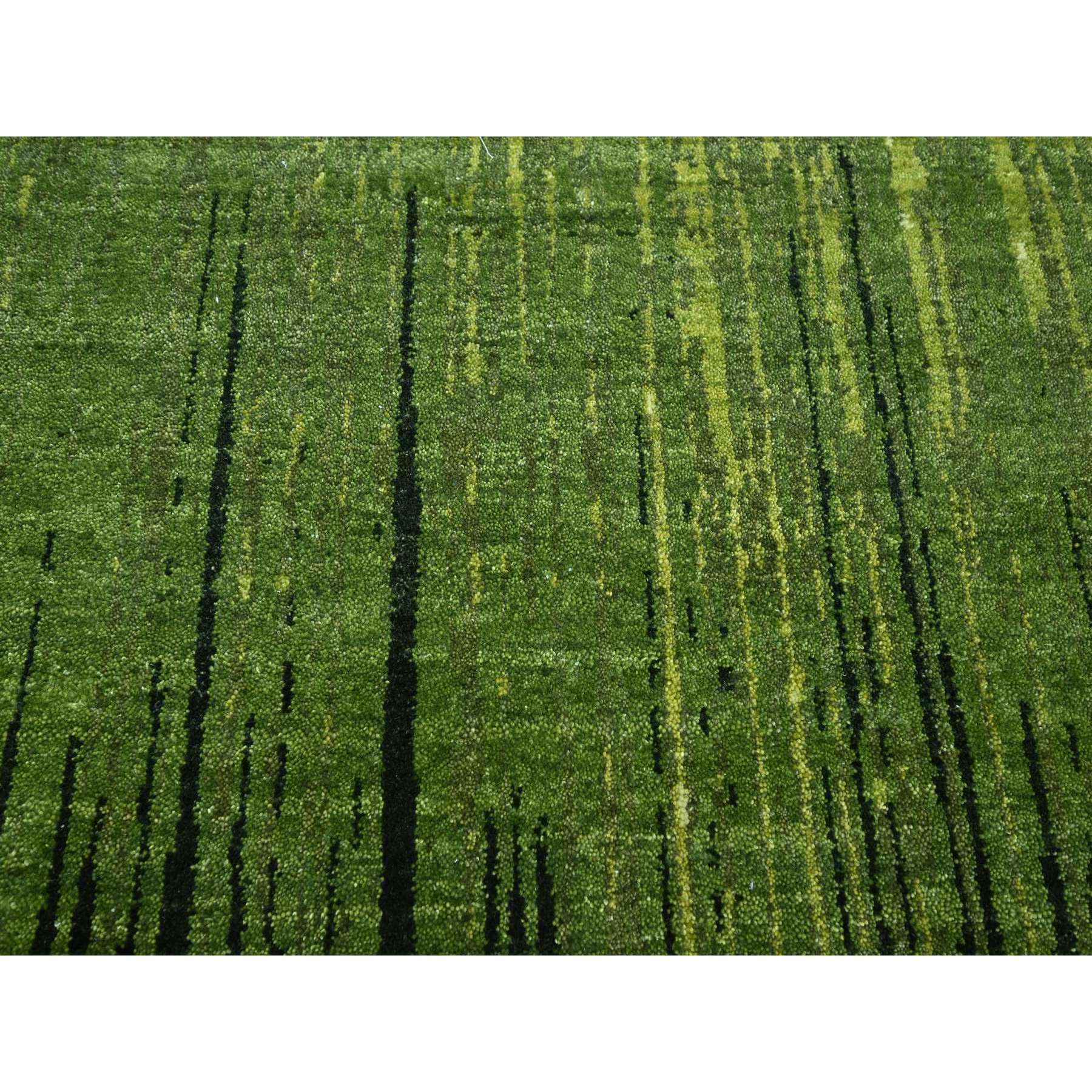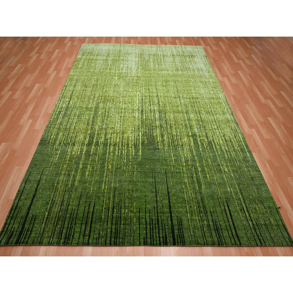 8'2"x10'3" Pickle Green, Vertical Ombre Design, Hand Knotted, Soft And Vibrant Wool, Oriental Rug FWR453090