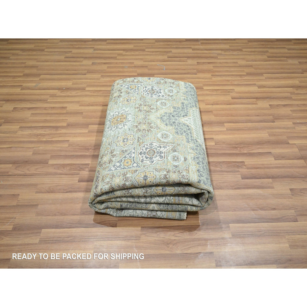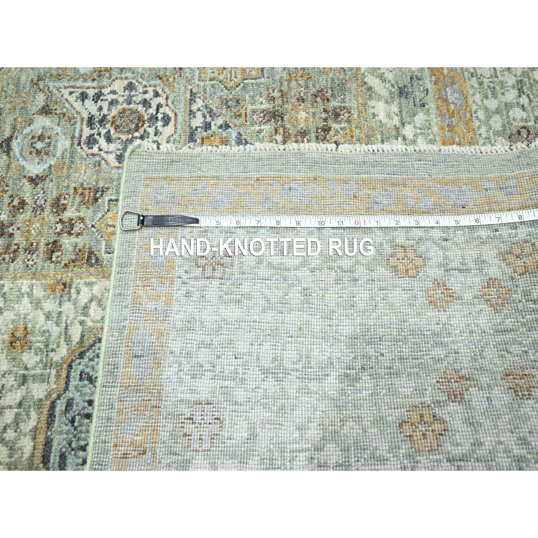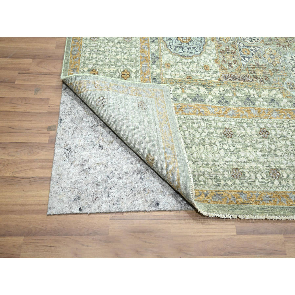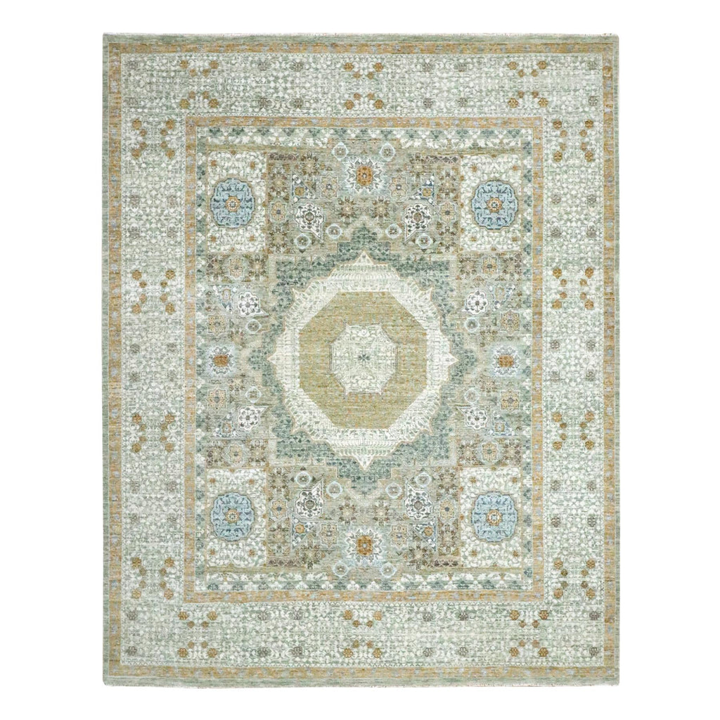 8'2"x10'4" Pistachio Green, Mamluk Design, Pre Historic 14th Century Influence, Natural Dyes, 100% Wool, Hand Knotted, Oriental Rug FWR458574