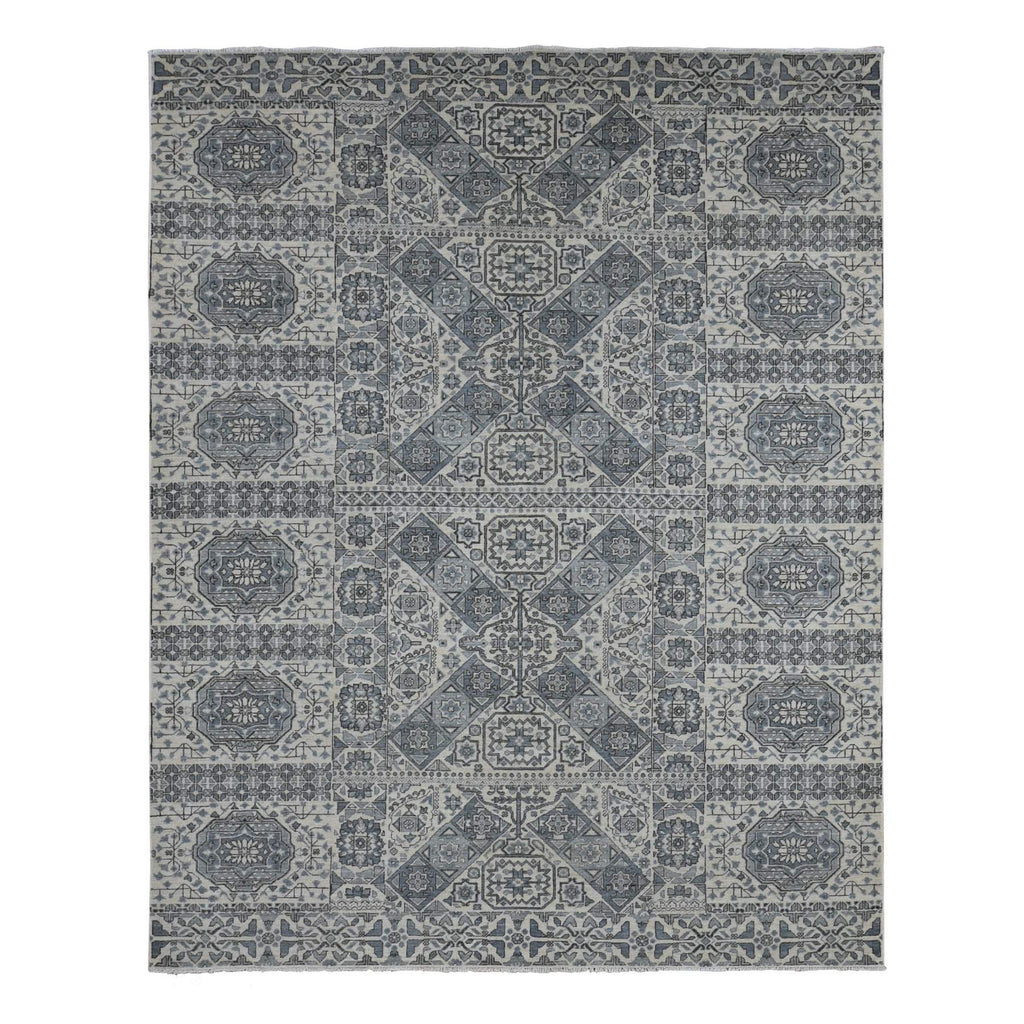 8'2"x10'5" Nevada Gray, Ottoman Mamluk Crisscross Design, Hand Knotted, Undyed Natural Wool, Oriental Rug FWR522354