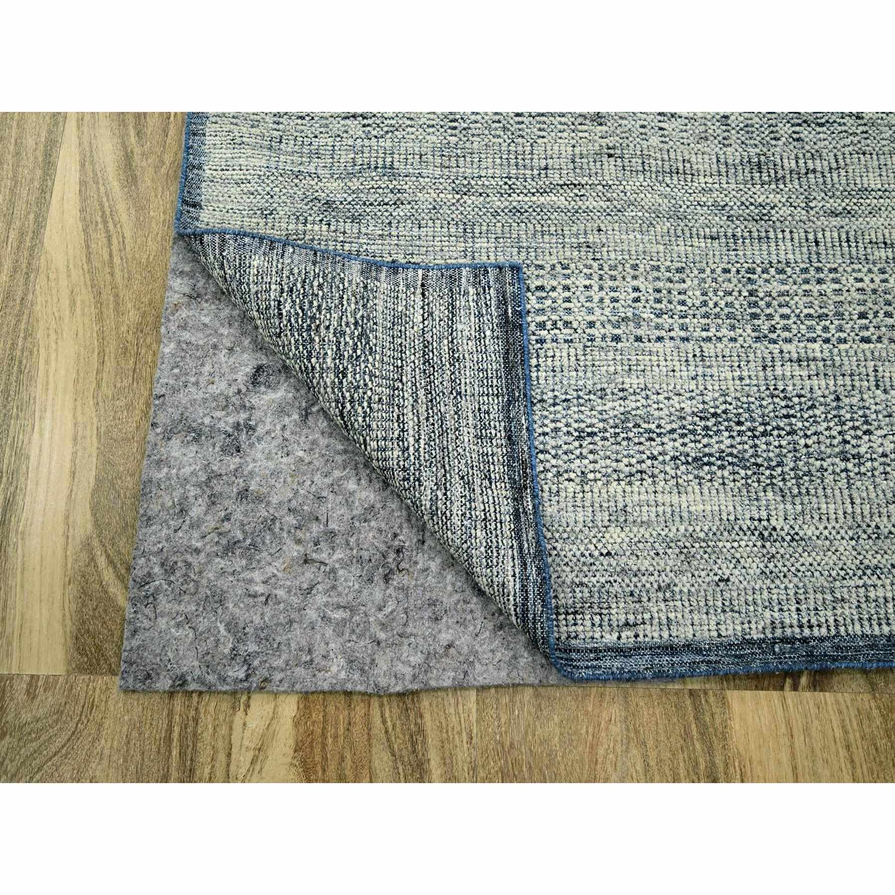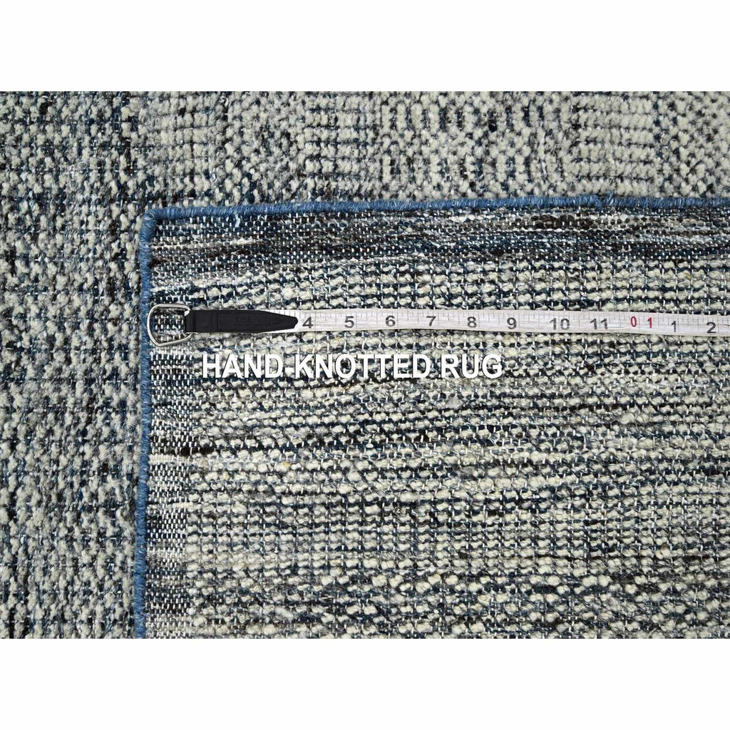 8'2"x10' Beacon Blue With Ivory, Oxidized And Distressed Grass Design With Exposed Warps, Pure Wool, Hand Knotted, Oriental Rug FWR460260