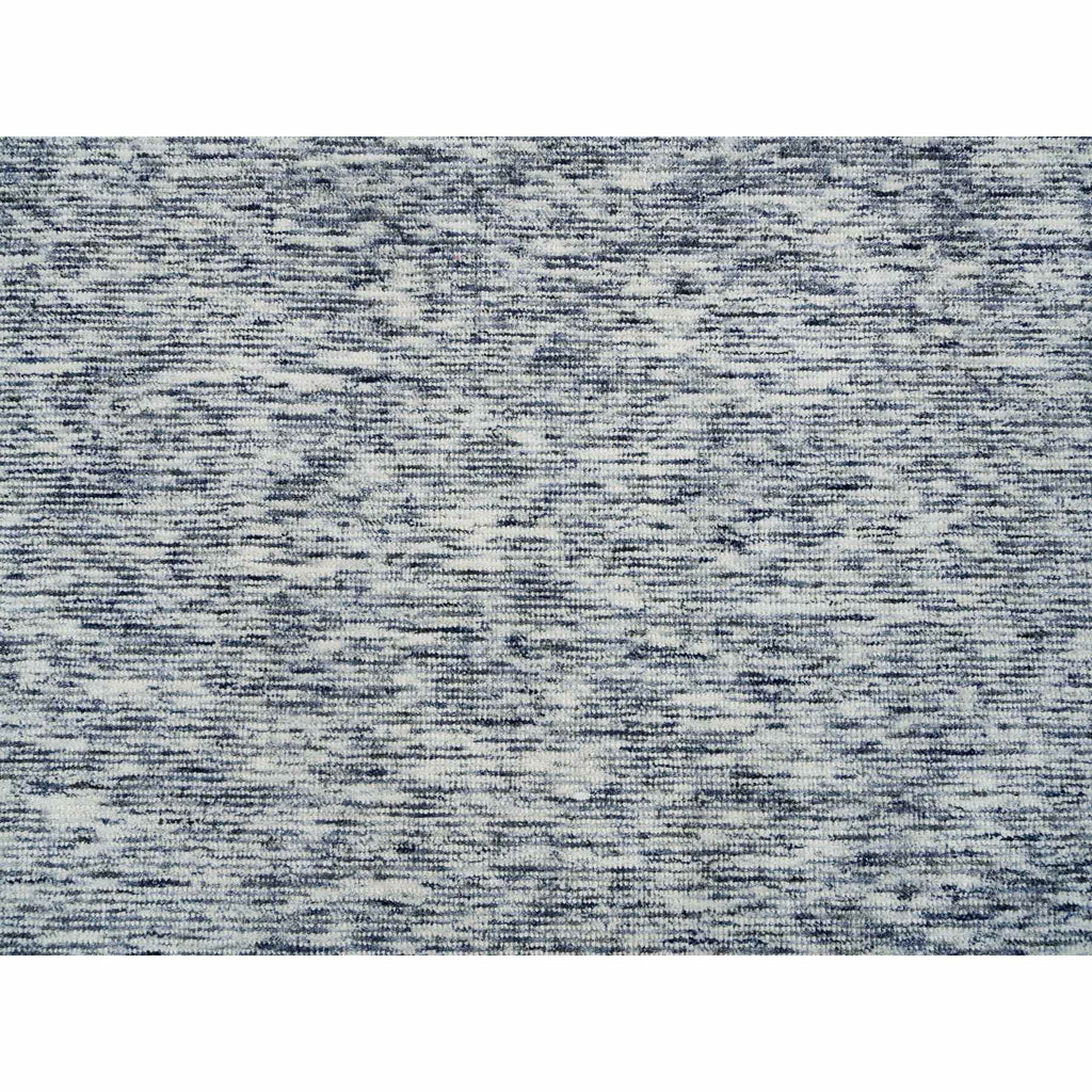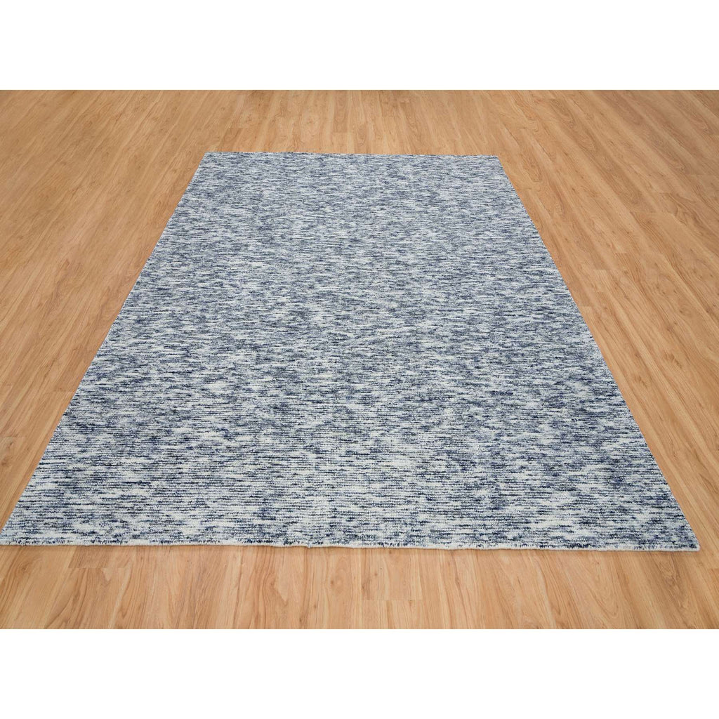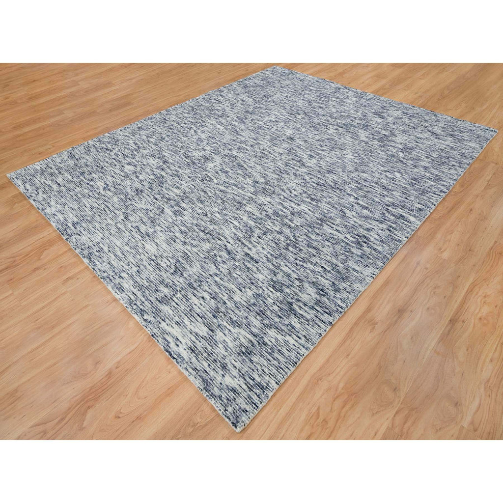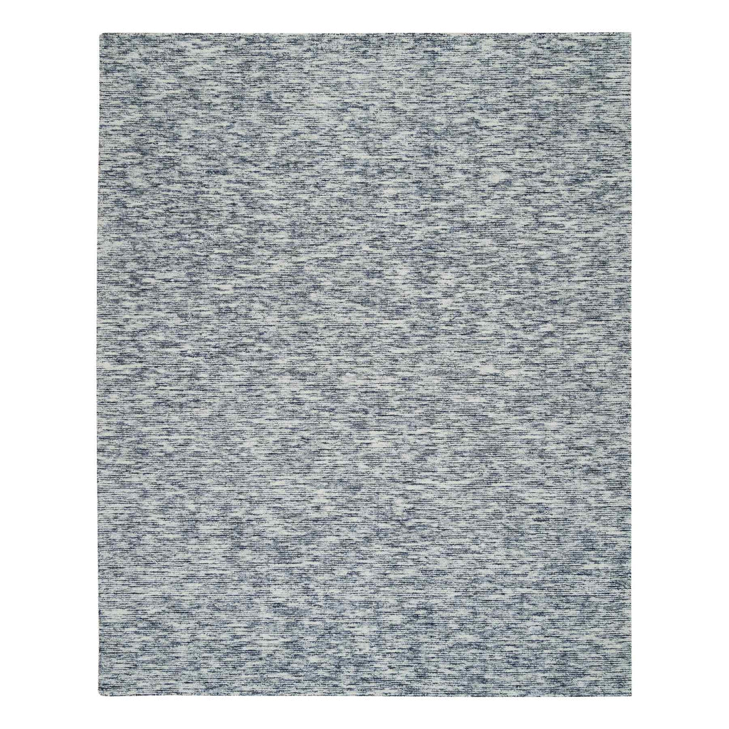 8'2"x10' Blue And Ivory, Pure Wool Hand Loomed, Modern Striae Design Soft To The Touch, Oriental Rug FWR391458