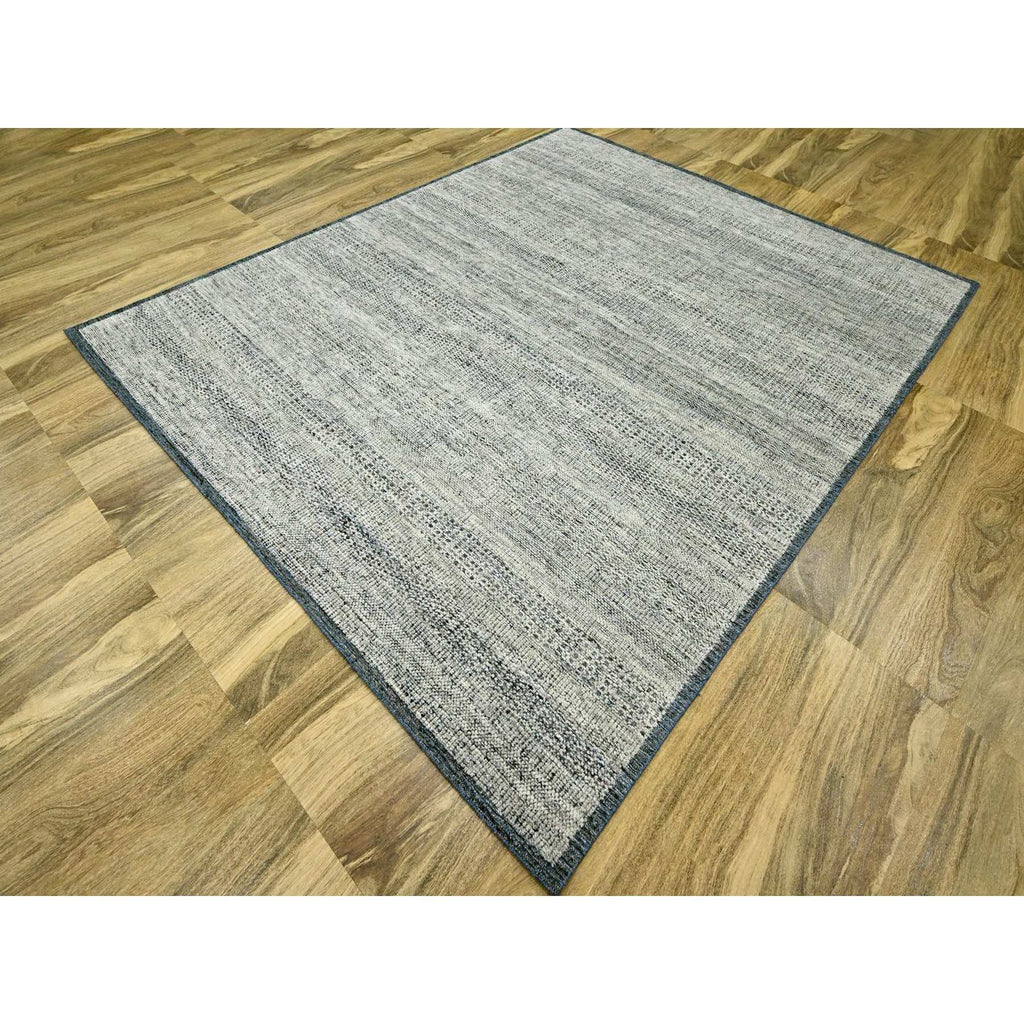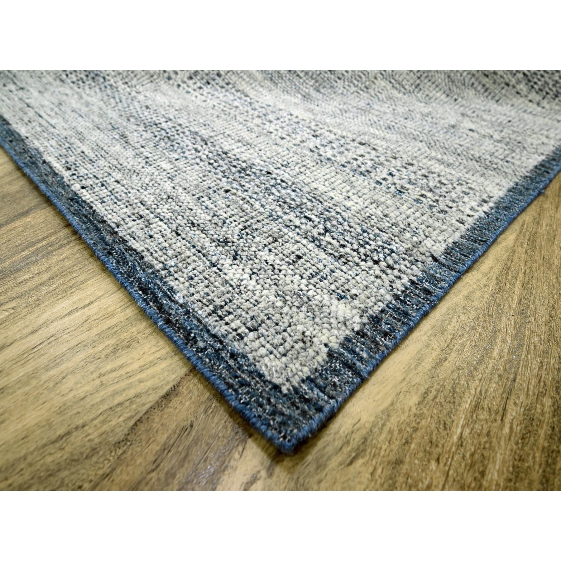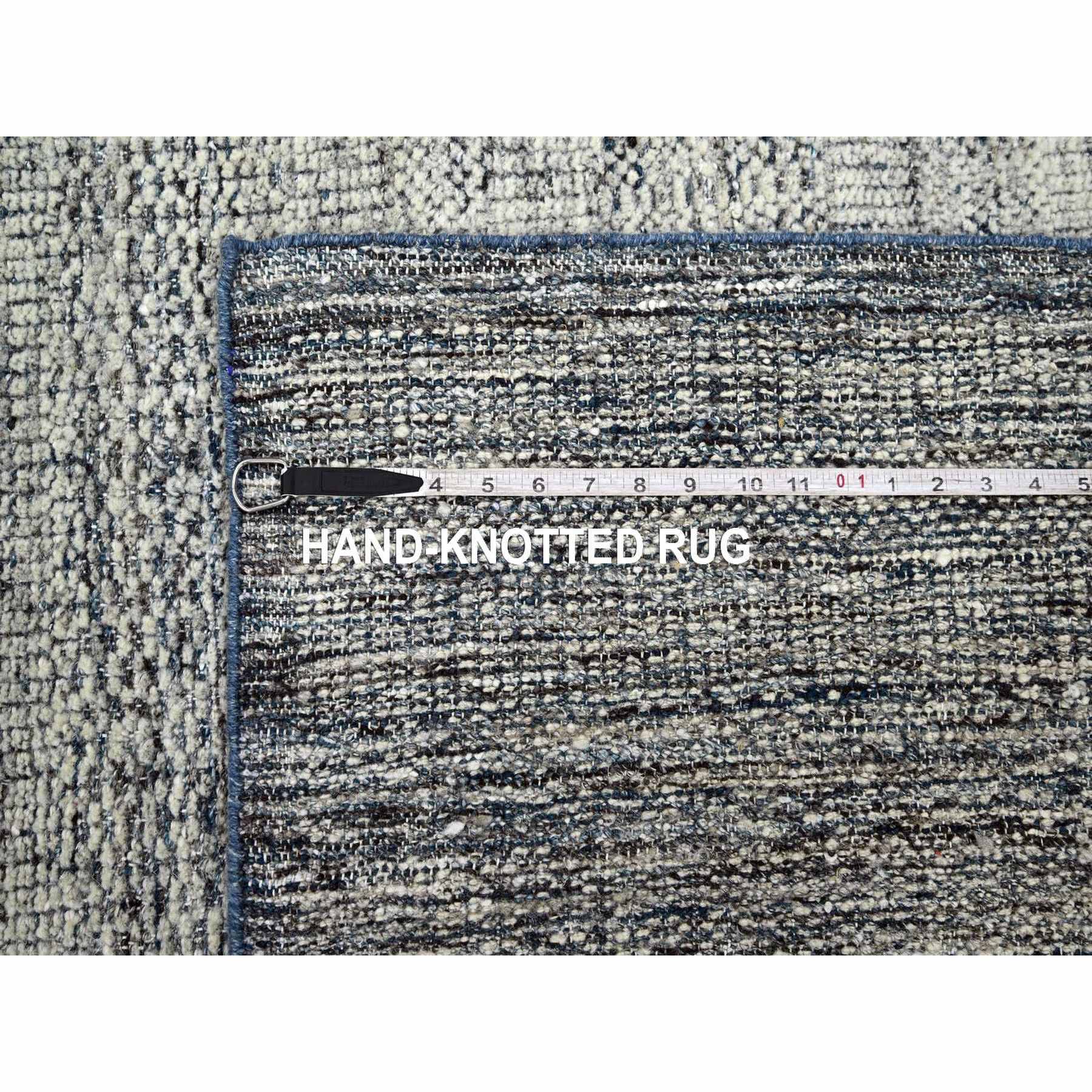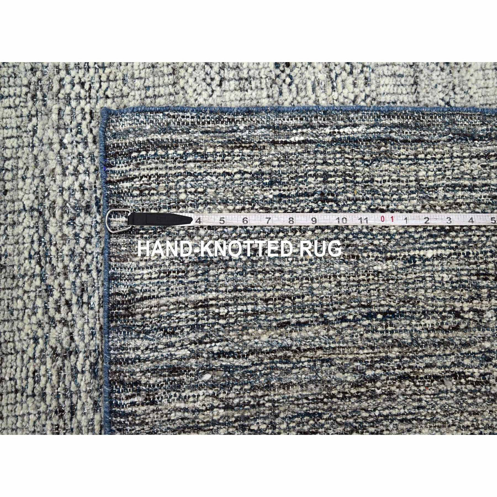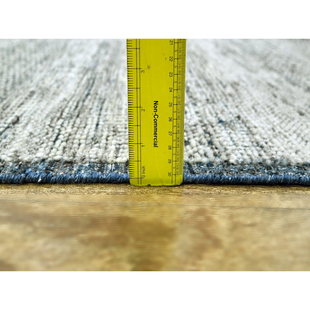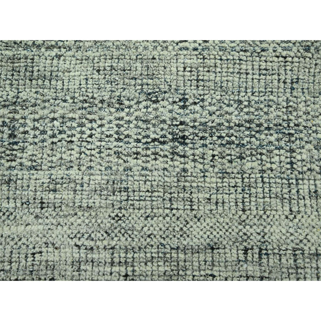8'2"x10' Midnight Blue And Ivory, Hand Knotted, 100% Wool, Oxidized And Distressed Grass Design With Exposed Warps, Oriental Rug FWR460296