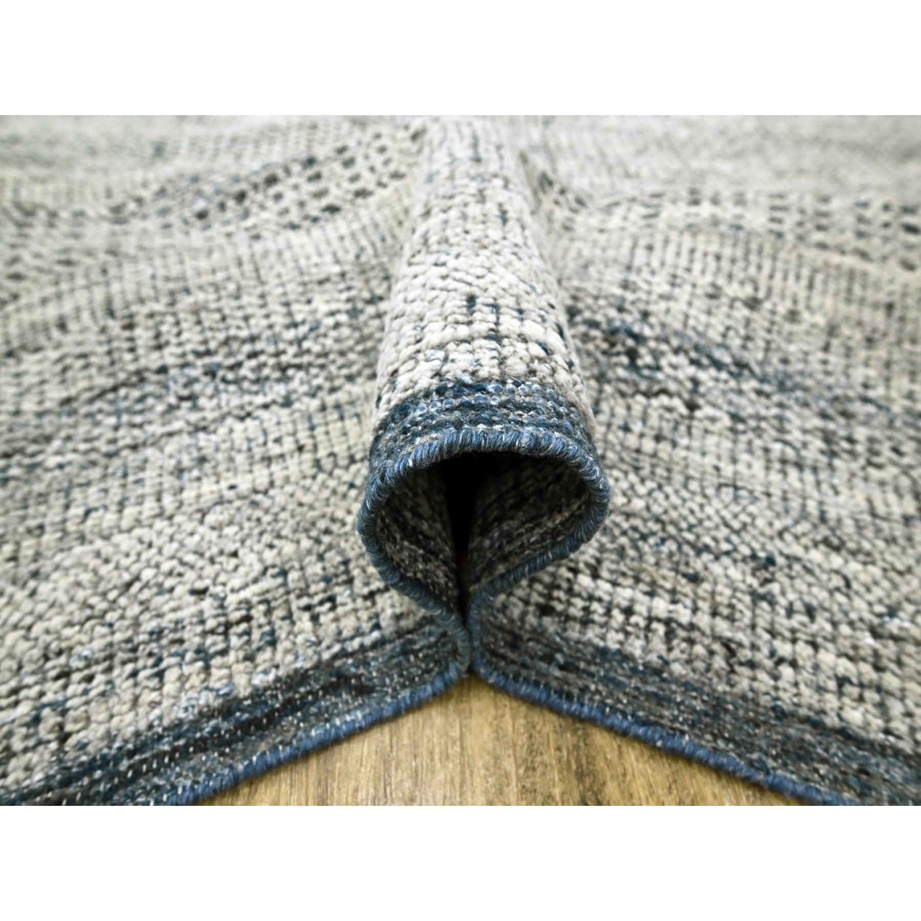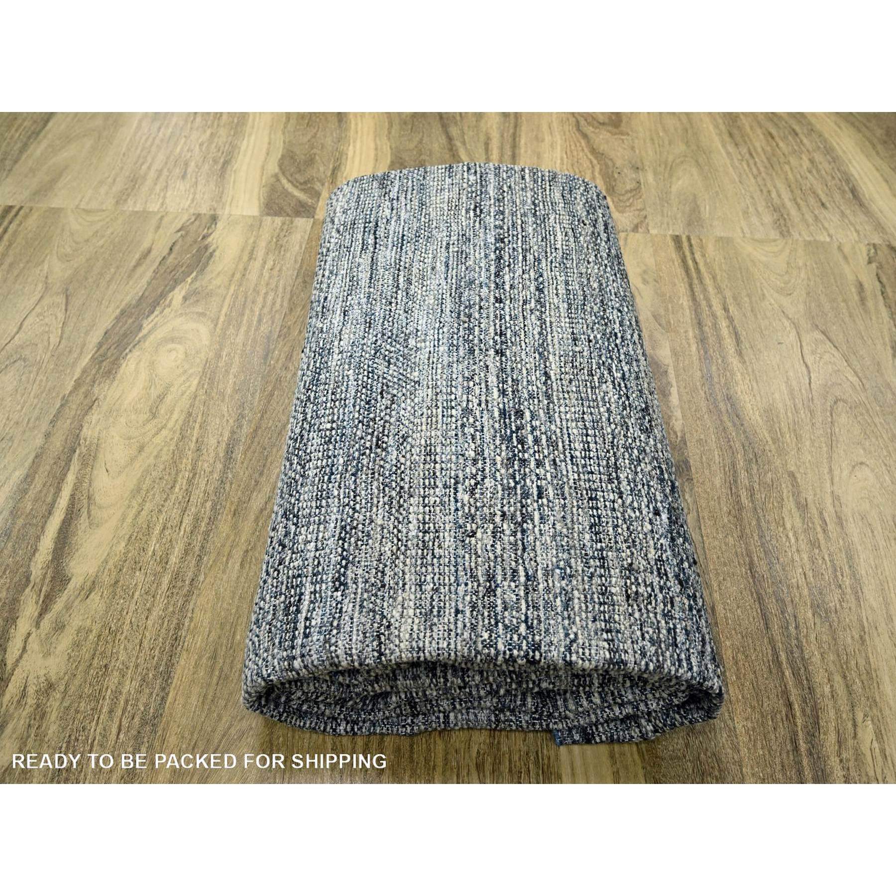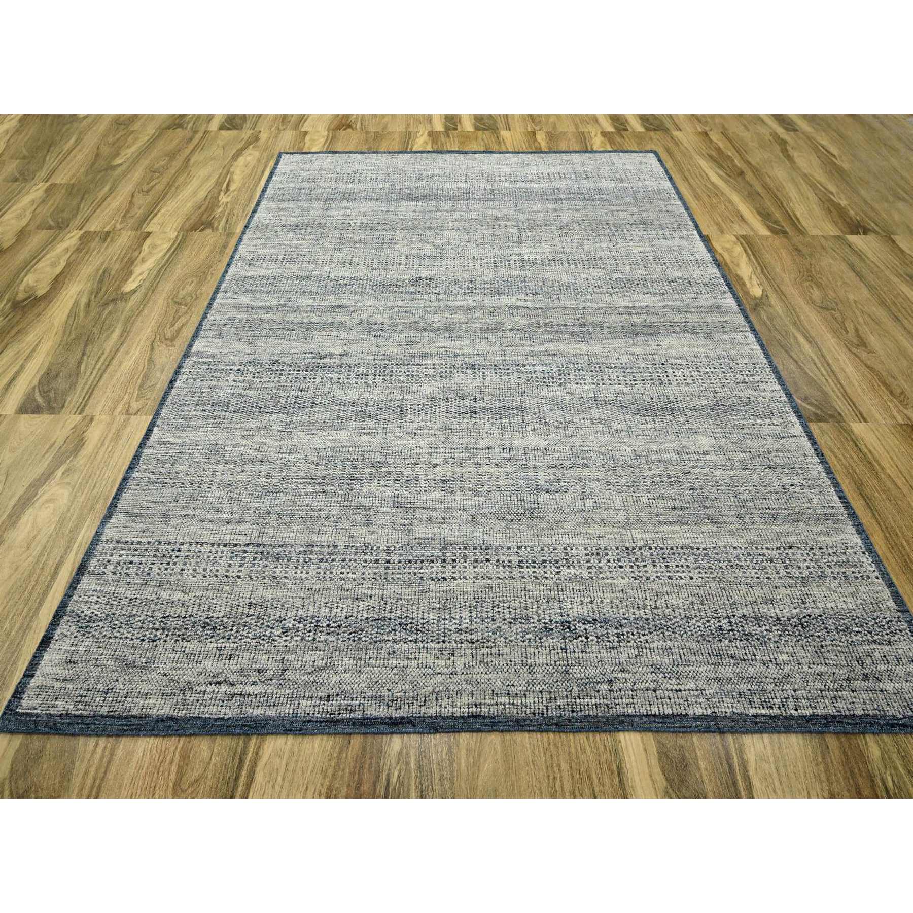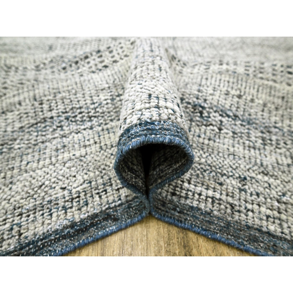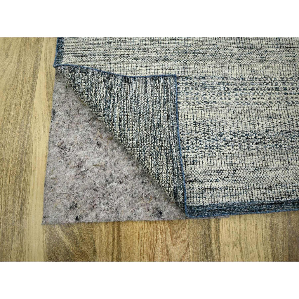 8'2"x10' Midnight Blue And Ivory, Hand Knotted, 100% Wool, Oxidized And Distressed Grass Design With Exposed Warps, Oriental Rug FWR460296