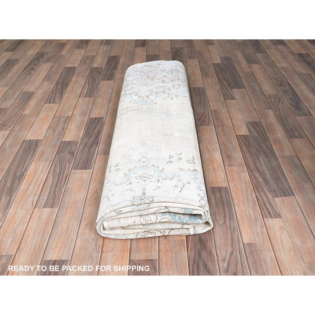 8'2"x11'8" Alice Blue, Vintage Persian Kerman, Evenly Worn, 100% Wool, Hand Knotted, Cleaned With Sides And Edges Professionally Secured, Oriental Rug FWR513138