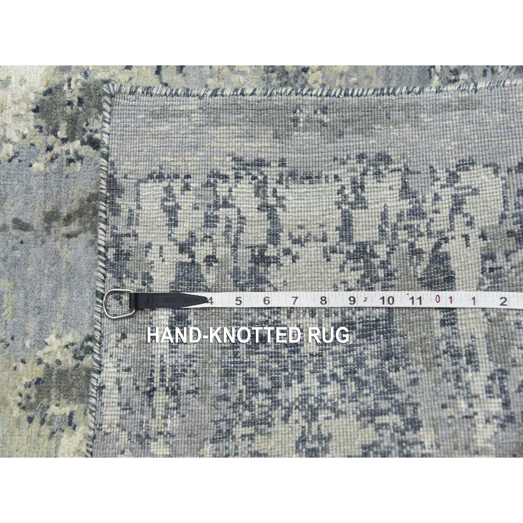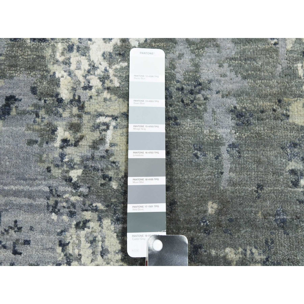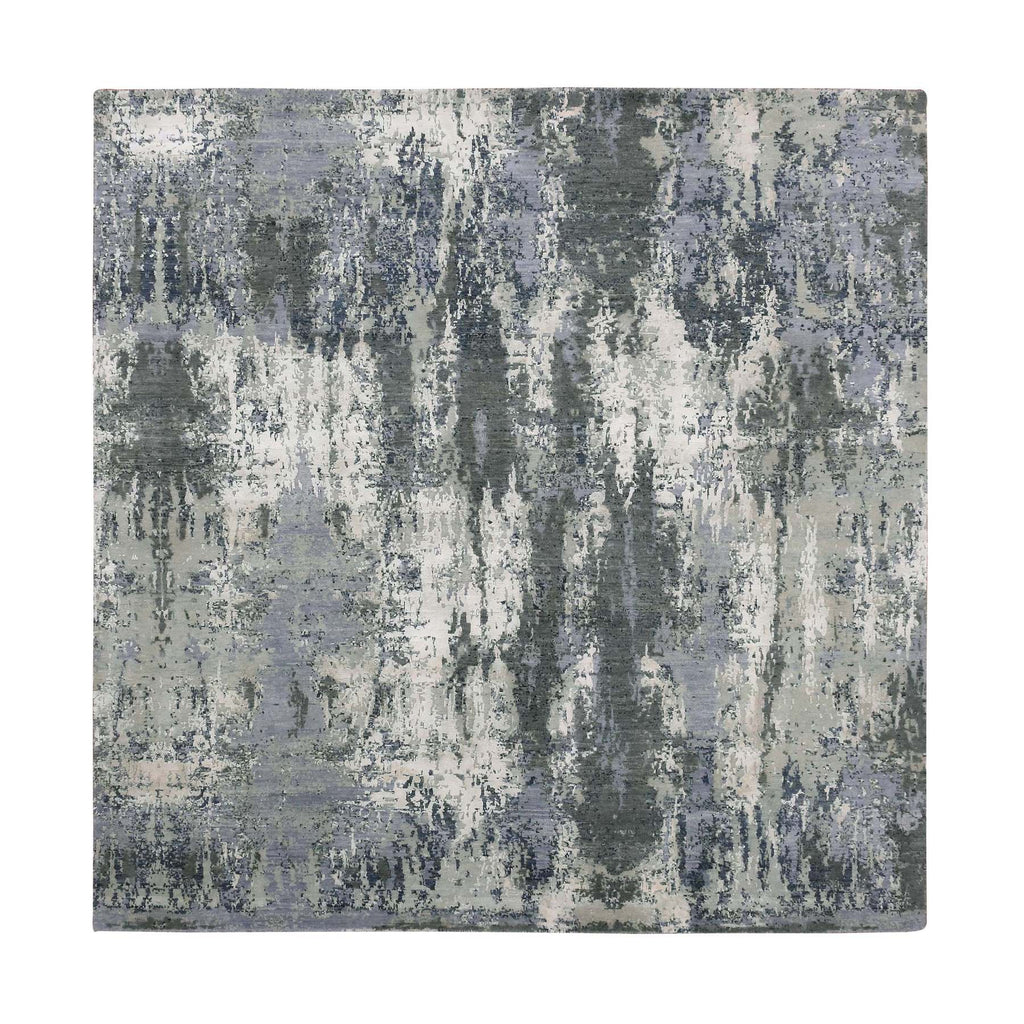 8'2"x8'2" Charcoal Gray Abstract Design Wool And Silk Denser Weave Persian Knot Hand Knotted Oriental Square Rug FWR450558