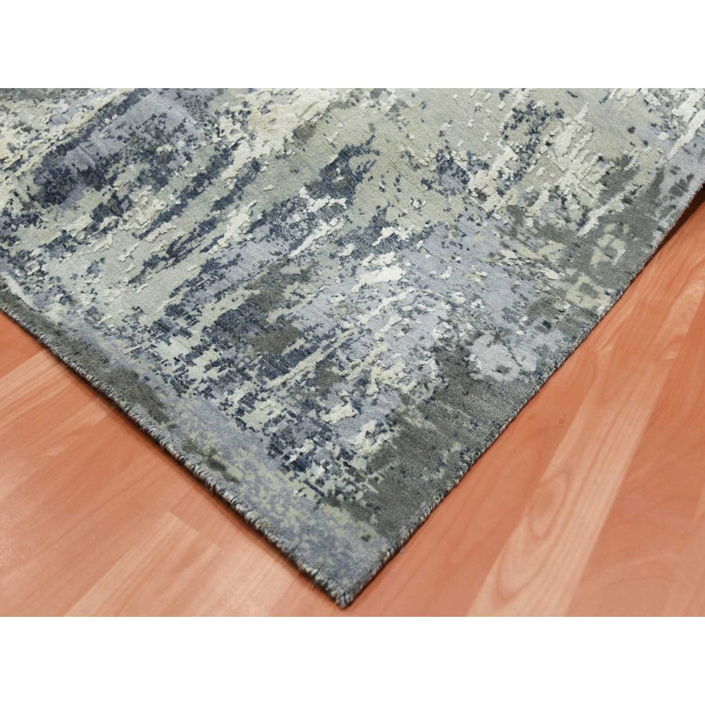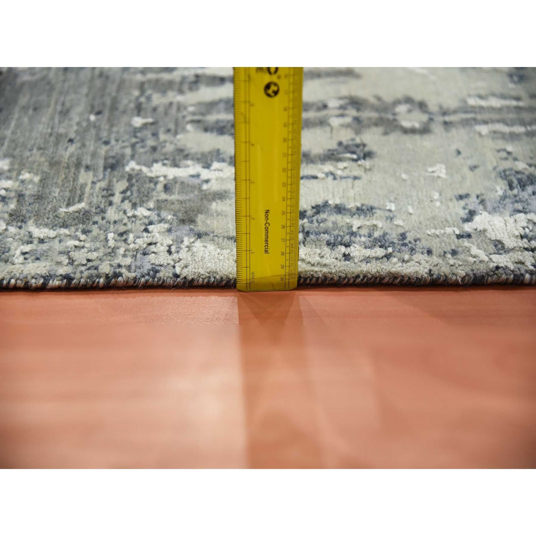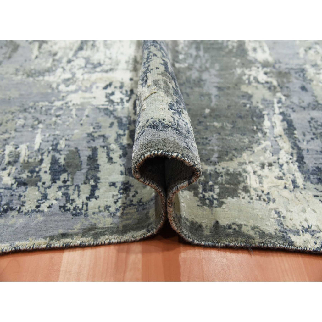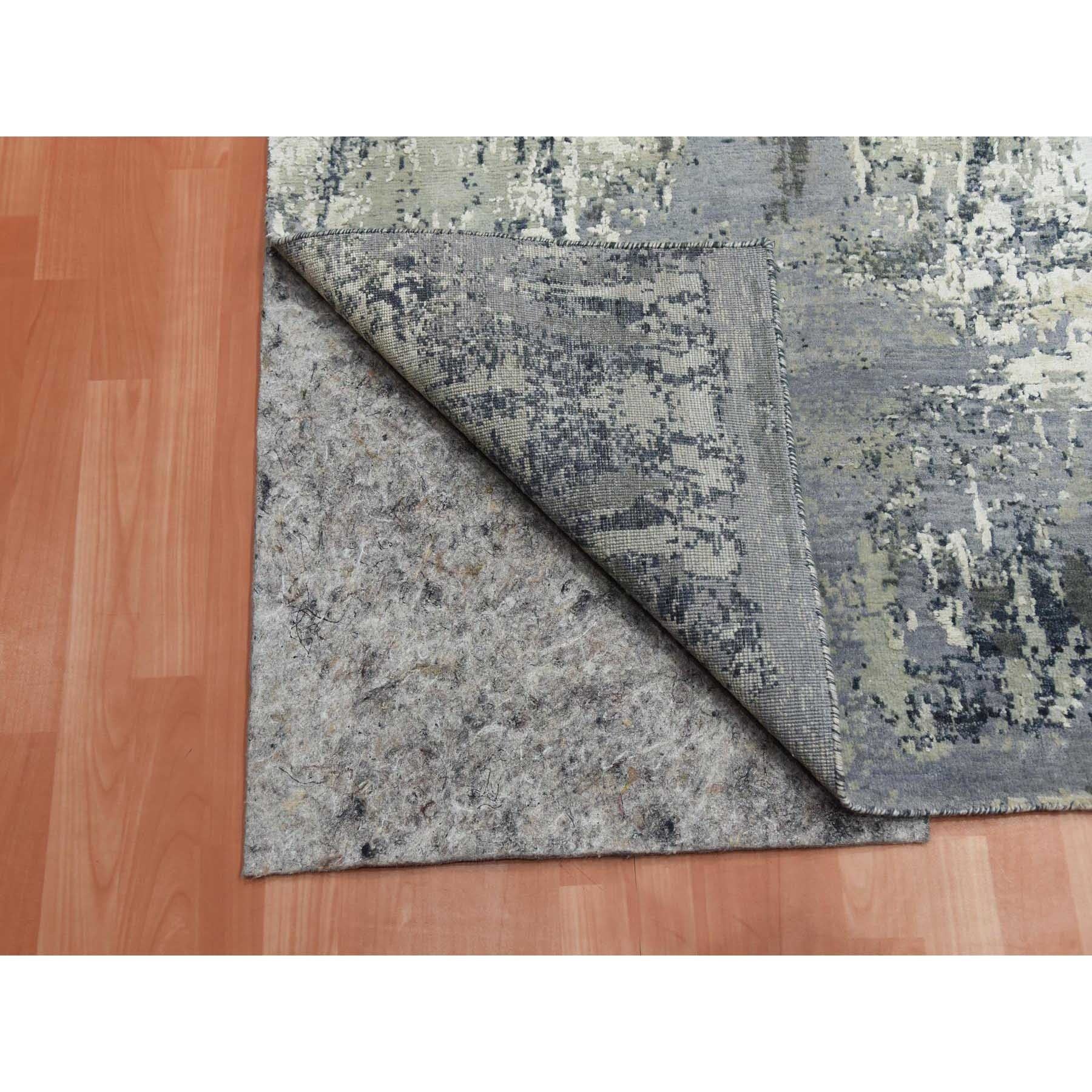 8'2"x8'2" Charcoal Gray Abstract Design Wool And Silk Denser Weave Persian Knot Hand Knotted Oriental Square Rug FWR450558
